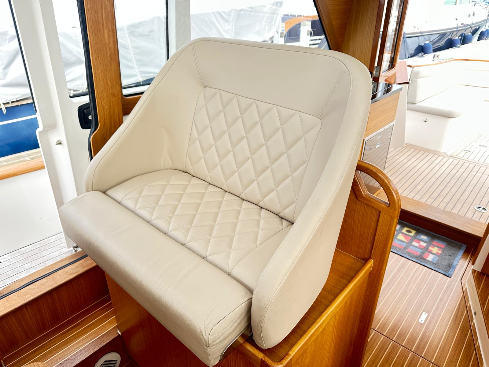 A side door by the helm provides simple access to the foredeck, while the intuitive touchscreen display makes controlling all onboard electronics a breeze.