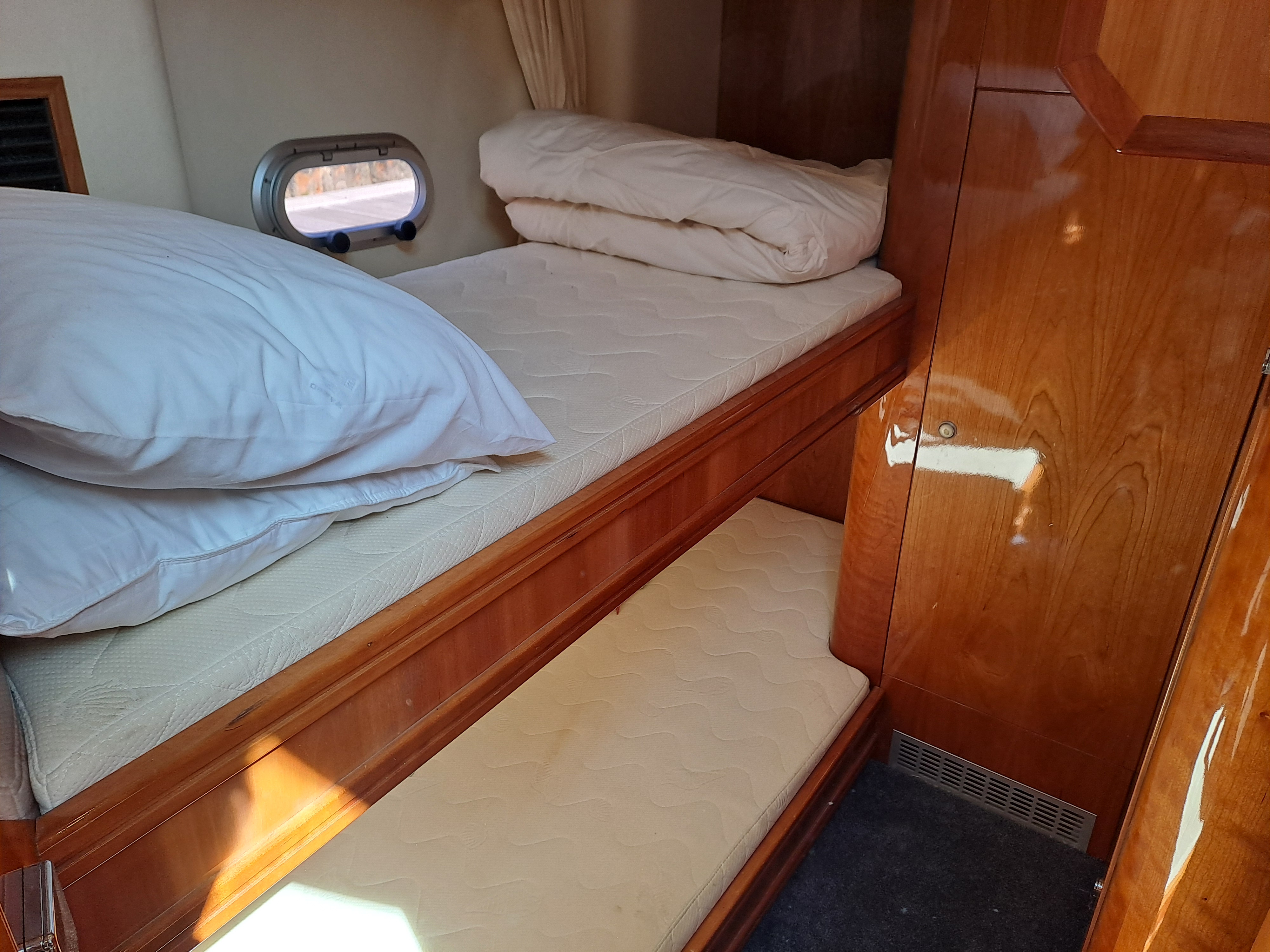 Aft guest cabin to starboard with bunk berths, hanging locker, down-lights and reading lights