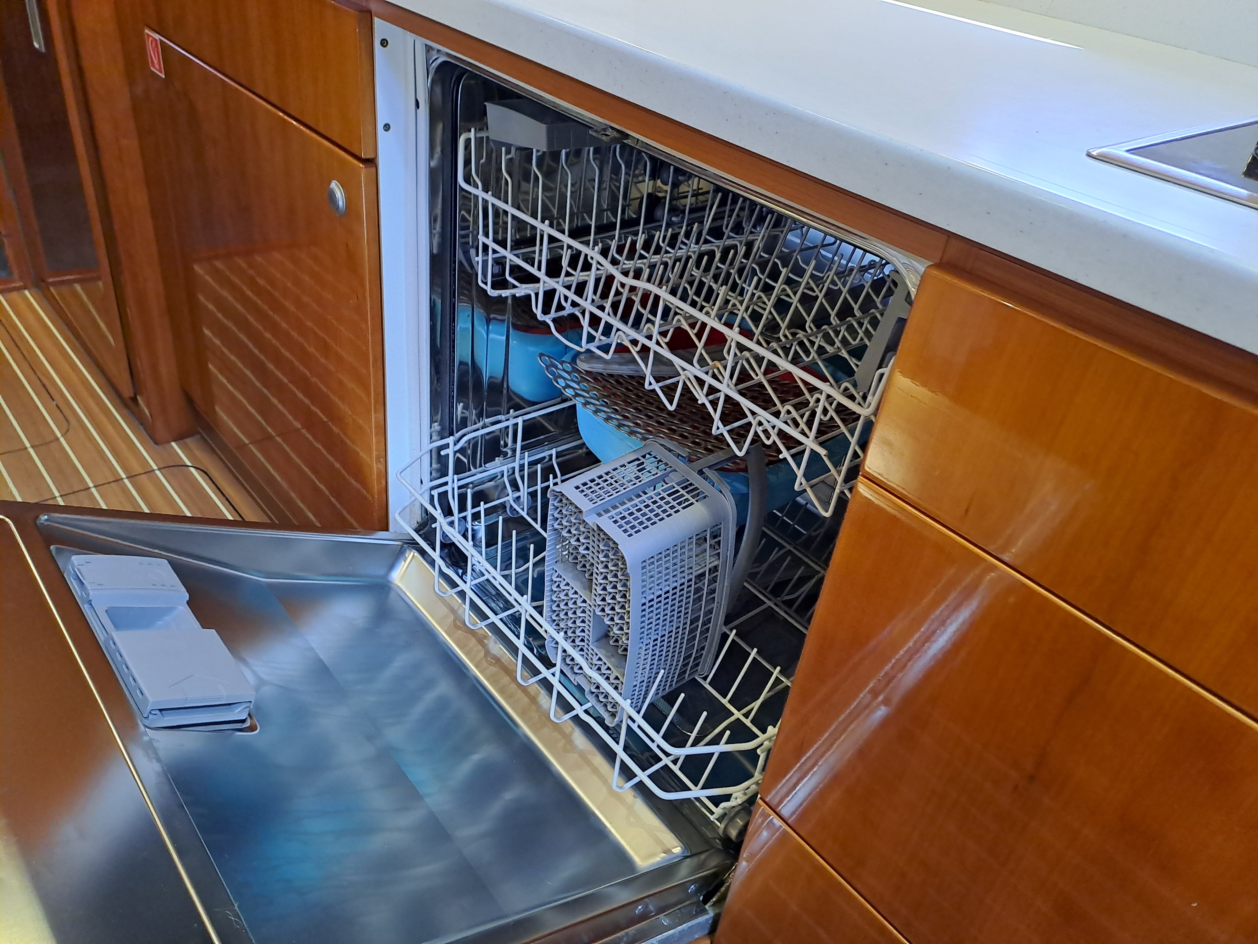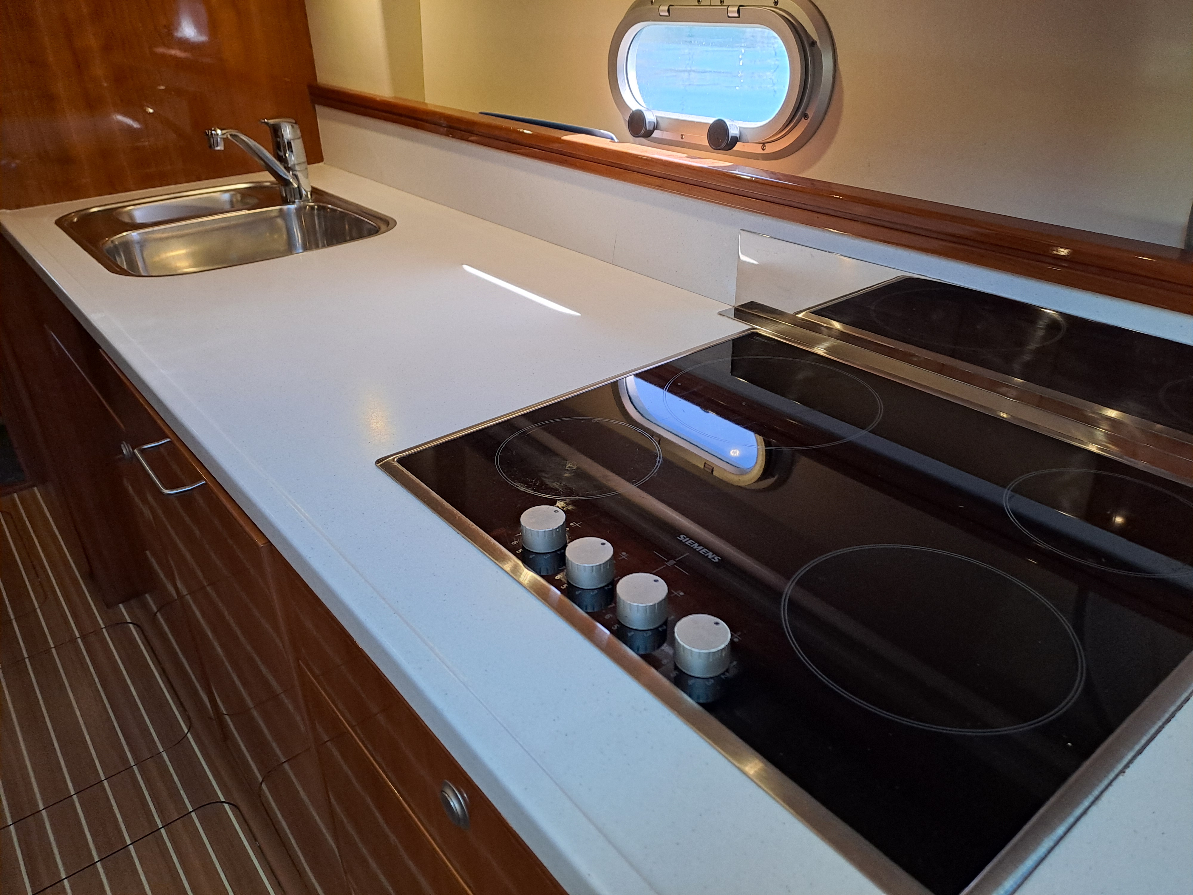 Scratch proof wood flooring to galley and deck saloon