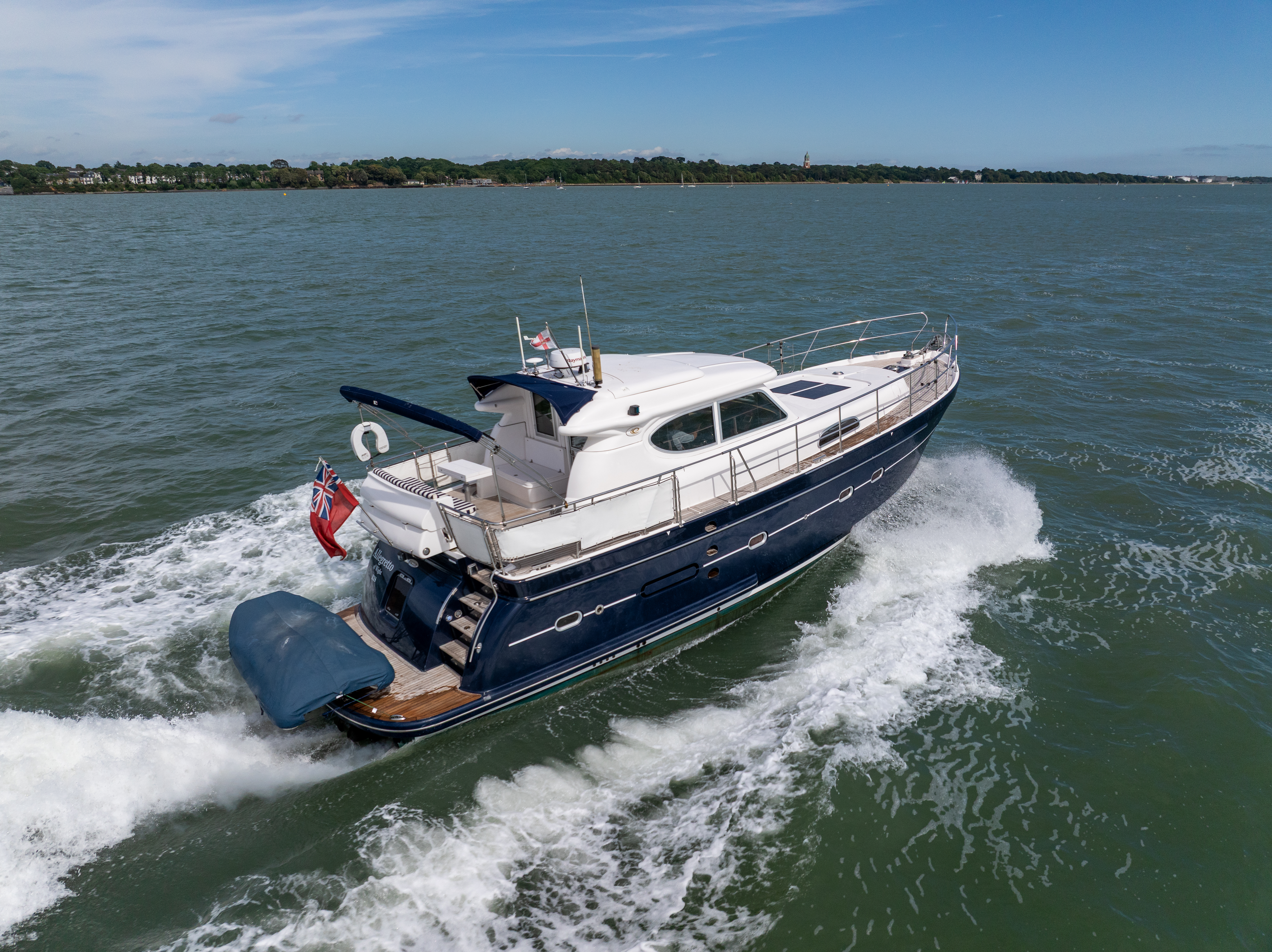 “Allegretto” features a spacious layout, complemented with clever design features throughout including air conditioning, full leather upholstery and making her an excellent all weather boat, a MagnusMaster stabiliser. She is ready for her next adventure and available to view in Bembridge by contacting Ancasta Cowes.