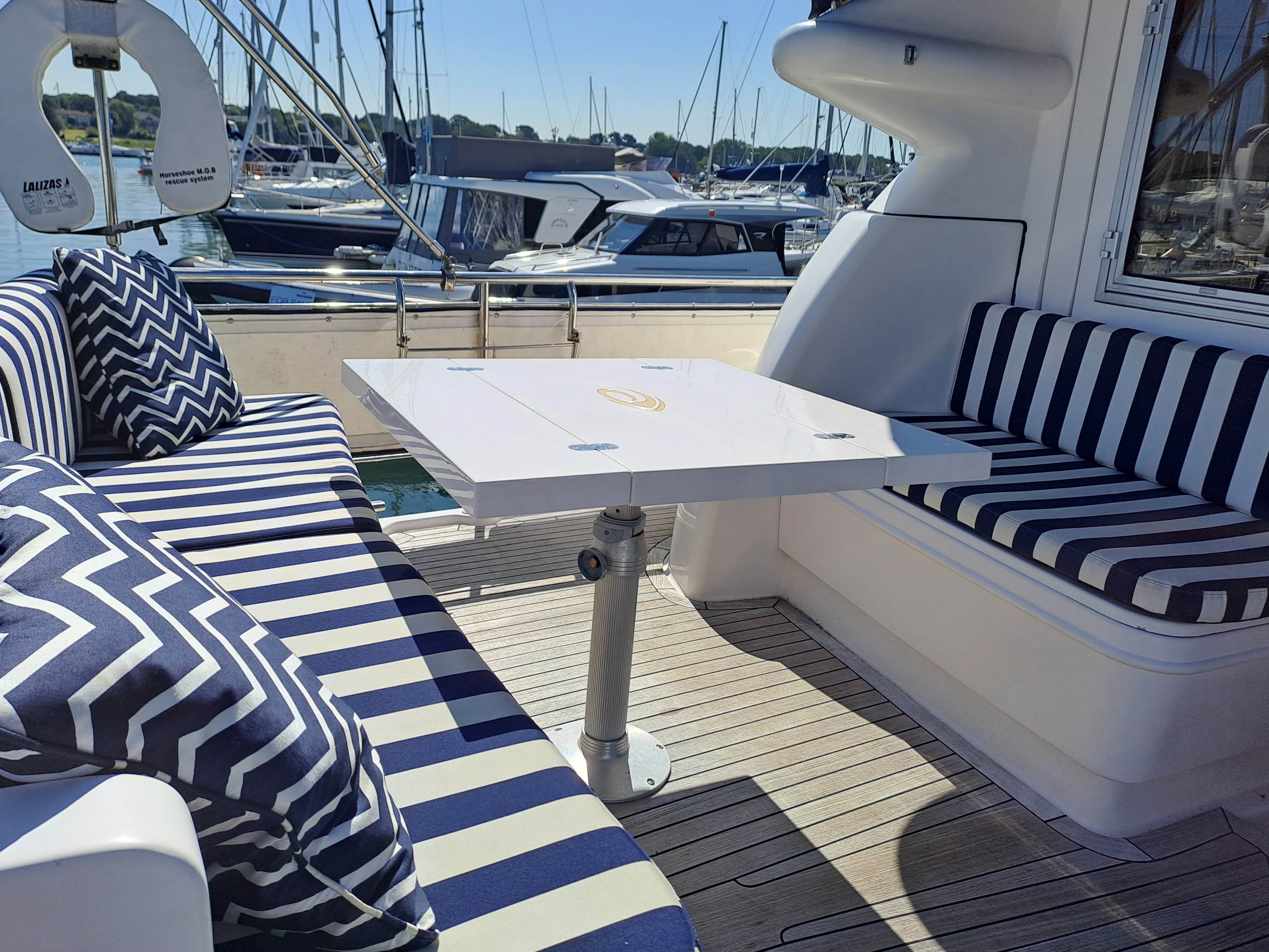 Teak side decks, cockpit and bathing platform