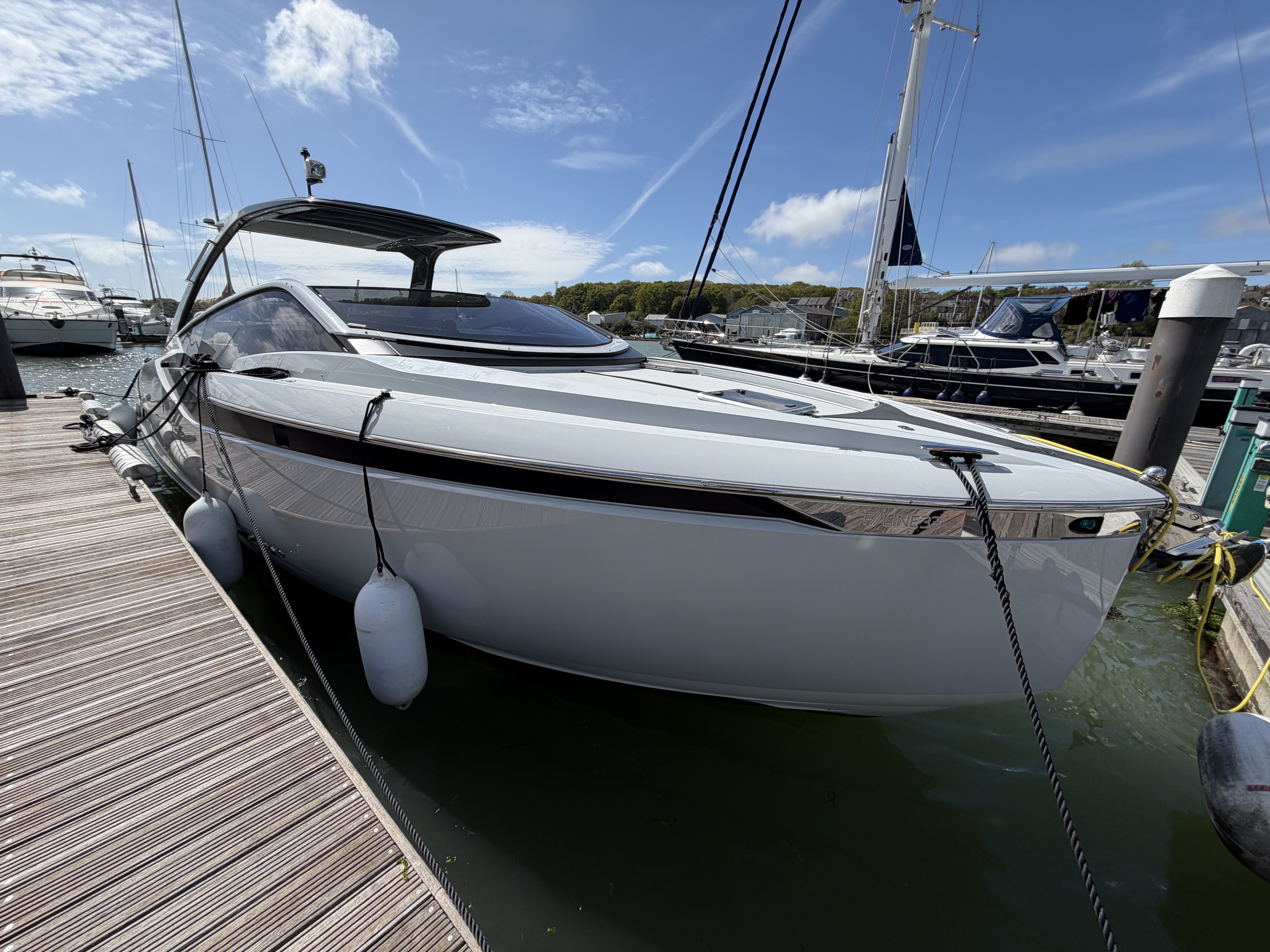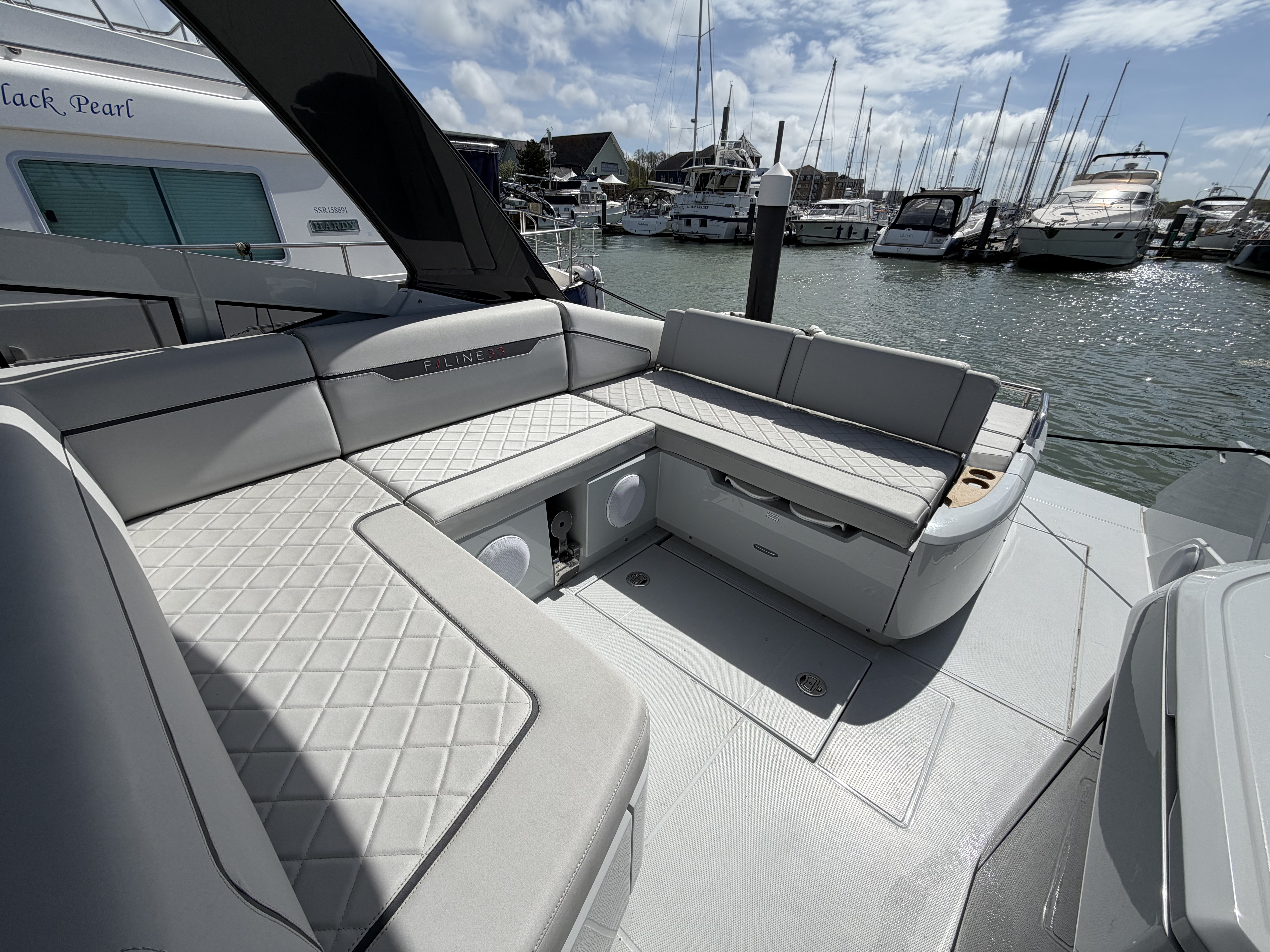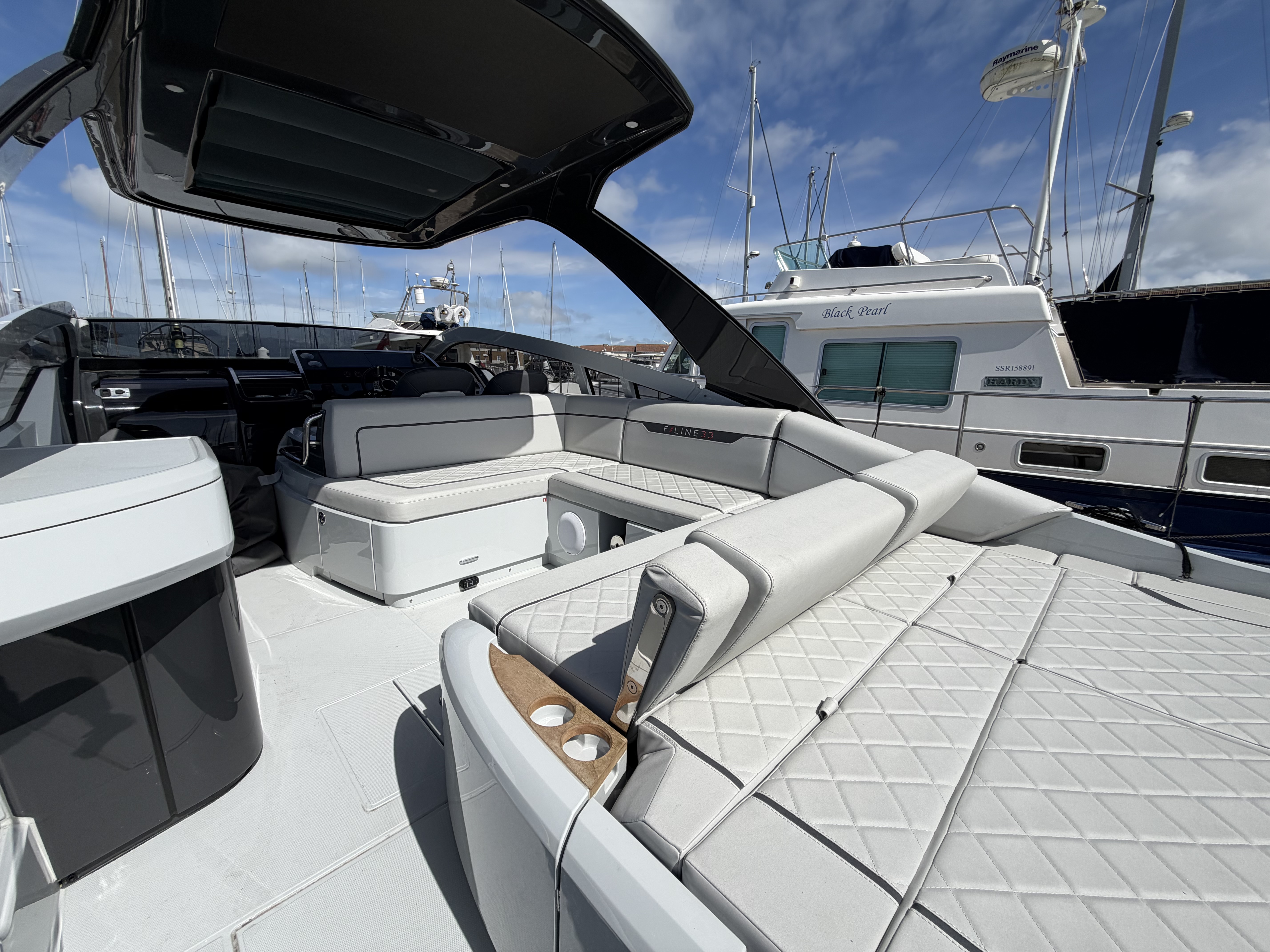 This stunning brokerage Fairline F//Line 33 is now available. Engineered for the thrill-seeker, this F//Line 33 delivers an agile, responsive ride that feels more like a sports car than a cruiser. Whether you are darting across the bay for lunch or making a high-speed coastal run, the hull design ensures a dry, stable, and incredibly fast journey.