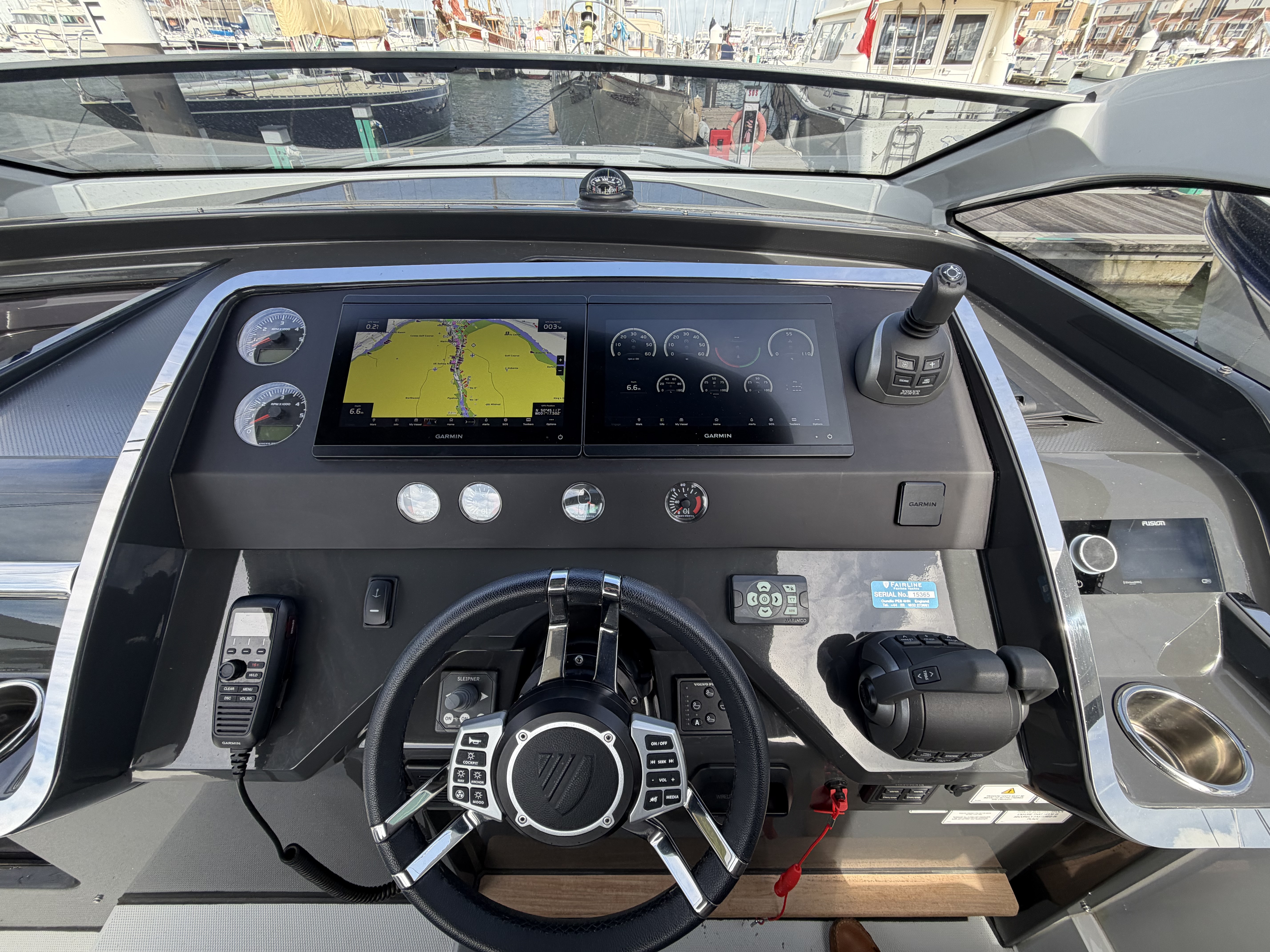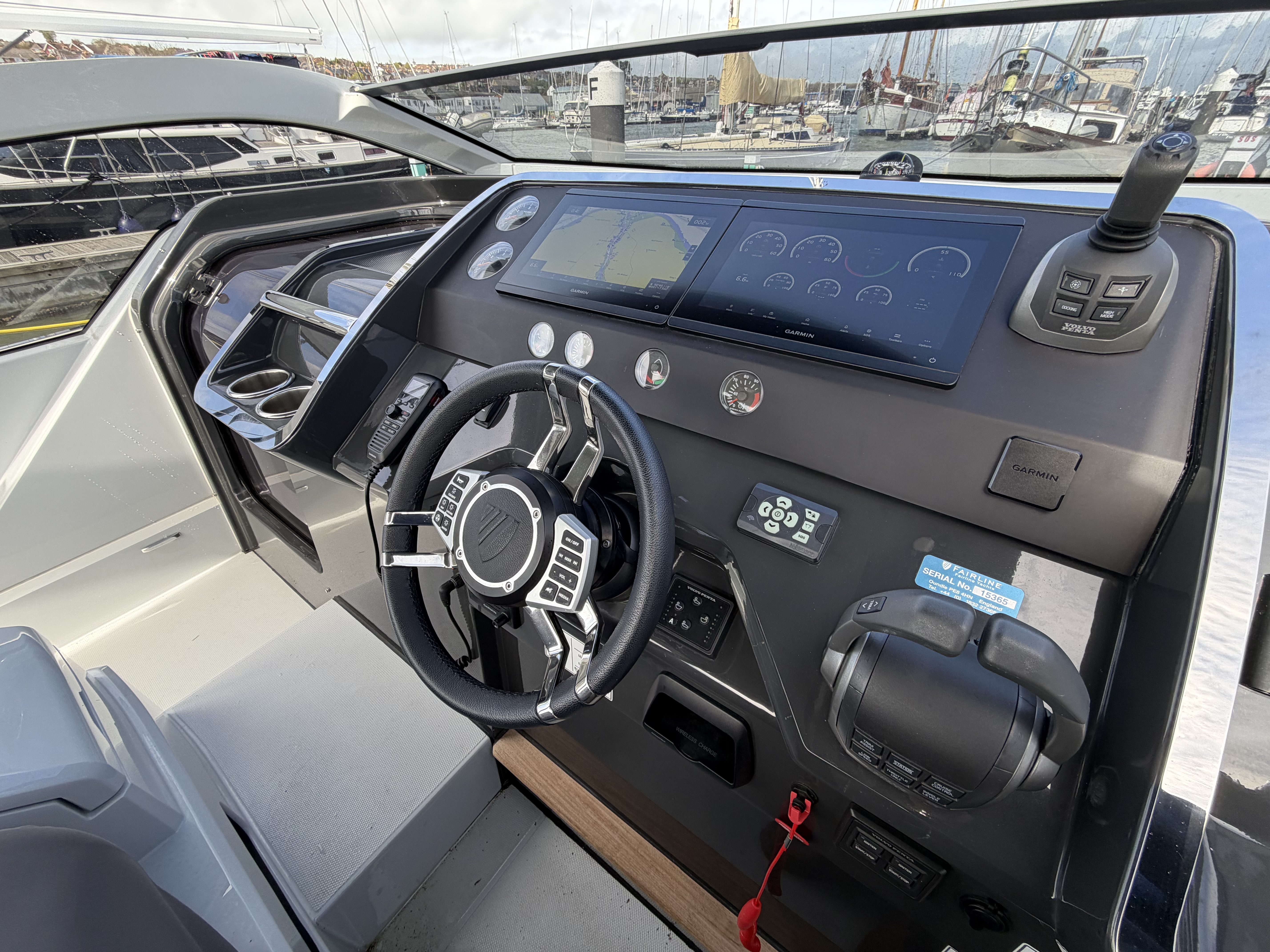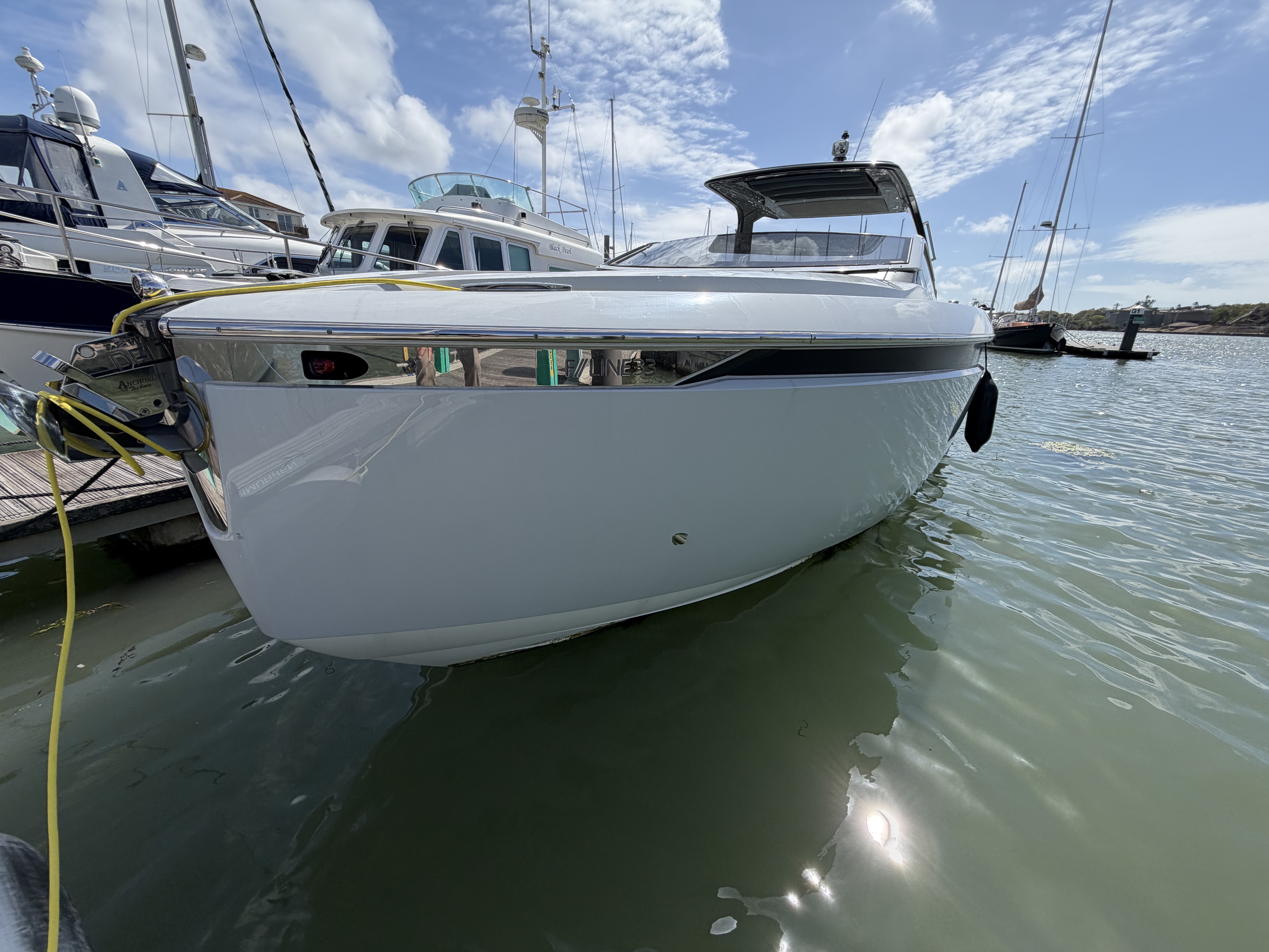 This stunning brokerage Fairline F//Line 33 is now available. Engineered for the thrill-seeker, this F//Line 33 delivers an agile, responsive ride that feels more like a sports car than a cruiser. Whether you are darting across the bay for lunch or making a high-speed coastal run, the hull design ensures a dry, stable, and incredibly fast journey.