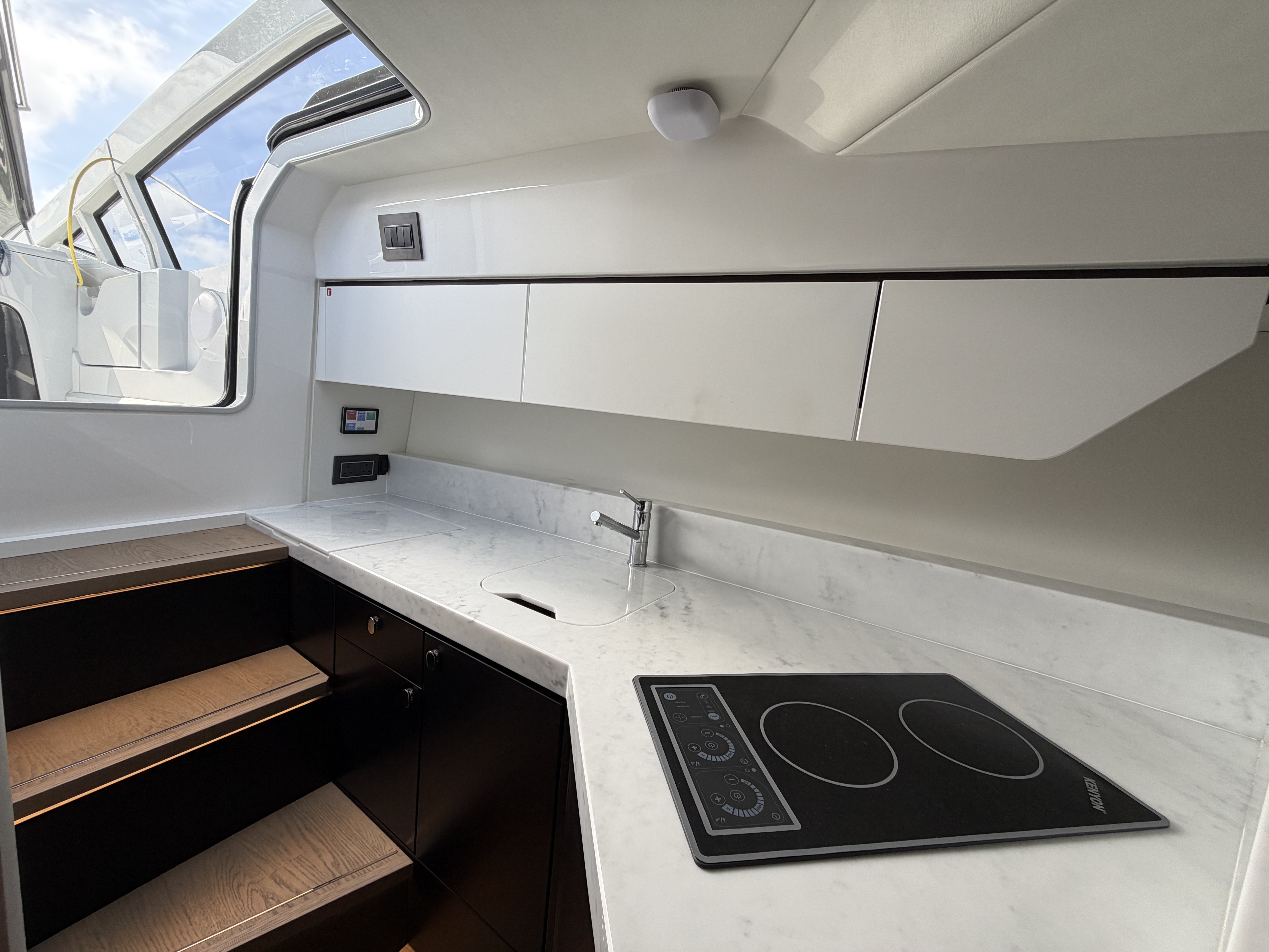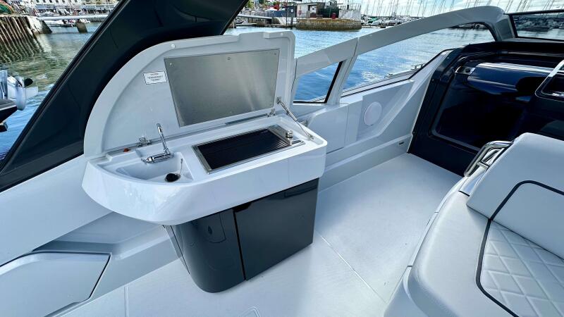 Wetbar to port with fridge, electric griddle and cockpit bar