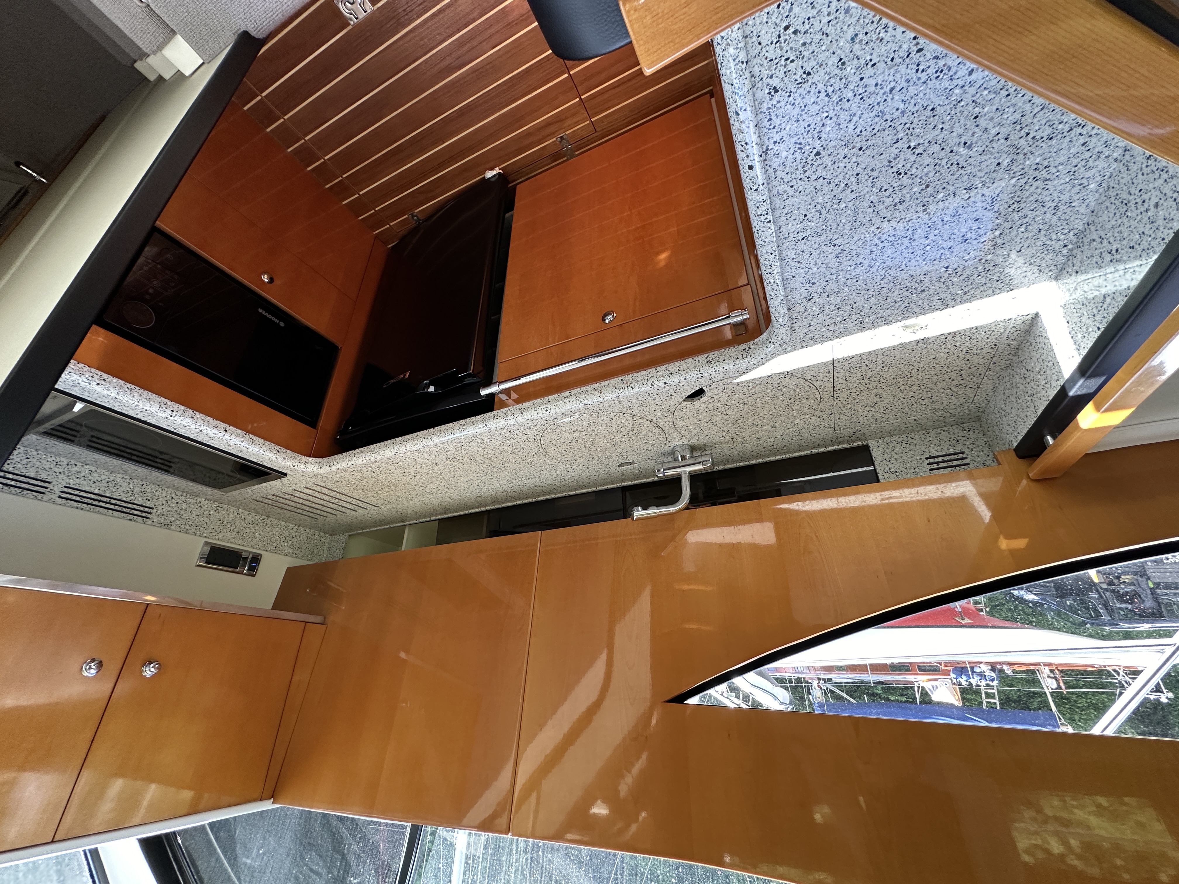 Teak-laid bathing platform, cockpit and fly-bridge steps.