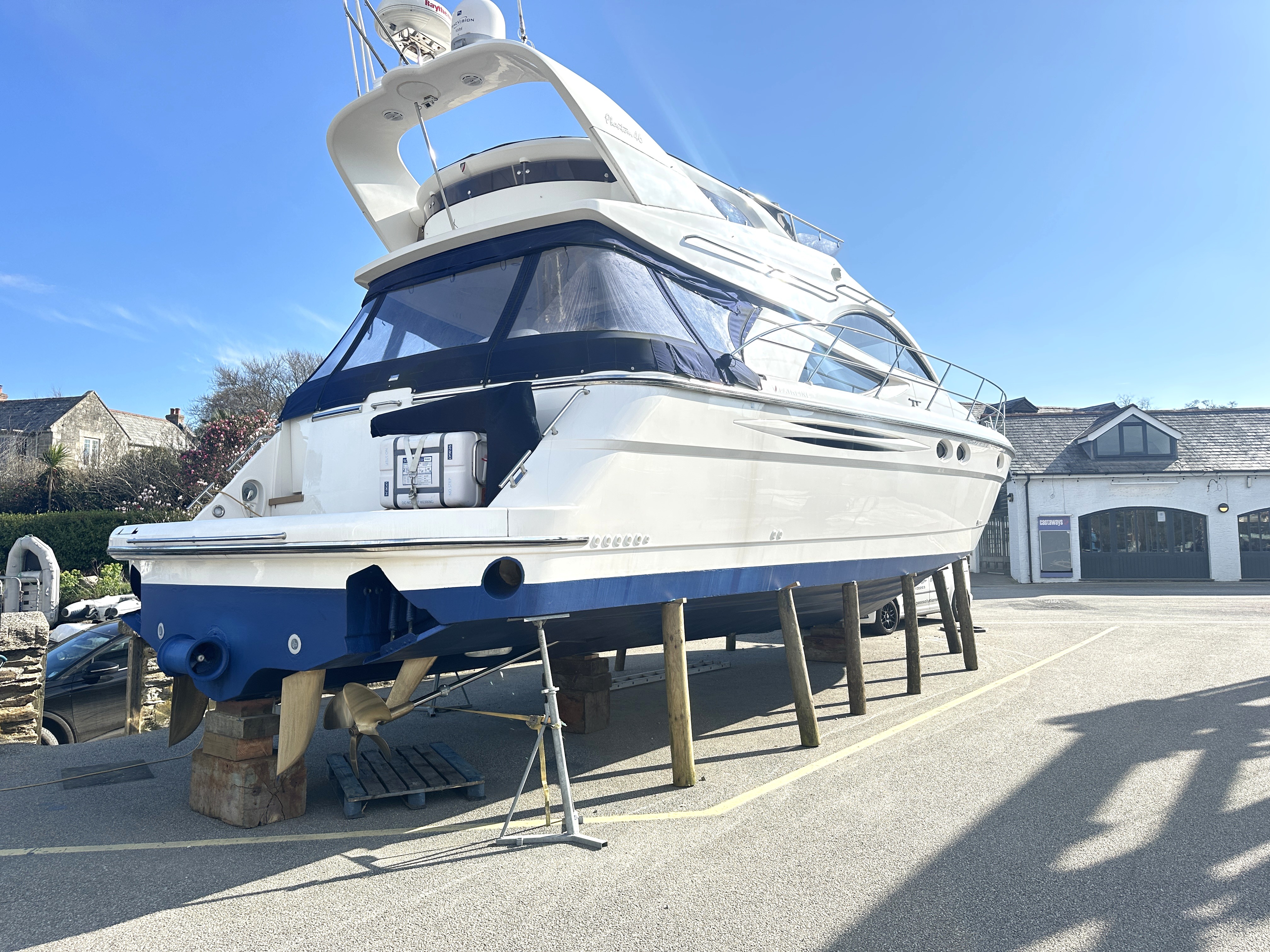 Fairline Phantom 46 flybridge motor cruiser built in 2001 and powered by twin Volvo Penta TAMD 74P EDC 480hp diesels which were reconditioned in 2022 - only 700 hours from new.