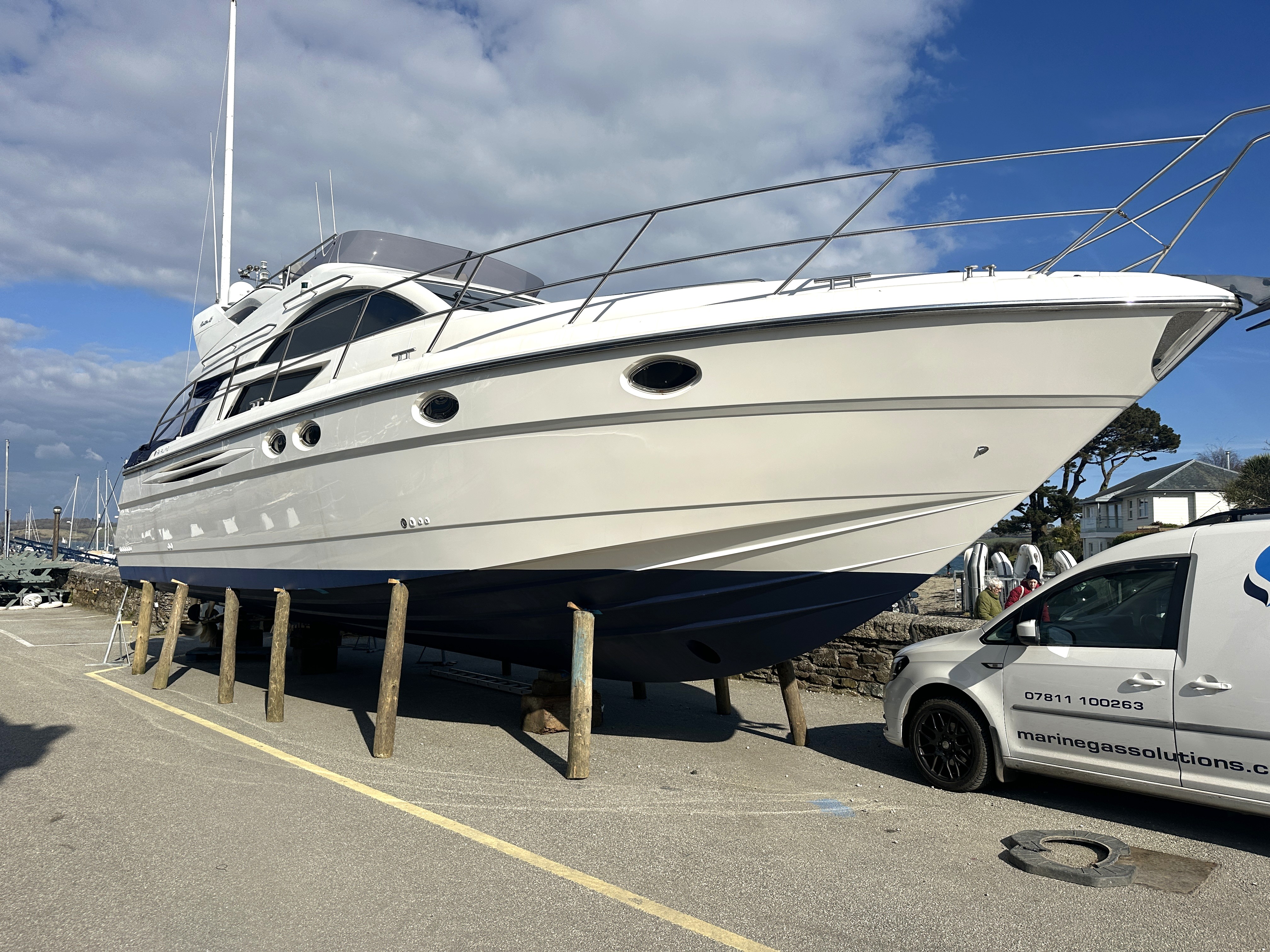 Ashore from January 2025 for her Annual engine Service, Clean & Antifoul/anodes. Gearboxes also checked with New clutch packs fitted. Relaunched April 2025 to MYH pontoon berth.