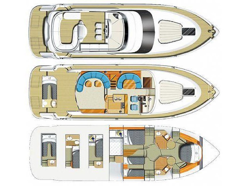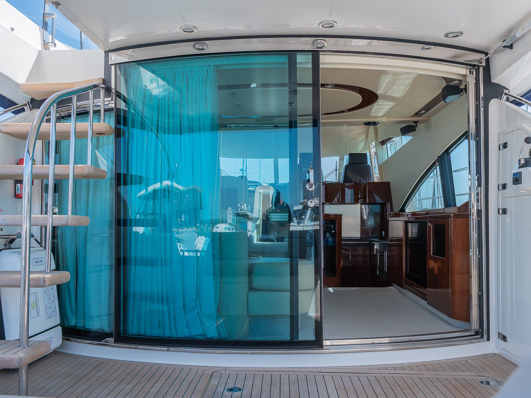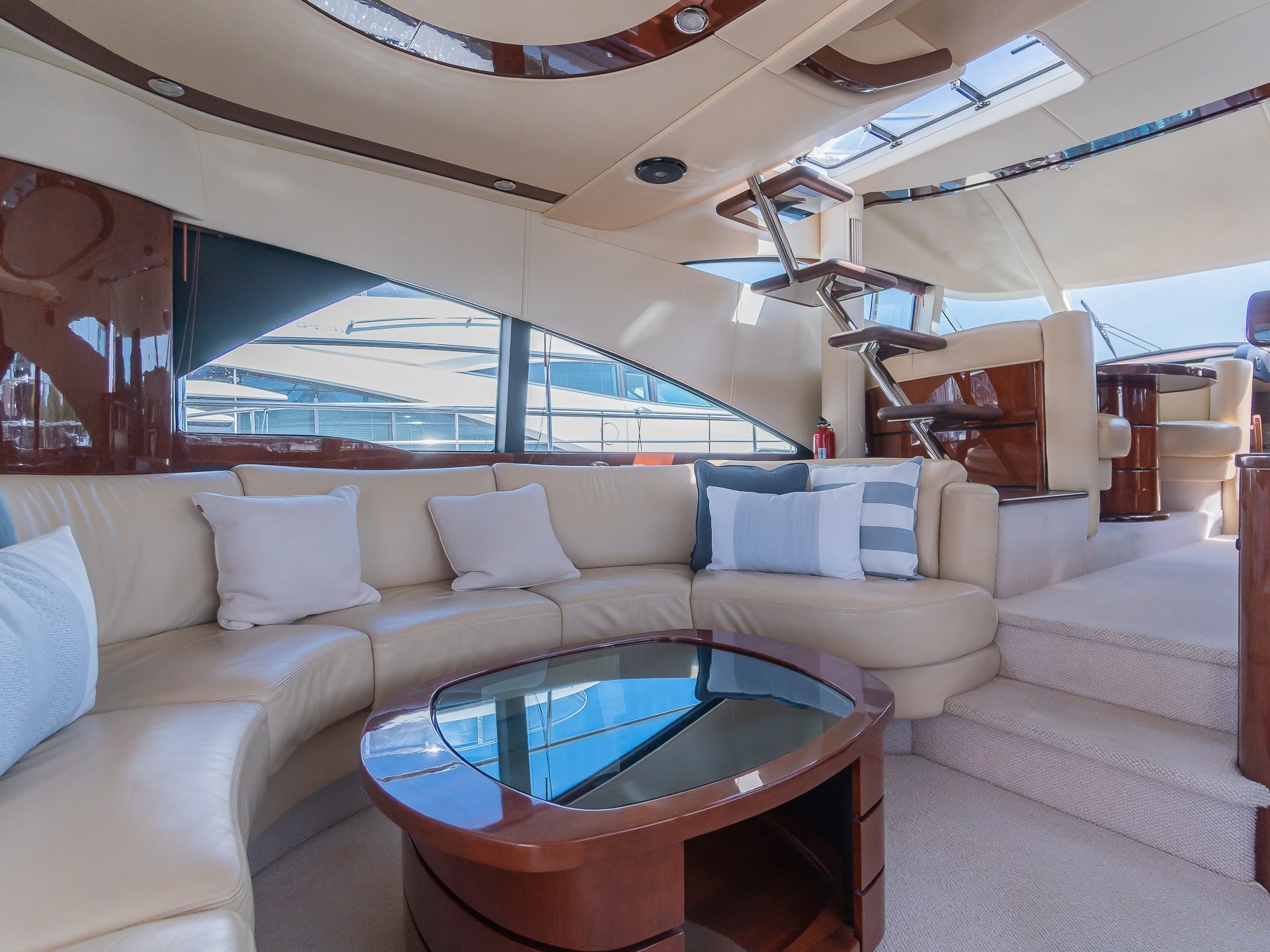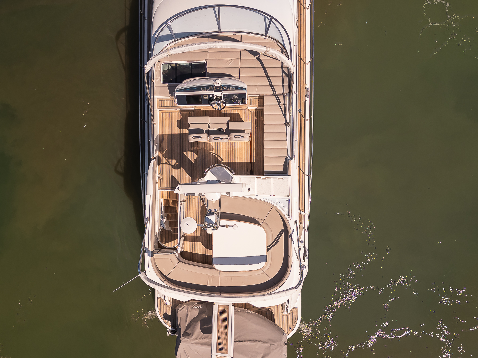 The open-plan interior combines high-end finishes with practical features, making it ideal for extended cruising or entertaining. A key highlight is the beach club option, offering water-level access for swimming, relaxing, or launching water toys.