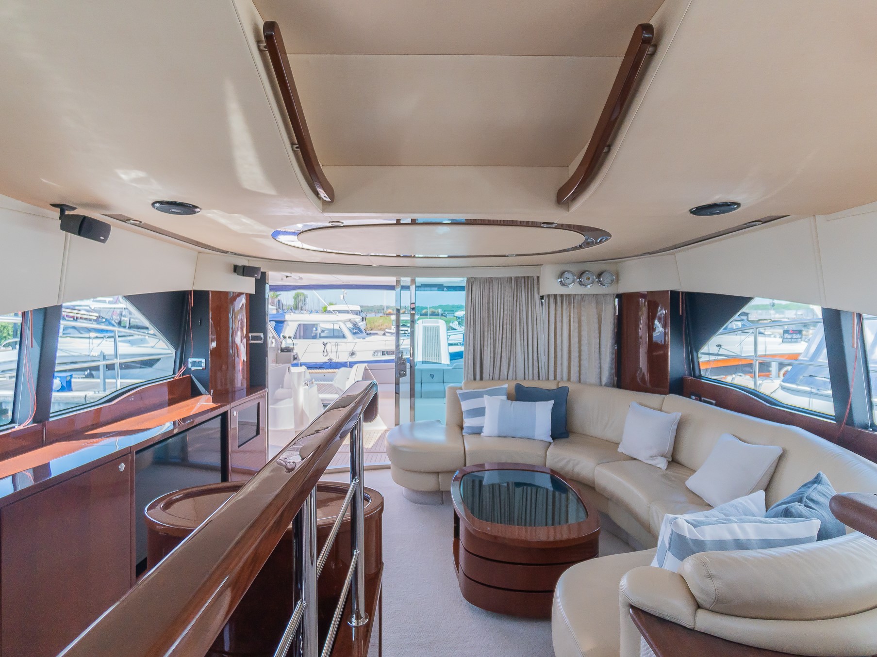 Into The Blue is a 2008 Fairline Squadron 58, coming to the market in very good condition. This 58-foot, three-cabin cruiser is well-regarded for its sleek design, spacious layout, and solid build quality.