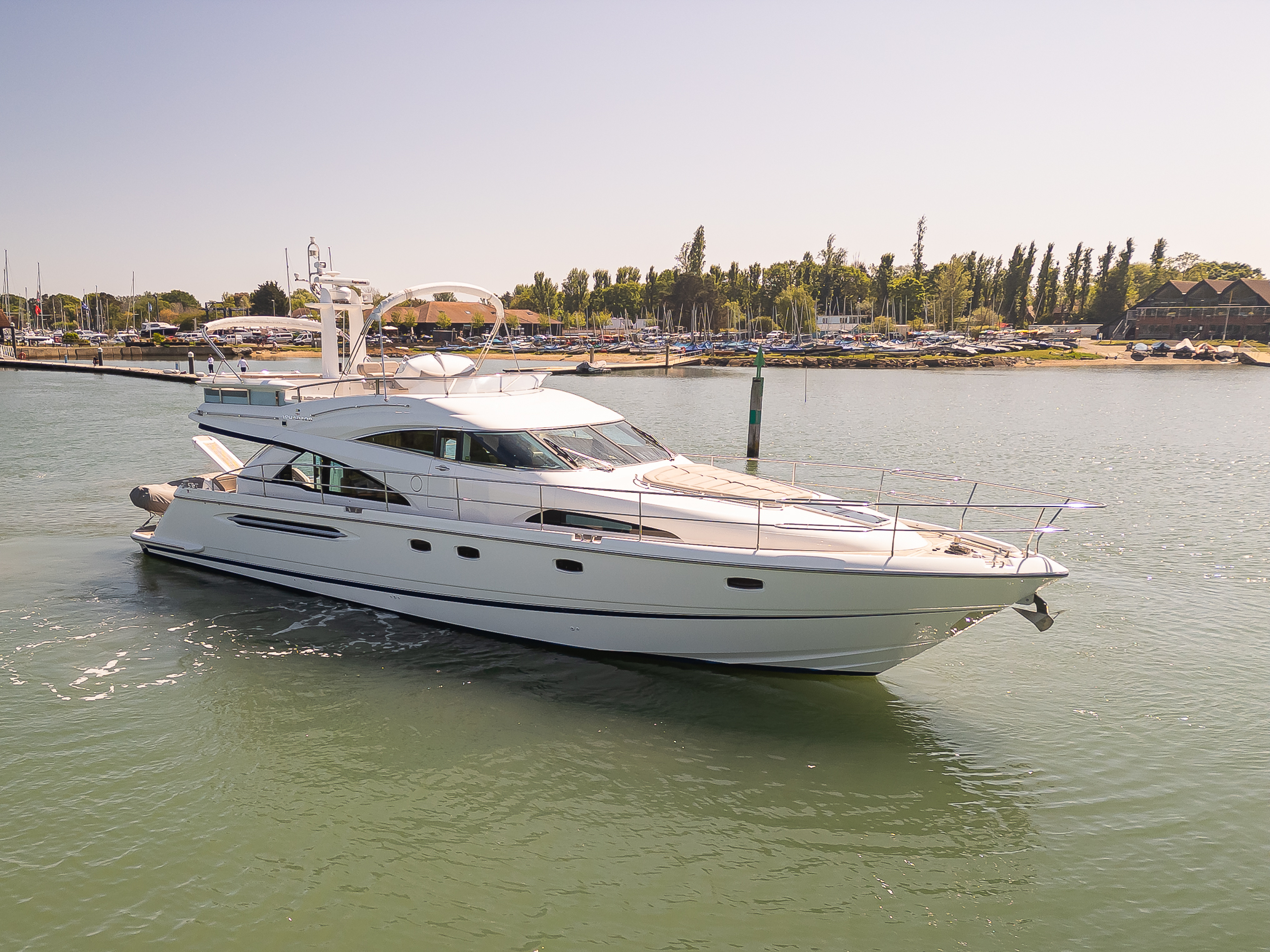 Luxury flybridge cruiser built by Fairline Boats PLC, Oundle, Peterborough to a design by Bernard Olesinski