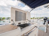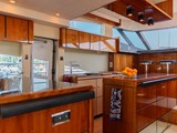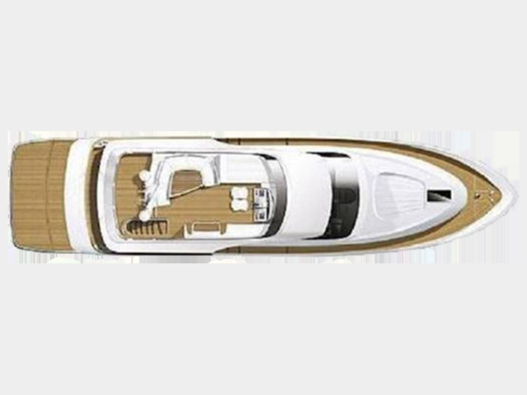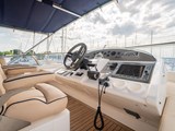 Teak-laid cockpit, bathing platform, decks and flybridge.