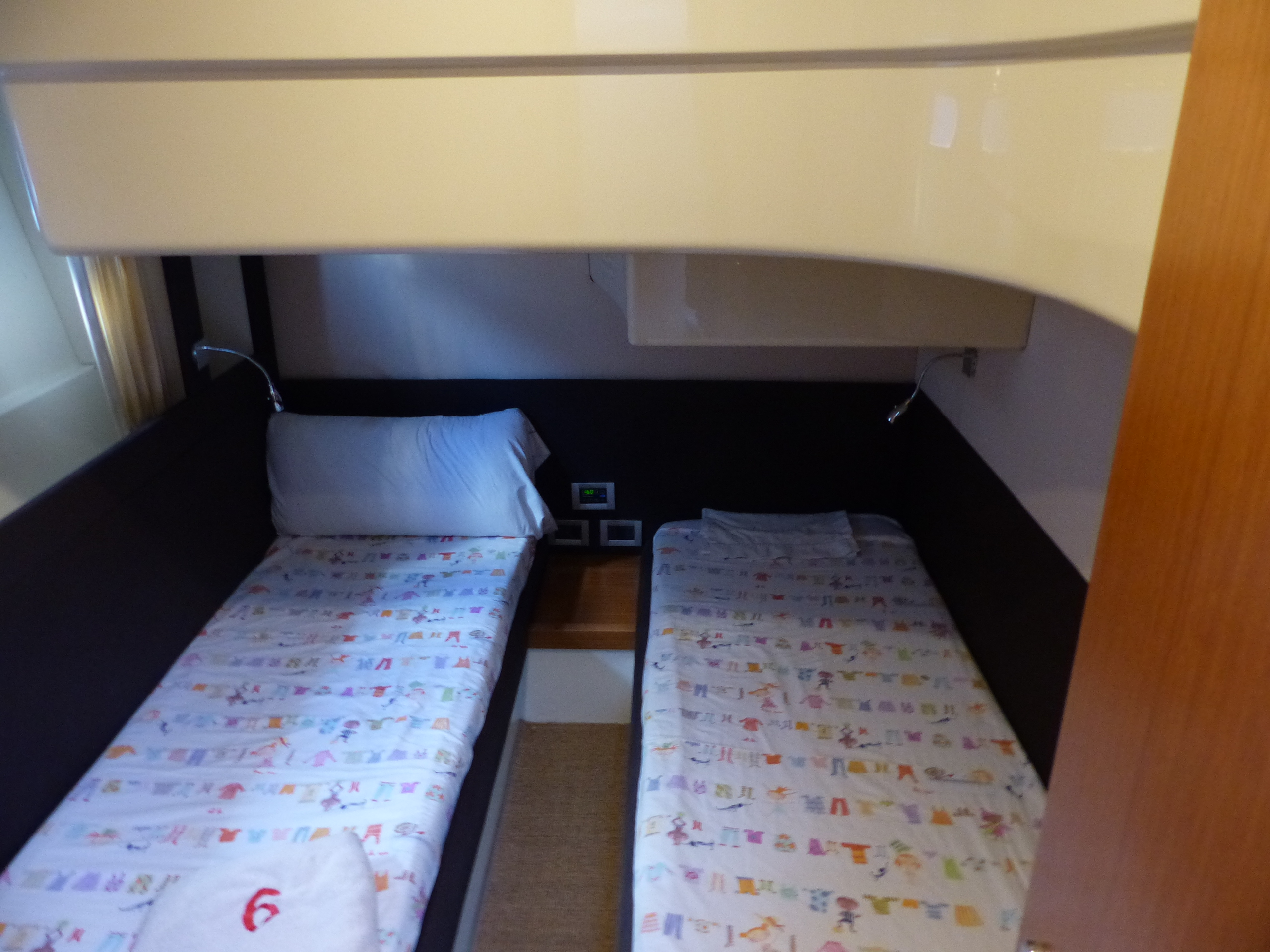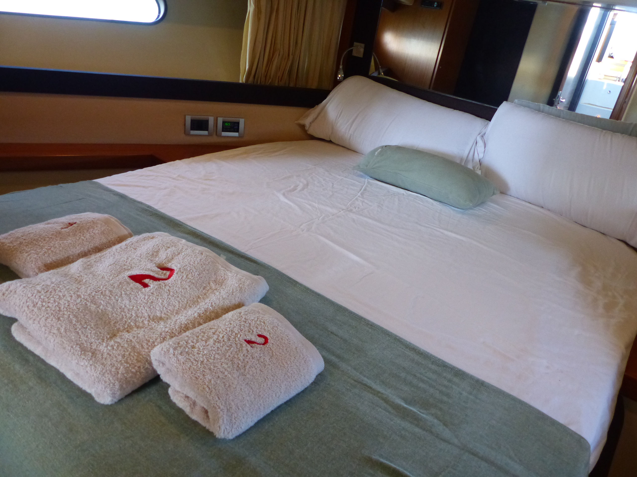 Forward master stateroom with large double berth. Private en-suite heads with basin and electric quiet freshwater flush toilet