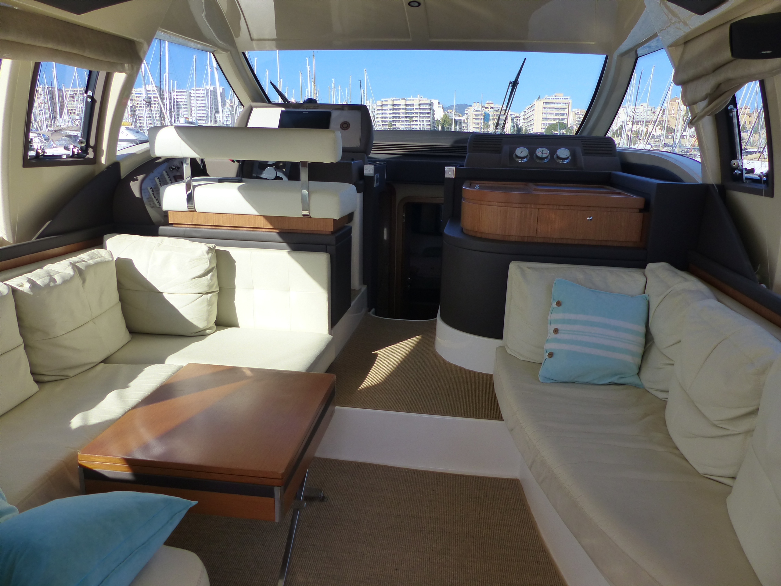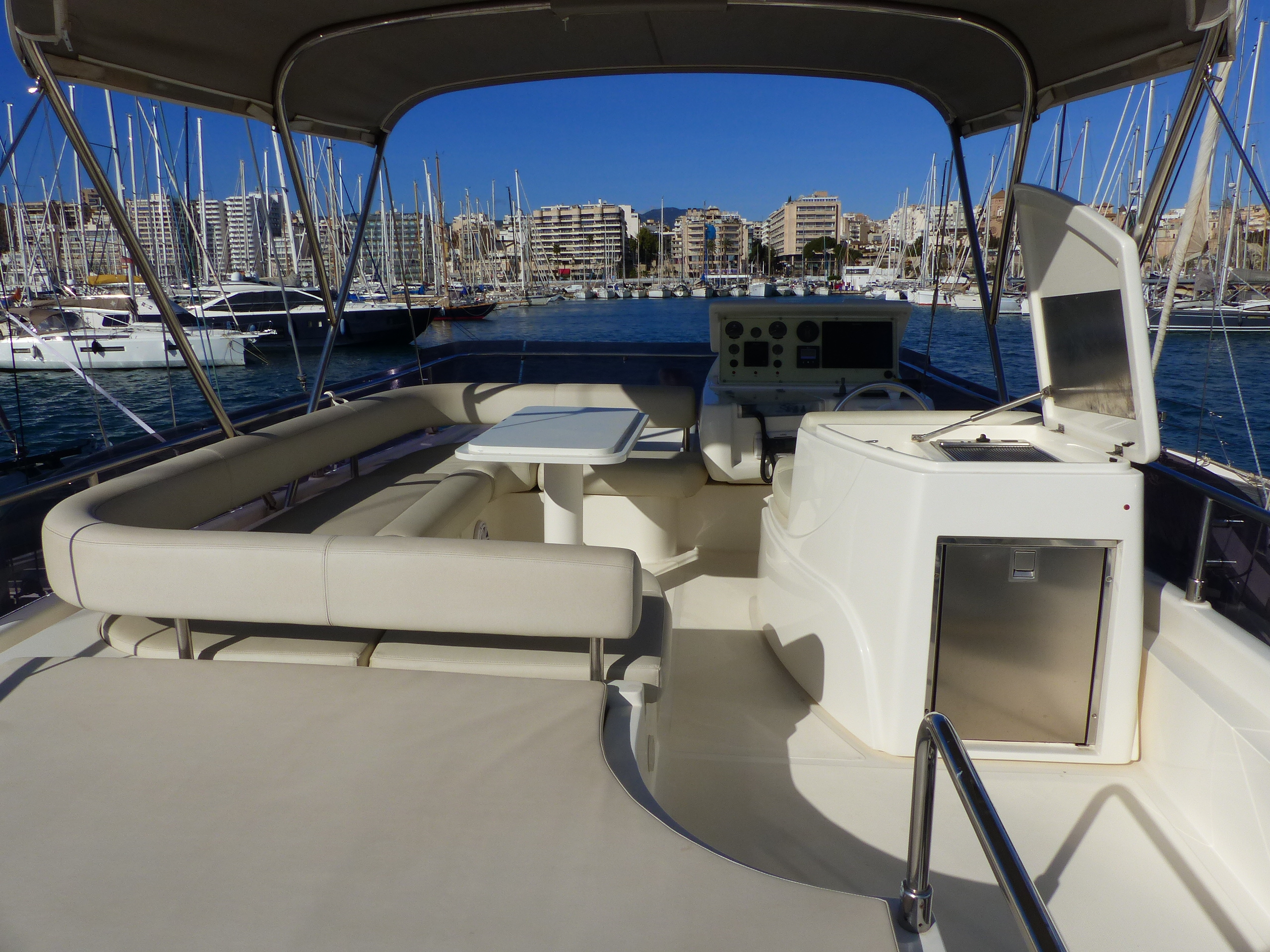 FEVER is a very well looked after, clean mid-sized Fly-bridge yacht here in Mallorca. She is a boat for Sun lovers, with a huge open fly-bridge and partially covered cockpit. She has new navigation equipment, a hydraulic swim platform, hydraulic passarelle and plenty of space. The interior is elegant, with three cabins and two bathrooms. She can be viewed at short notice. Renting the mooring is also a probability, in Mallorcas` most prestigious yacht club.