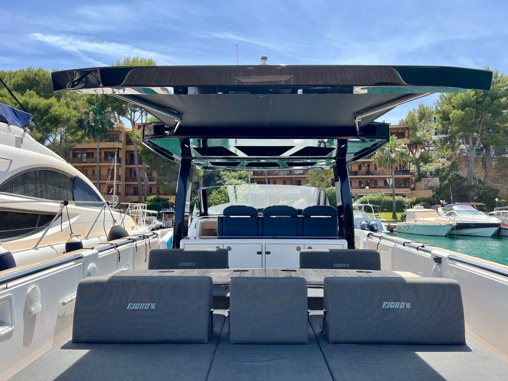 Based in Mallorca, this Fjord 42 Open is ready for immediate delivery, with her mooring also negotiable.