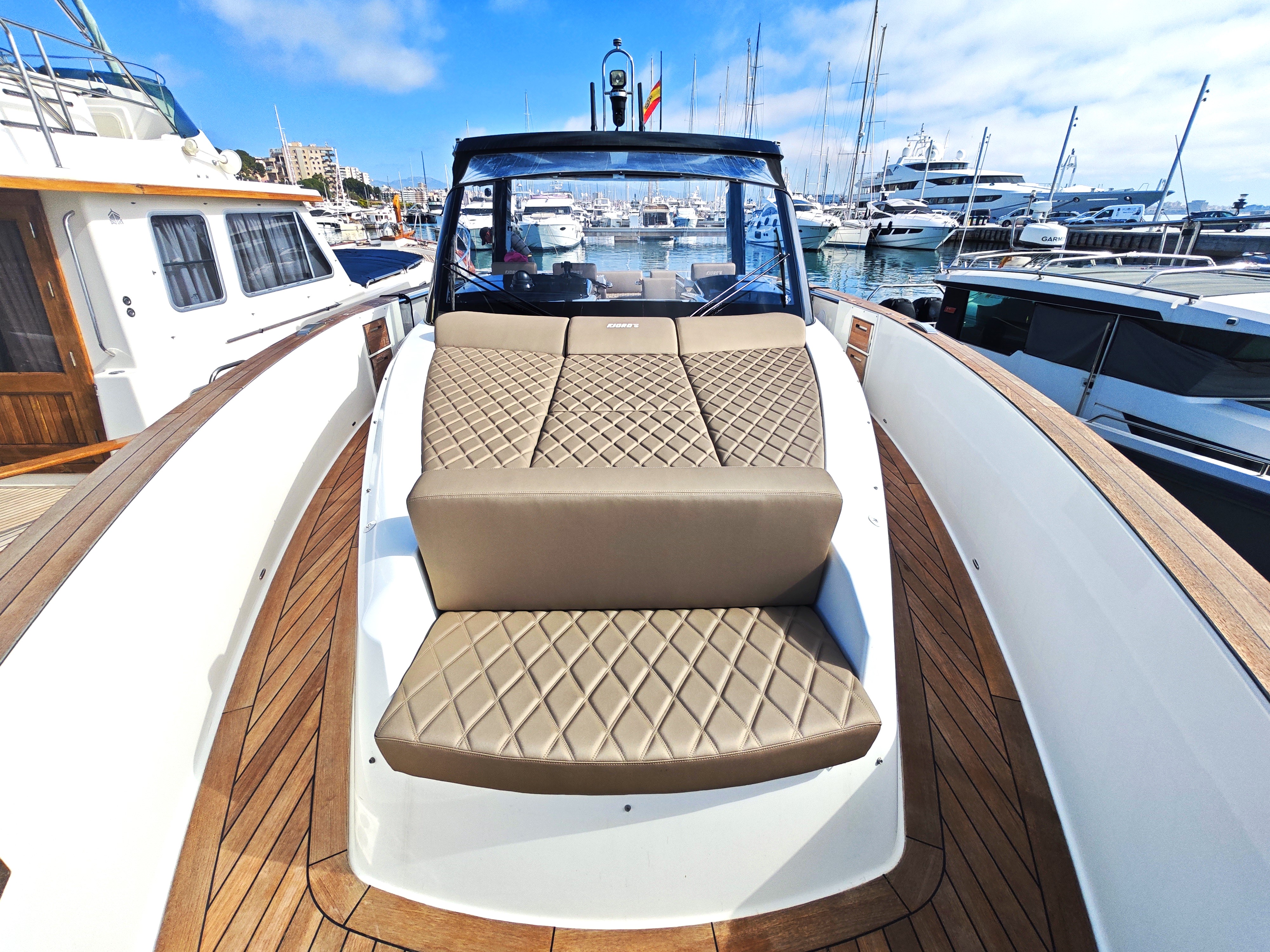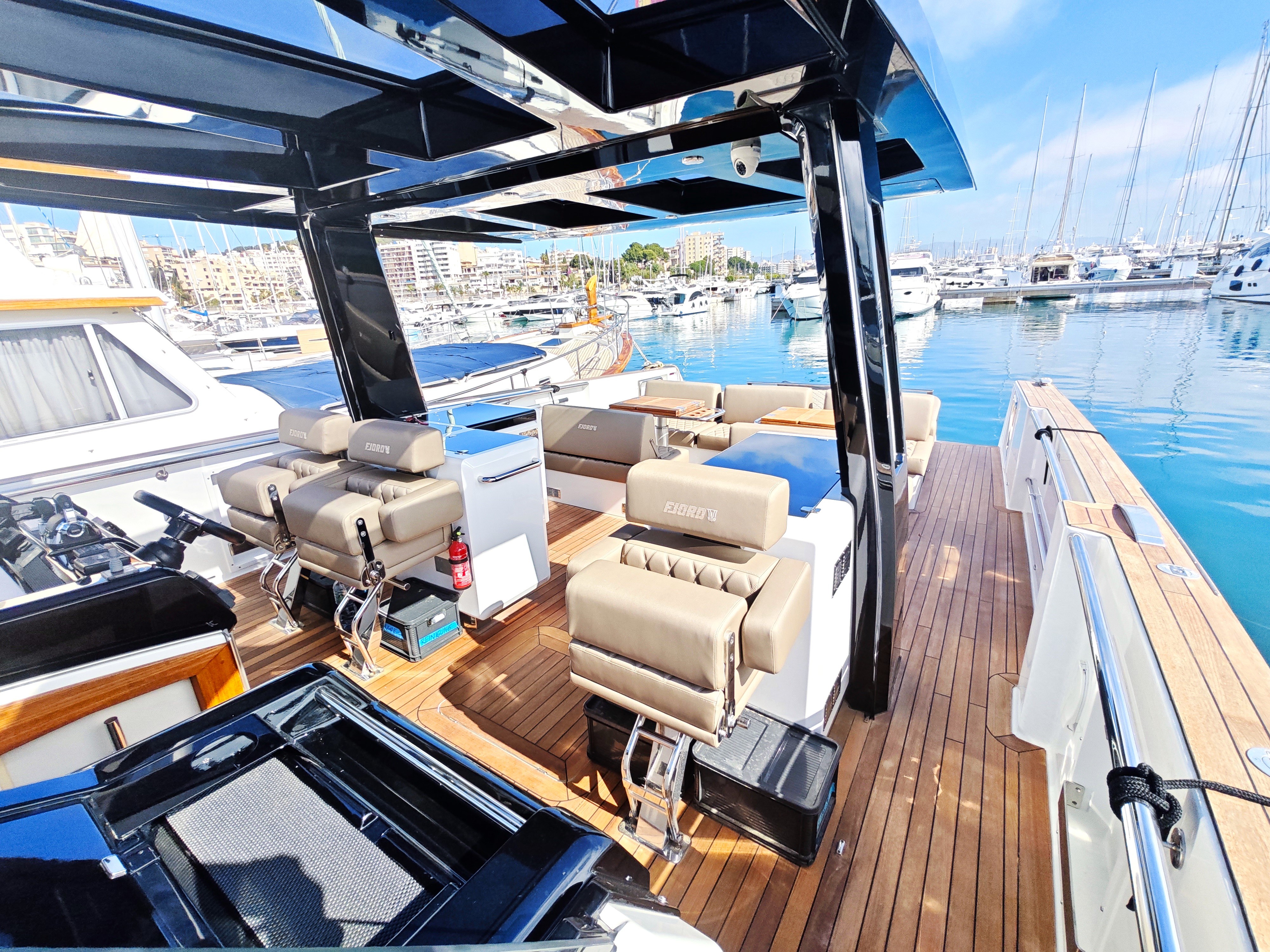 Fjord 52 Open - with berth available to take over in Club de Mar, right in the heart of Palma! This is a great example of a tender garage version of this very popular Fjord 52 Open. Well looked after by its current owner and great spec including air conditioning, hydraulic platform, generator, etc.