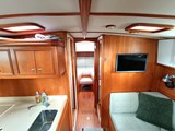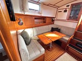 Drop down leafed table converts to double berth, U-shaped settee, curtains and blinds