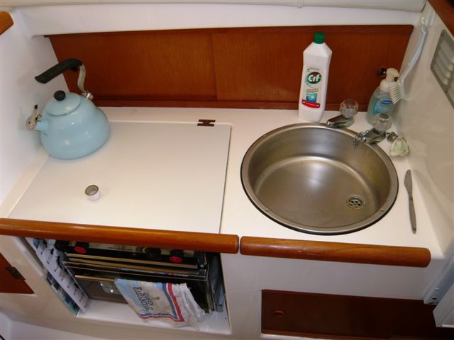 Galley area with Plastimo Neptune 2 burner gas cooker, oven & grill