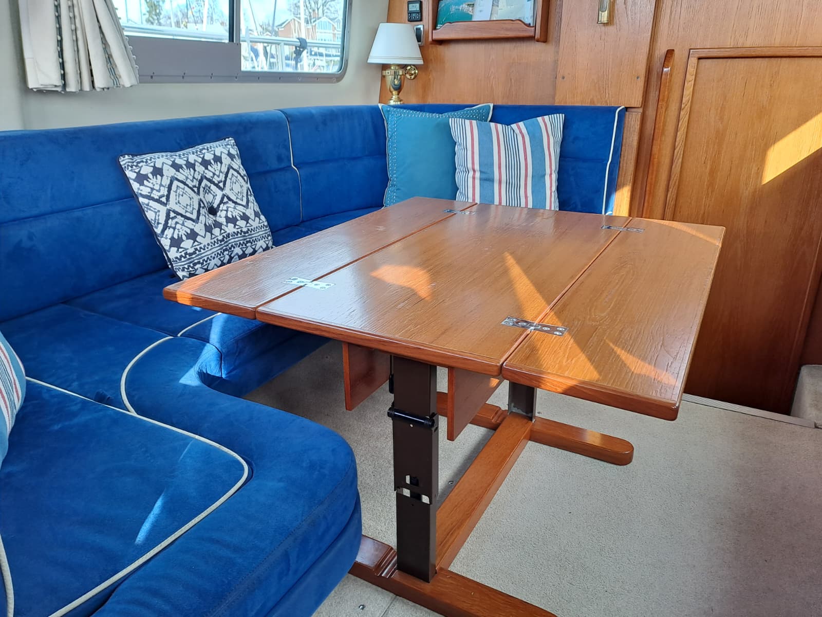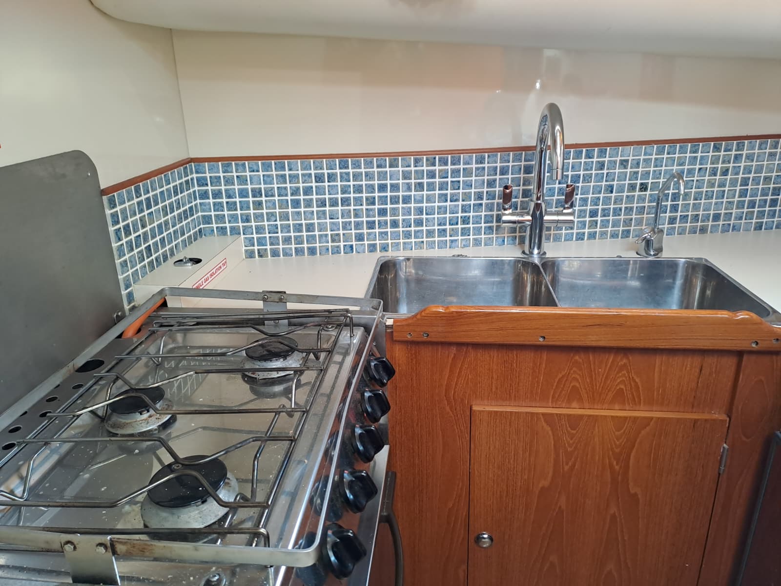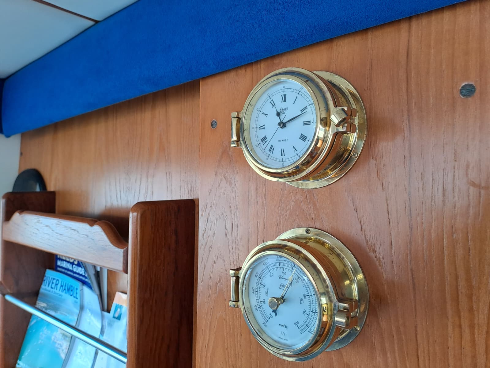 'Jalina' is fitted out with comfortable accommodation across two cabins and a saloon conversion, a guest cabin located forward with a V berth that converts to a double and the full beam owners cabin aft equipped with ample storage and a private en-suite, a suitable arrangement for prolonged time spent onboard.