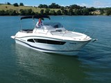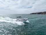 The Cap Camarat range from Jeanneau are excellent everyday cruisers with great performance, safety and fun paramount in their design. The 9.0 is the flagship model, offering unrivalled comfort and contemporary style, the large cockpit area is well protected by the large wrap around windscreen with plenty of seating and raised helm position allowing all round views of the boat and environment. The interior sleeps four and includes a galley and heads. 'Barco' is powered by twin Suzuki 200HP outboards and the bow thruster makes manoeuvres simple and controlled. The full cockpit or the two bimini options provide choice in keeping the weather out. This is a great boat for couples or families looking to extend their day trips with the convenience of overnighting when desired.