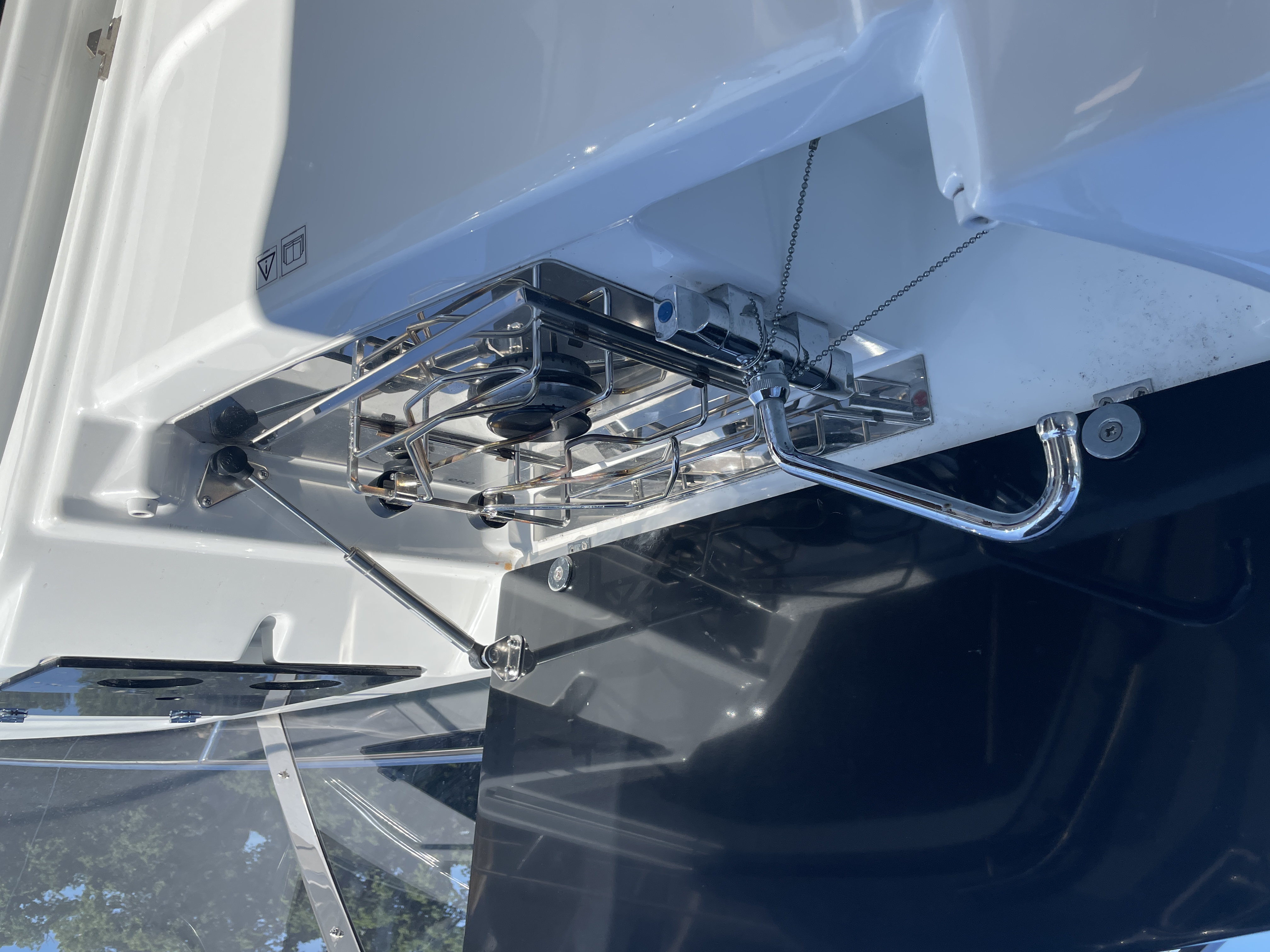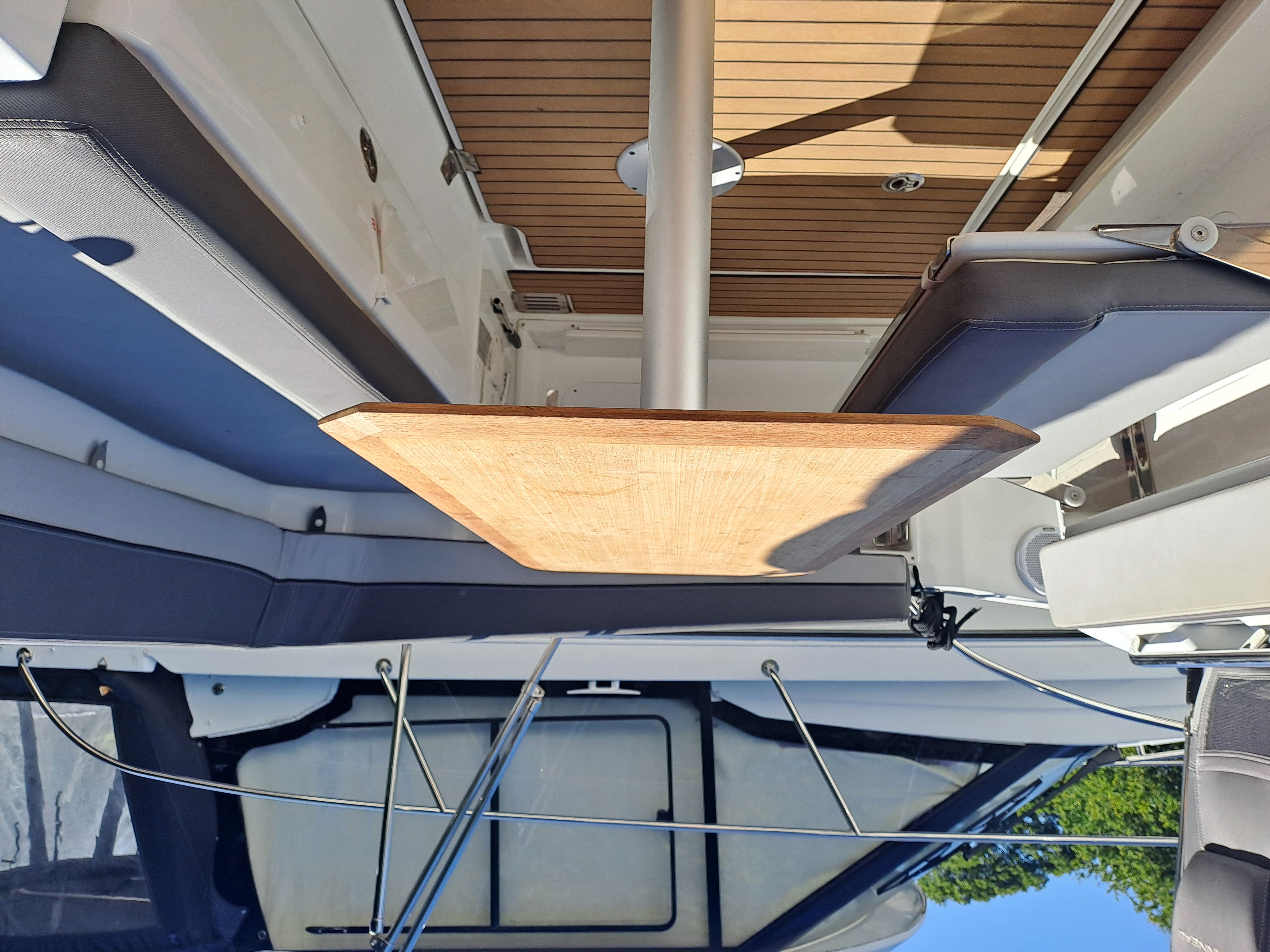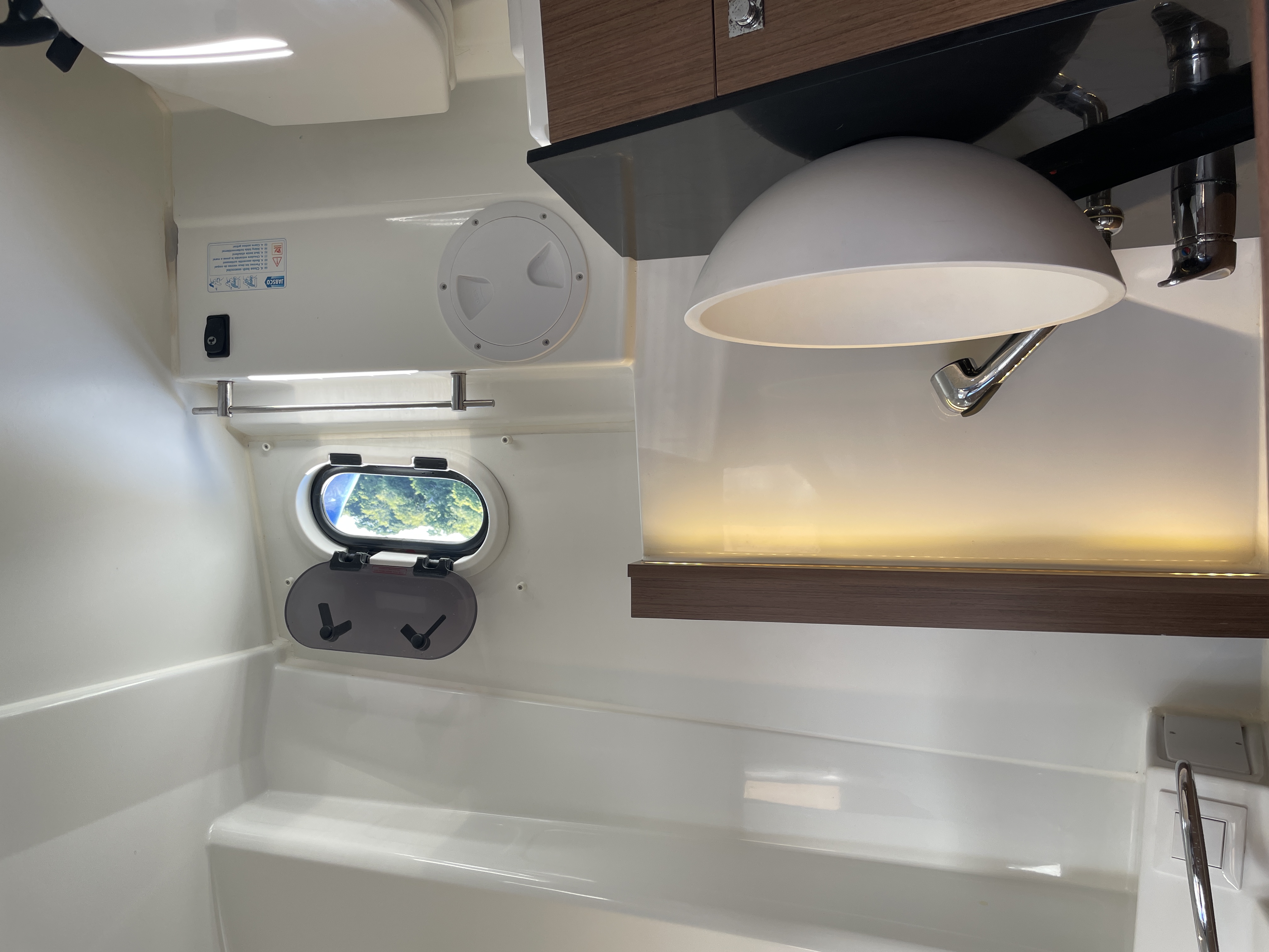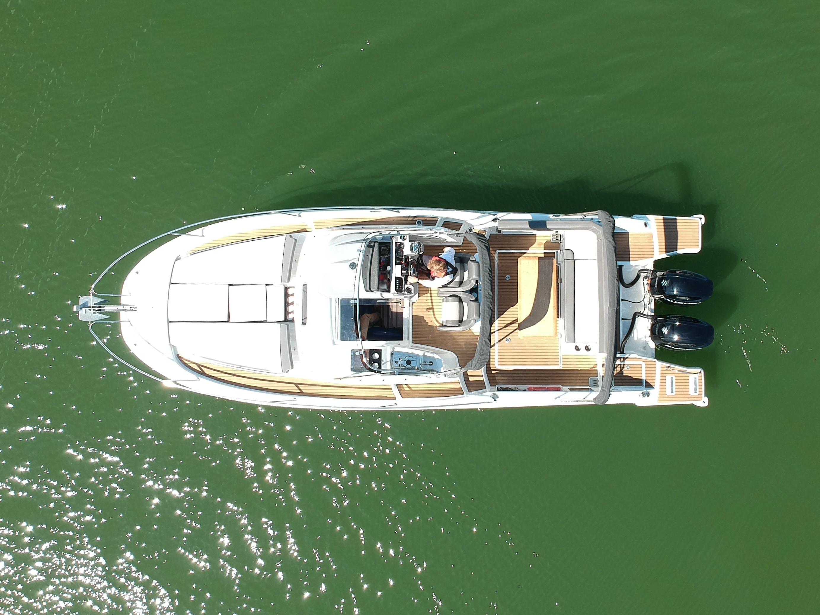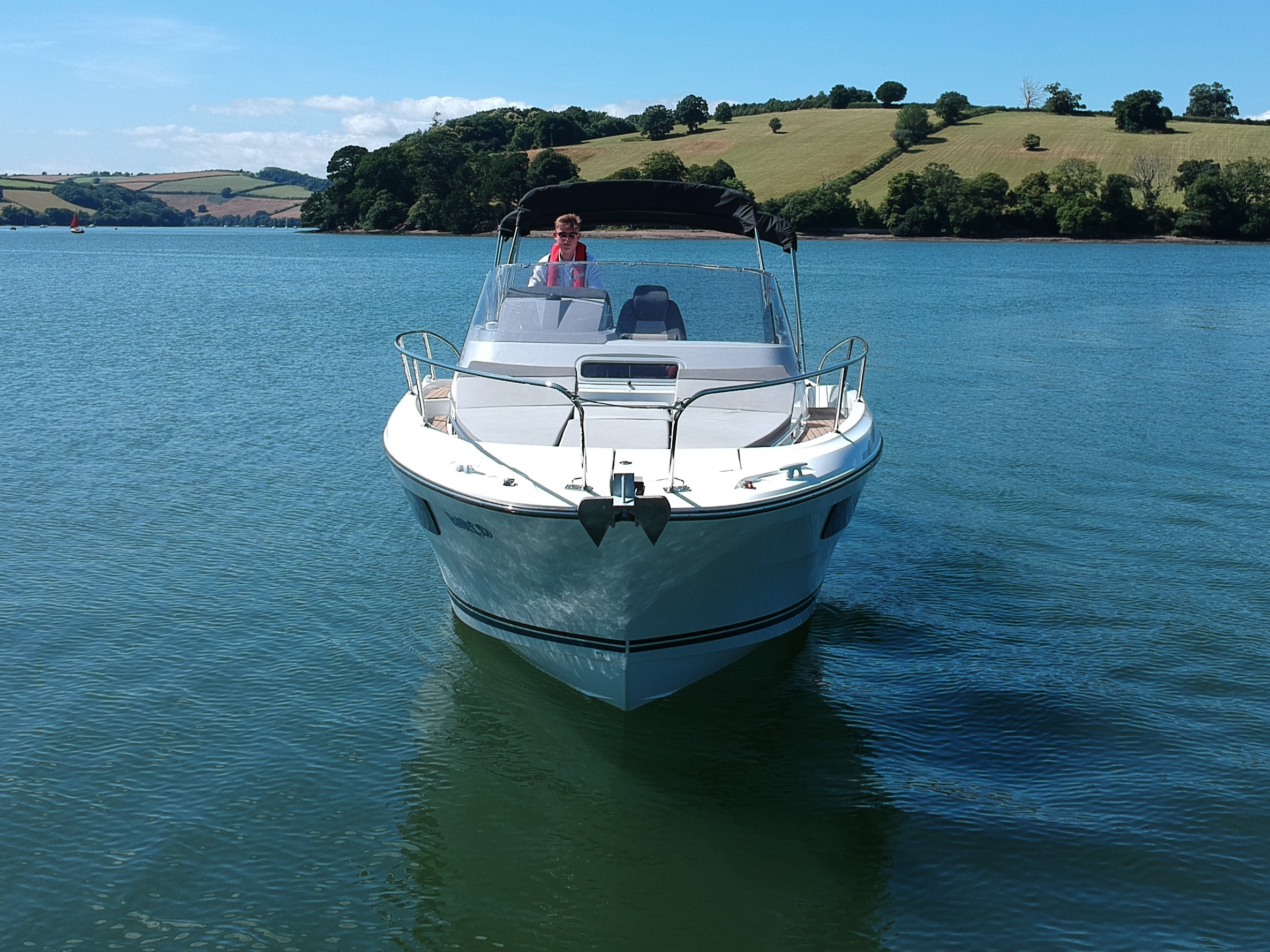 The Cap Camarat range from Jeanneau are excellent everyday cruisers with great performance, safety and fun paramount in their design. The 9.0 is the flagship model, offering unrivalled comfort and contemporary style, the large cockpit area is well protected by the large wrap around windscreen with plenty of seating and raised helm position allowing all round views of the boat and environment. The interior sleeps four and includes a galley and heads. 'Barco' is powered by twin Suzuki 200HP outboards and the bow thruster makes manoeuvres simple and controlled. The full cockpit or the two bimini options provide choice in keeping the weather out. This is a great boat for couples or families looking to extend their day trips with the convenience of overnighting when desired.