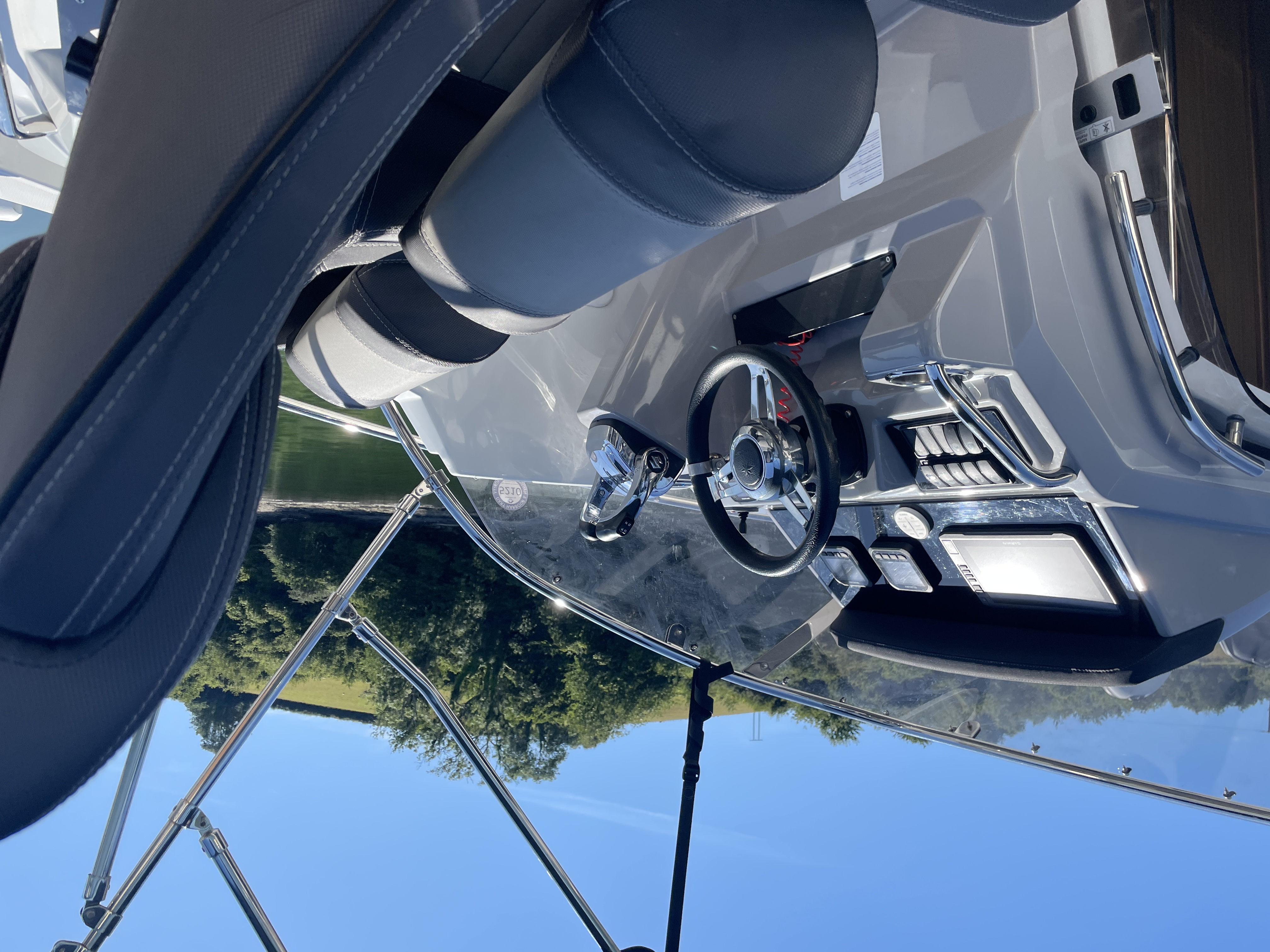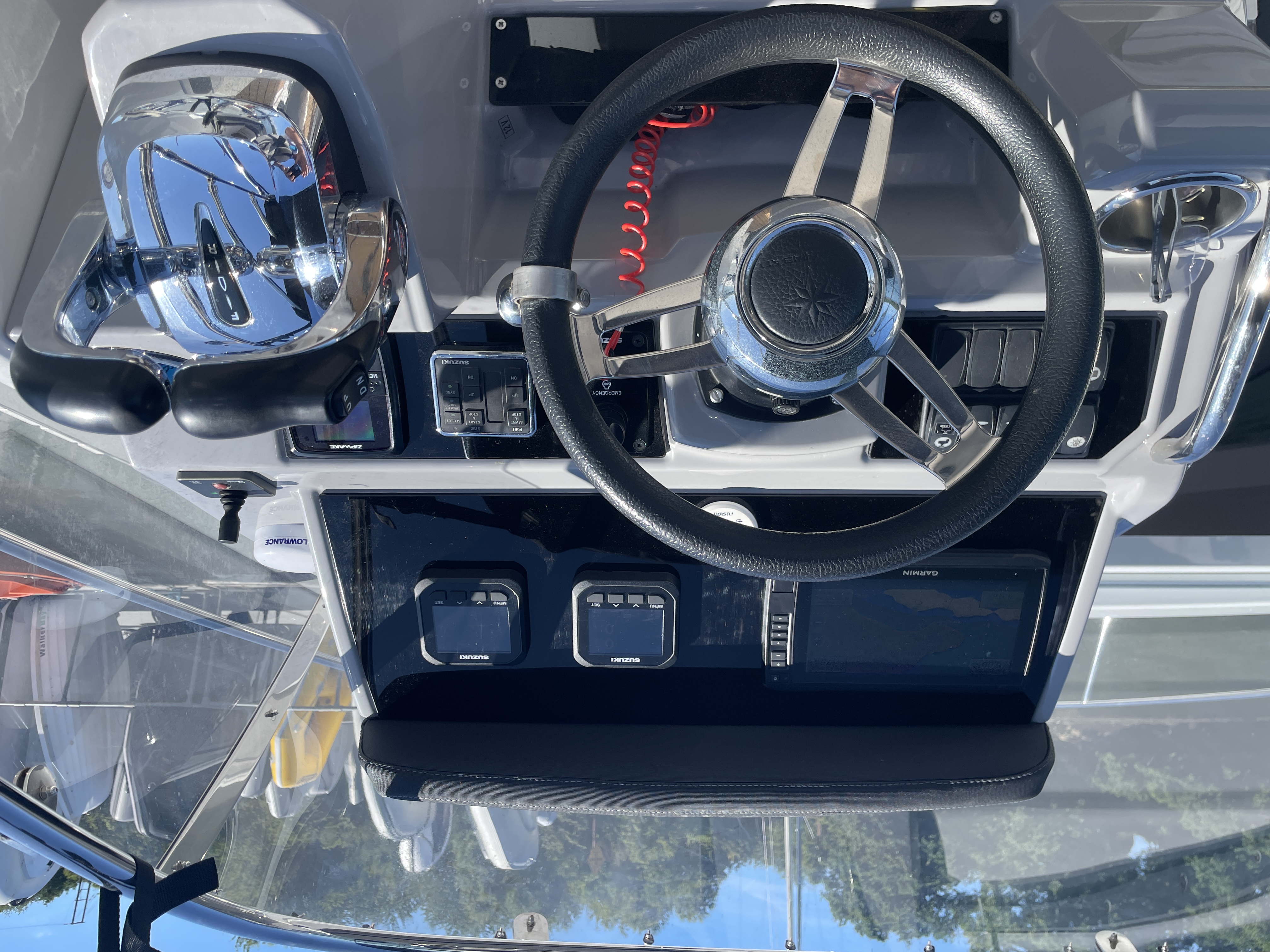 Helm position with all controls, pilot and co-pilot seats with leaning function