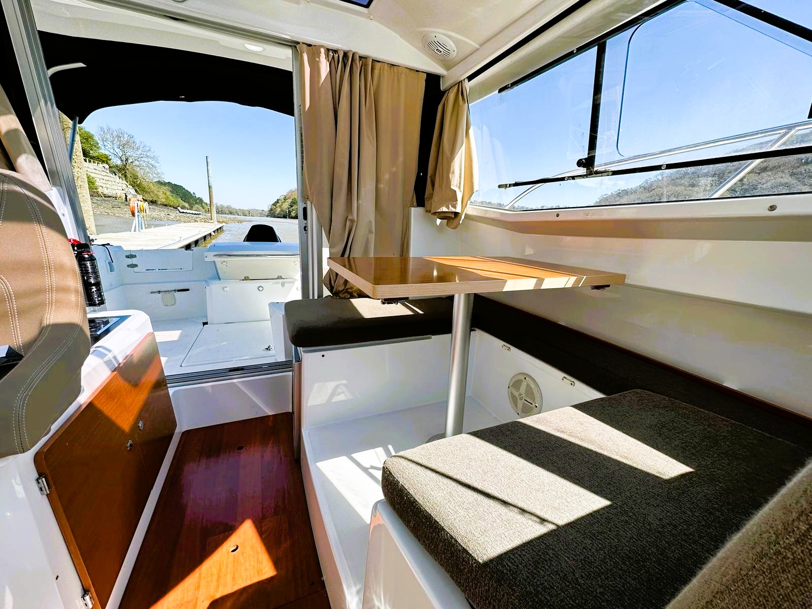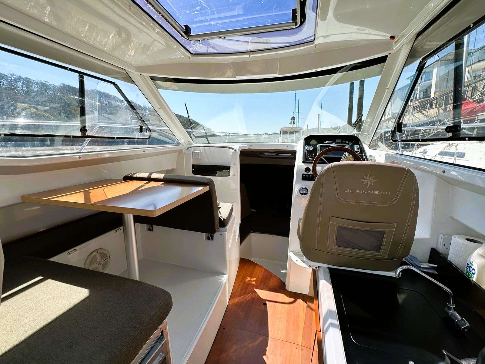 Spacious wheelhouse/cabin with table to port which converts to a double berth