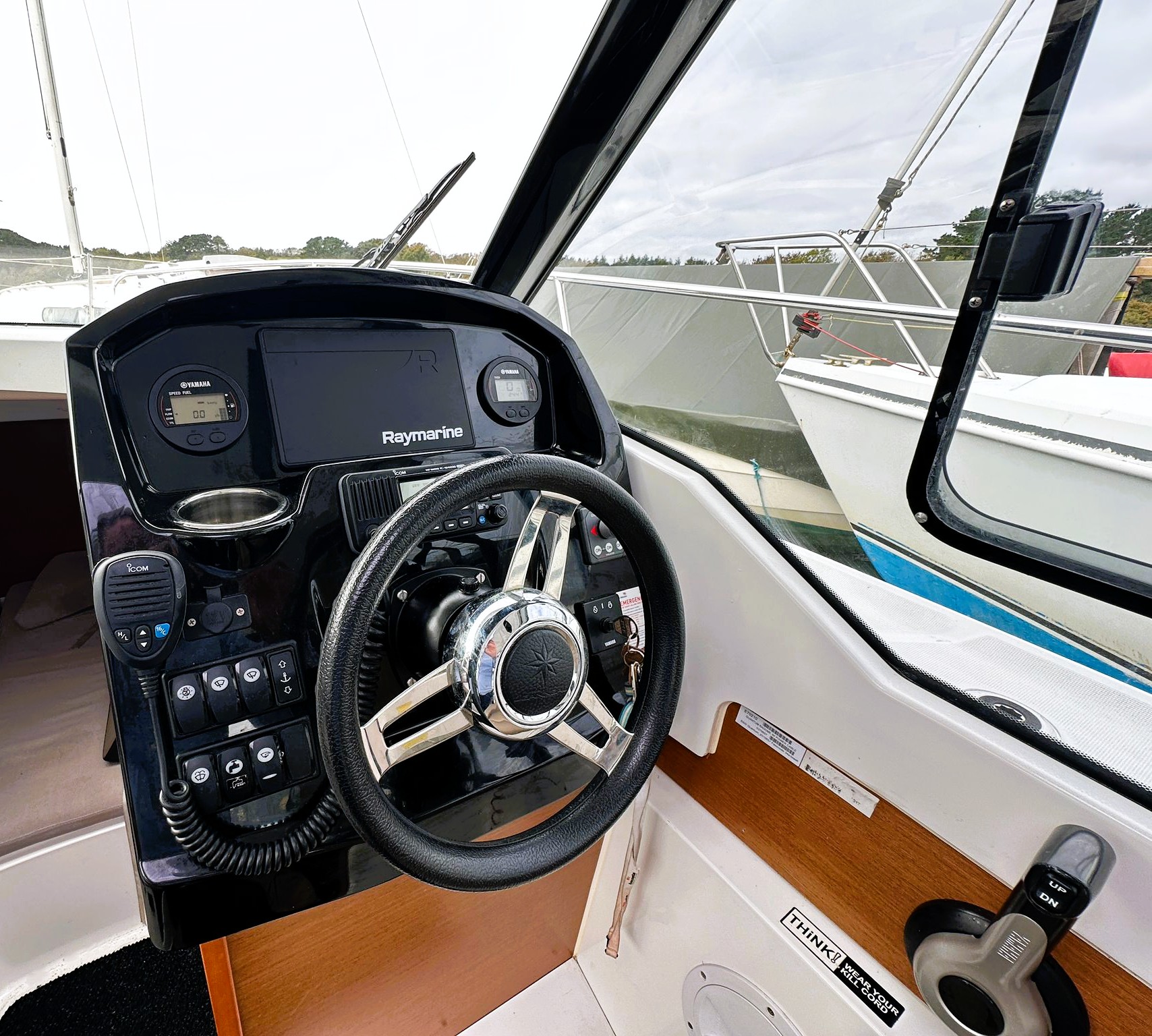 Powered by a reliable Yamaha 150hp outboard engine, she is fitted with a generous specification such a Bow thruster, electric anchor windlass, and shore power with battery charger, all adding to ease of handling and onboard comfort.