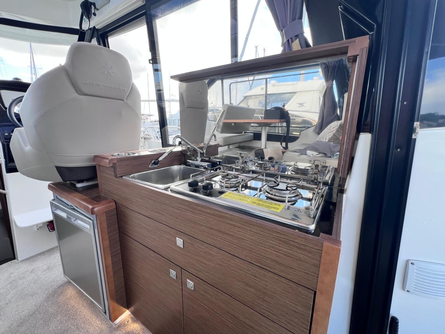 'U' shaped cockpit seating coverts to sunbed