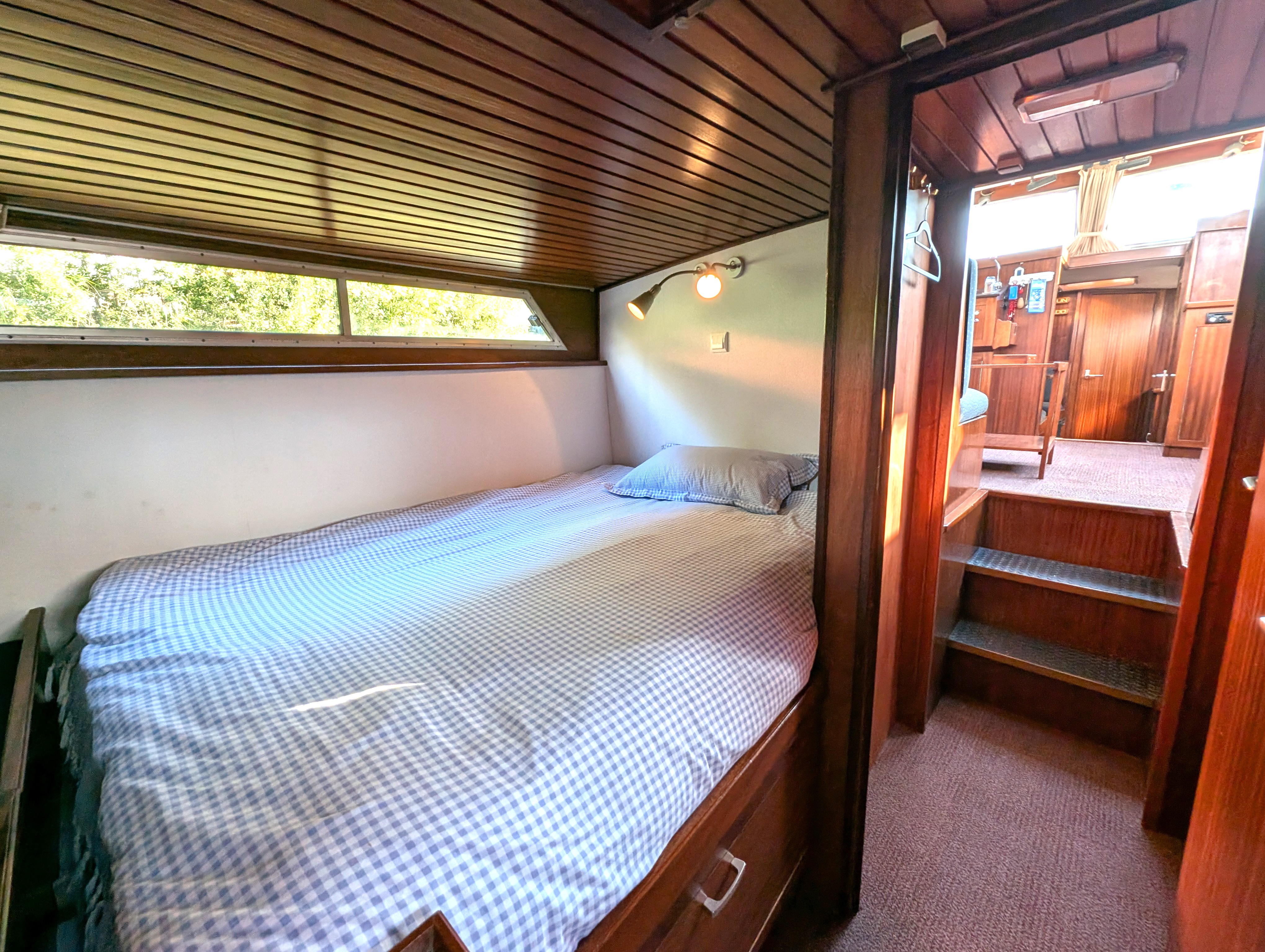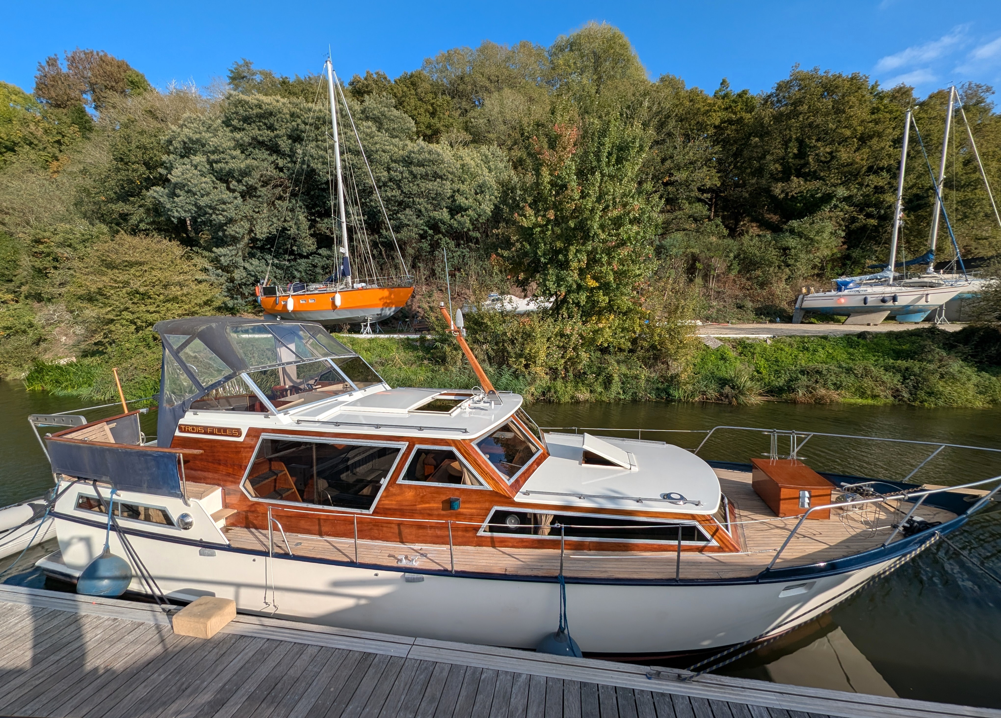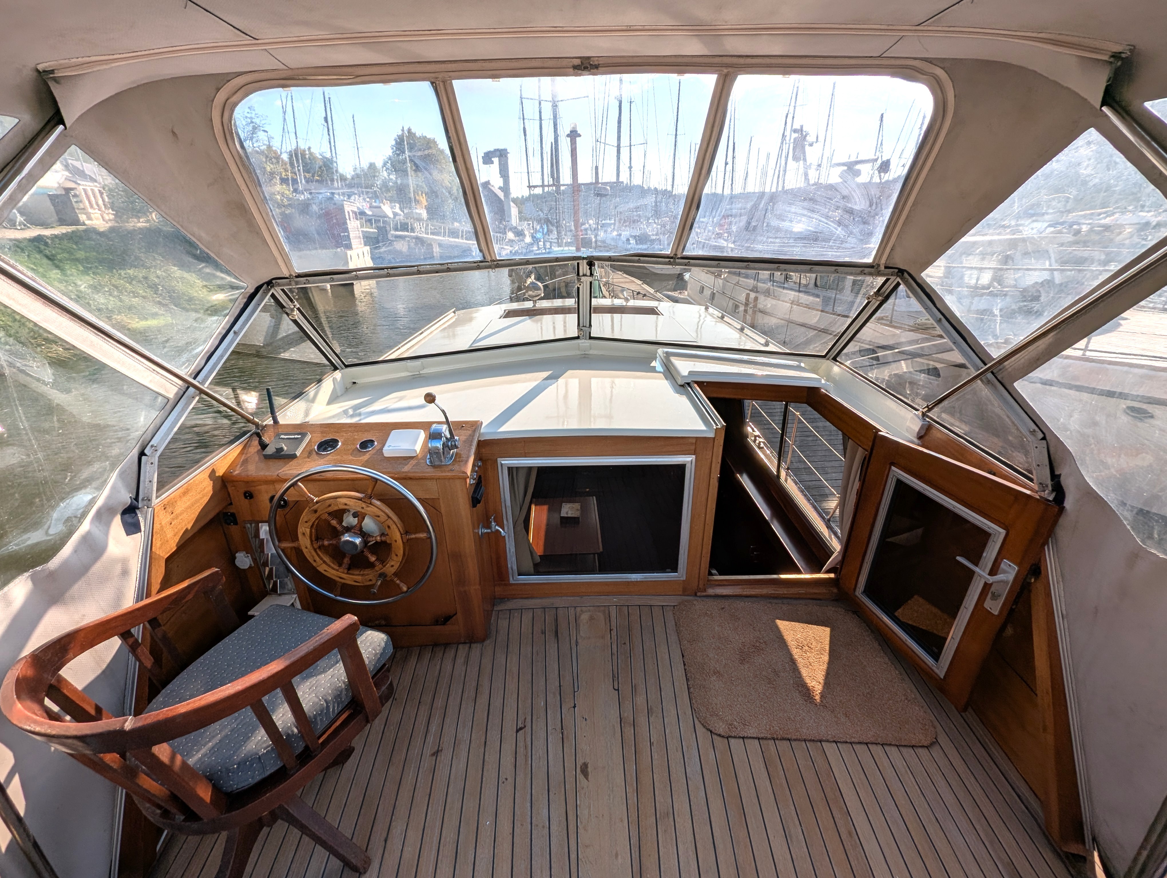 Built in 1978 by the renowned Lowland yard in Holland. Steel hard chine hull, teak deck and superstructure, aluminium window frames. Nicely finished teak interior, saloon, dinette (converts to double berth), 2 cabins including large owners cabin aft. 2 x steering positions. Bowthruster. Well maintained and perfect for the inland waterways and coastal cruising.