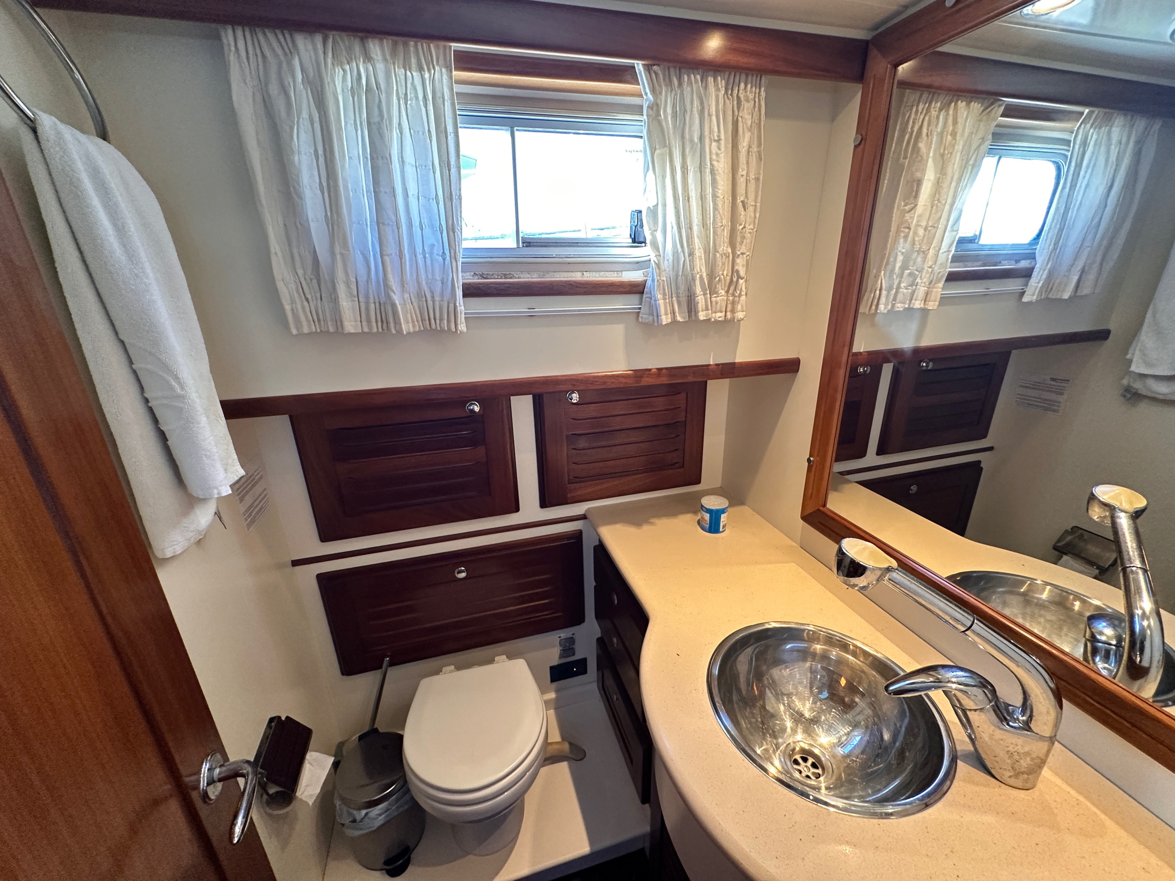 Zwei Volvo-Motoren mit je 260 PS, 2 Kabinen, 6 Kojen, Teak-Cockpit und Badeplattform, Sonnensegel.