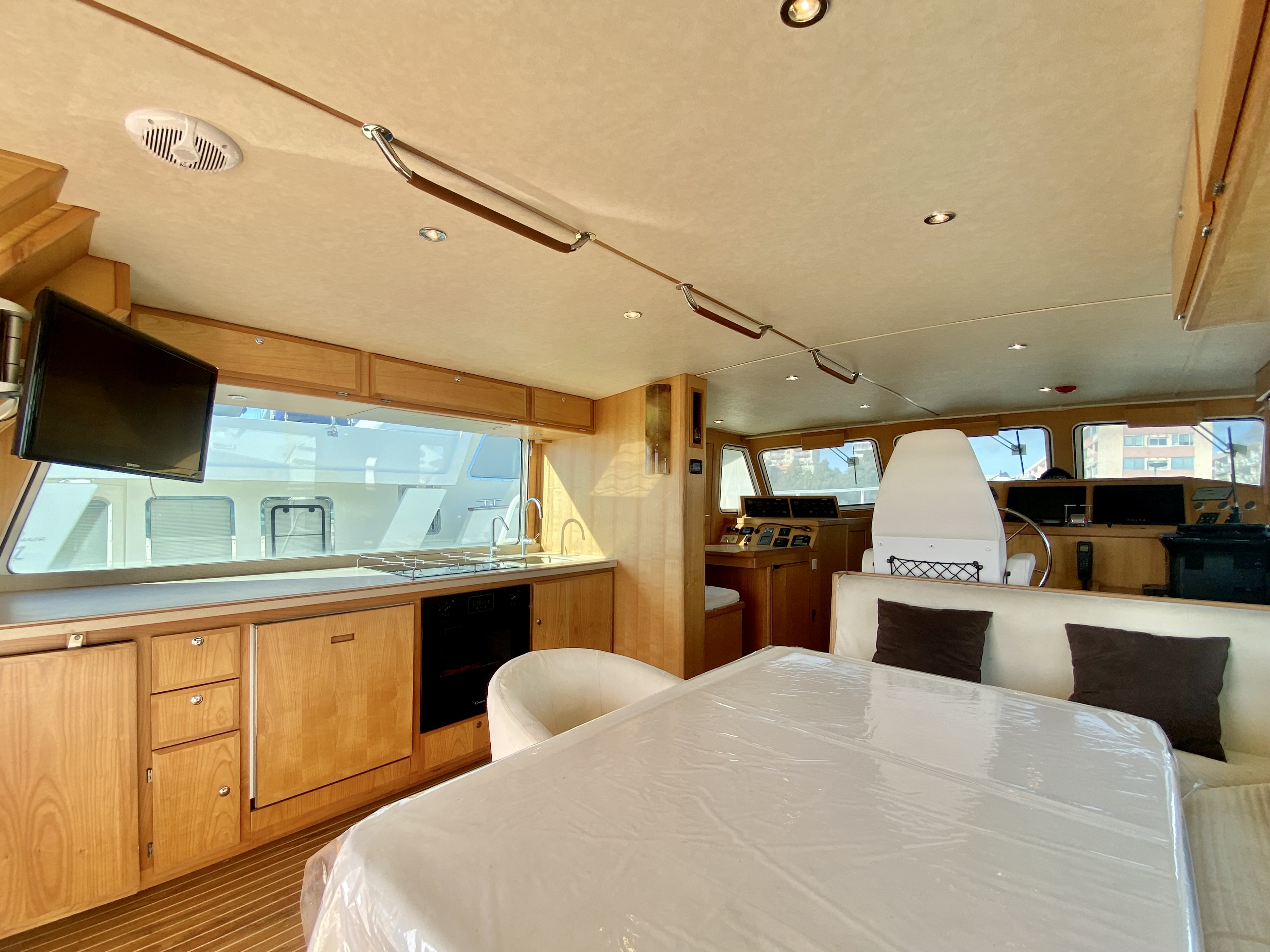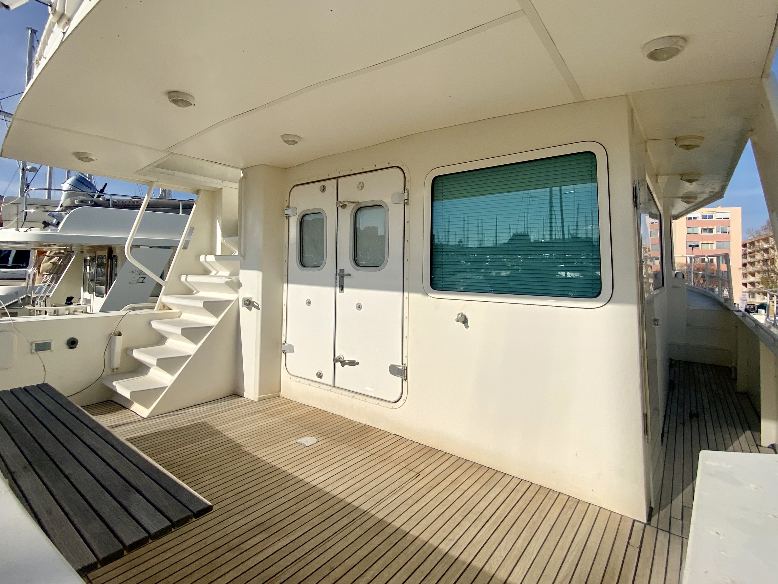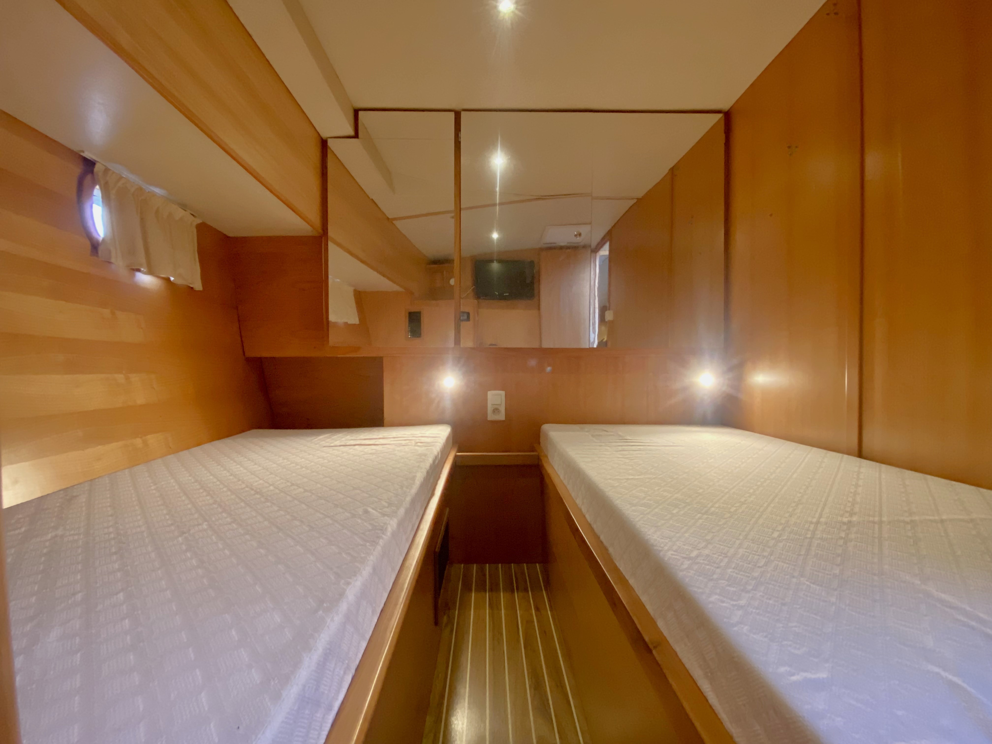 The trawler is powered by two DAEWOO 6-cylinder 8.1L engines (2x285hp) and a bow and stern thruster.