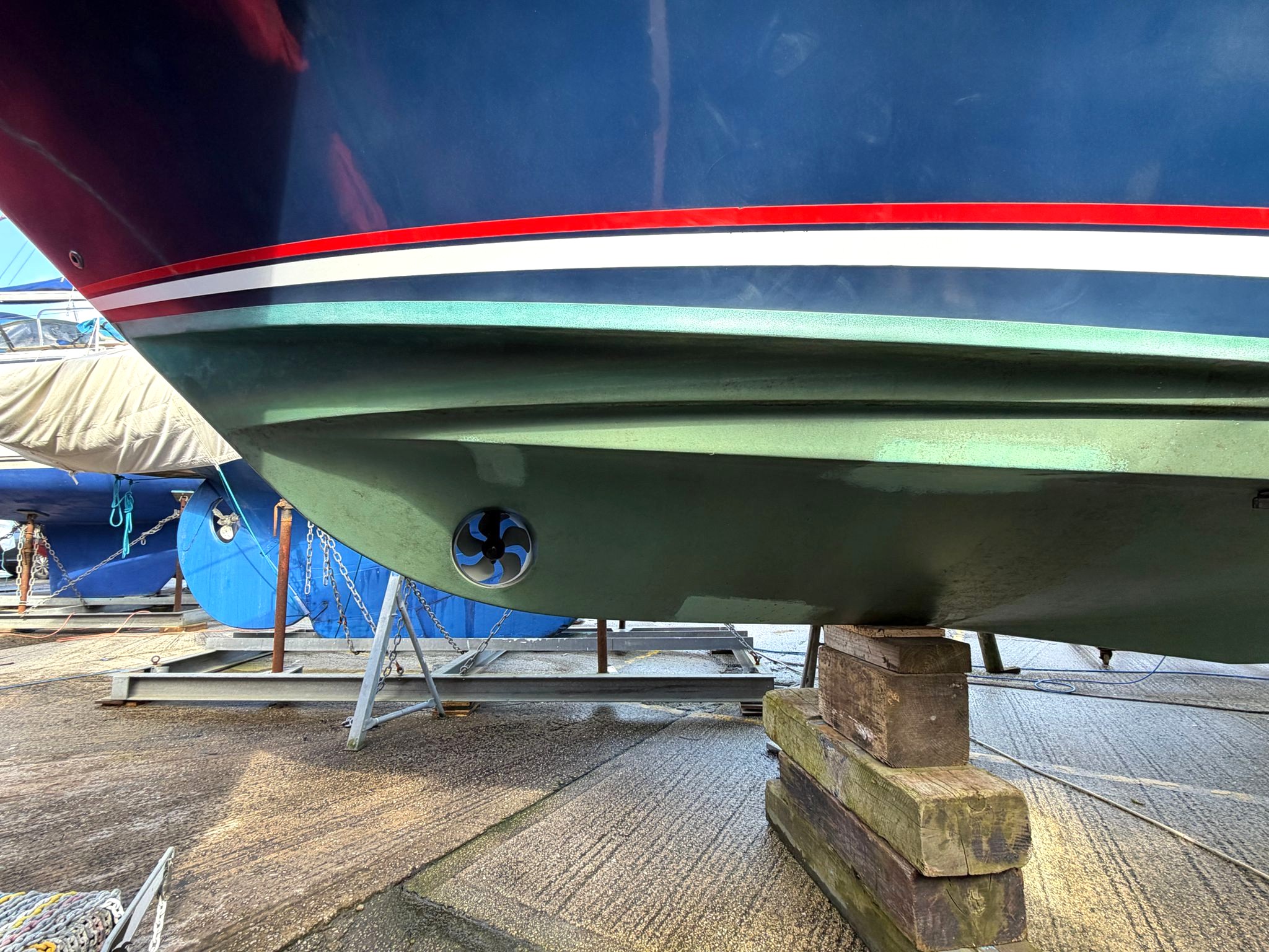 She comes with a wealth of desirable features: including Garmin chart plotter. Garmin GHV 10 autopilot. Gamin VHF DSC. Raymarine Bi-Data speed and depth. Holding tank. Battery charger. Lewmar electric windlass. Bow and Stern thruster. Heating. Hot and cold pressurised water. Hydraulic steering, Coppercoated