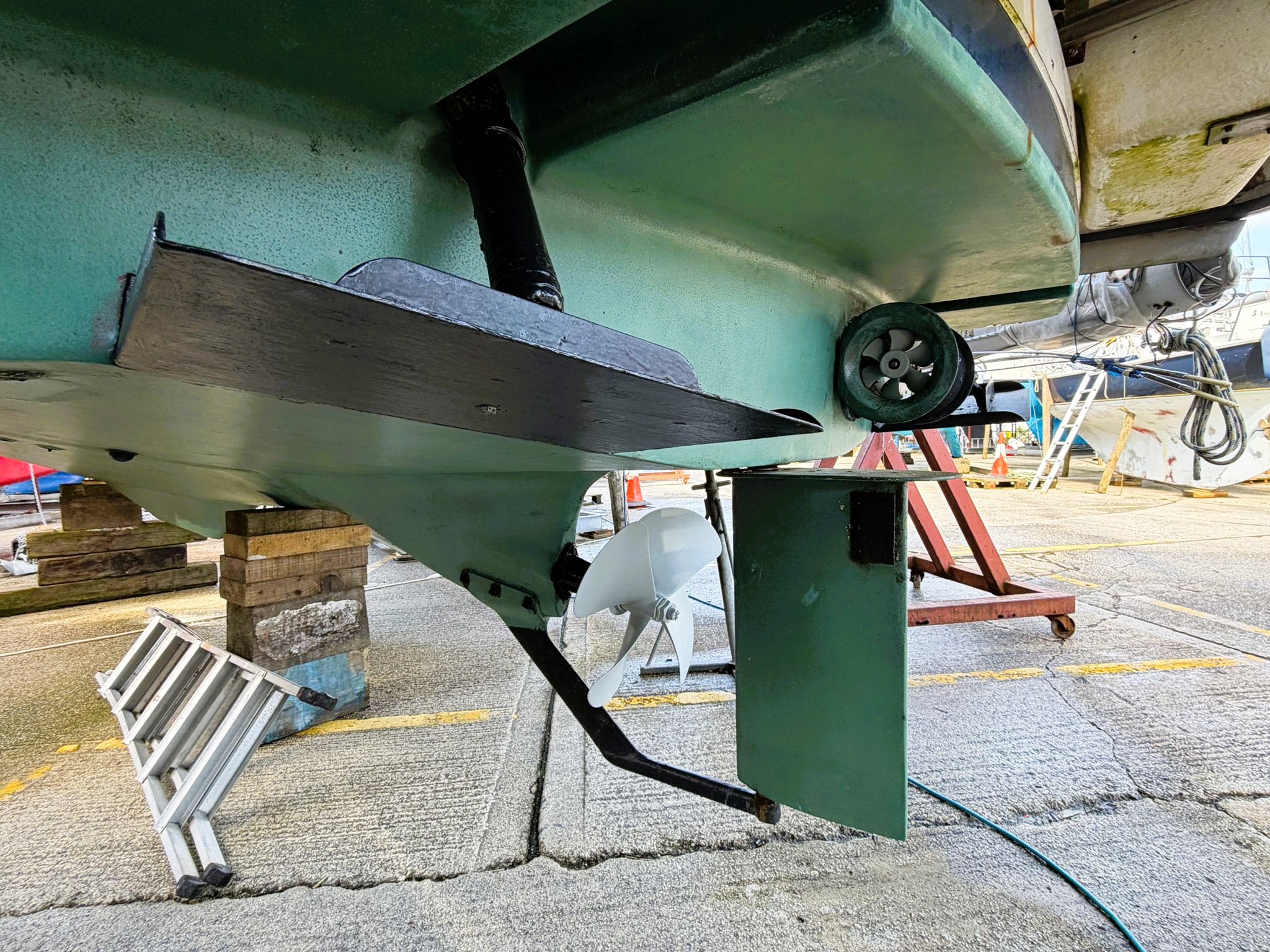 Skeg keel to protect the propeller.
