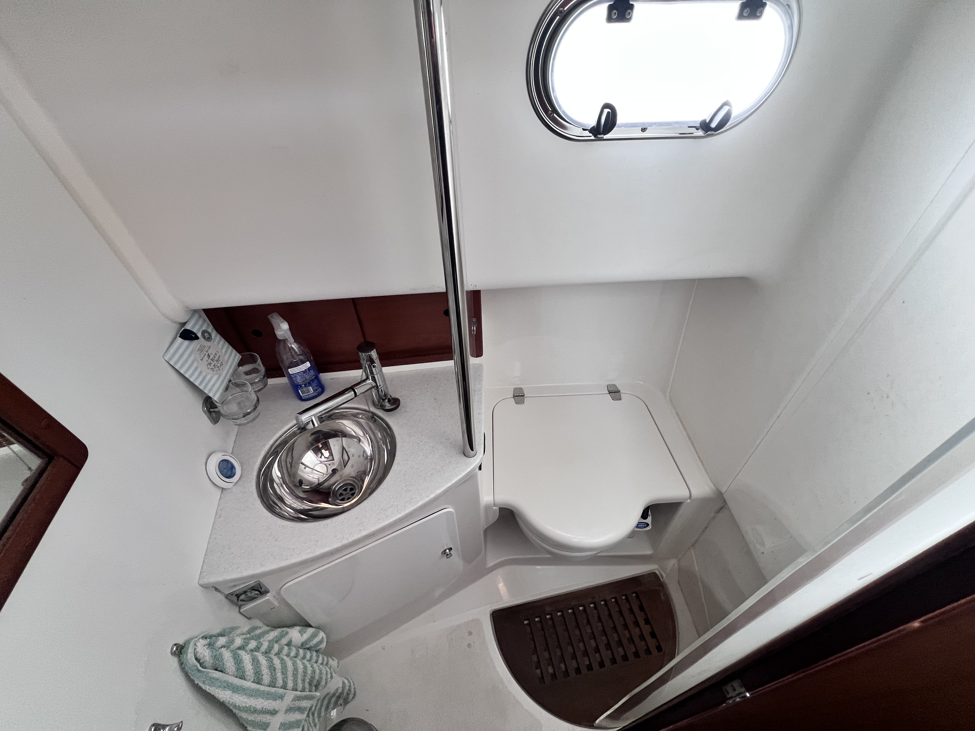 Heads with marine TOILET, hand basin, combination mixer tap/shower