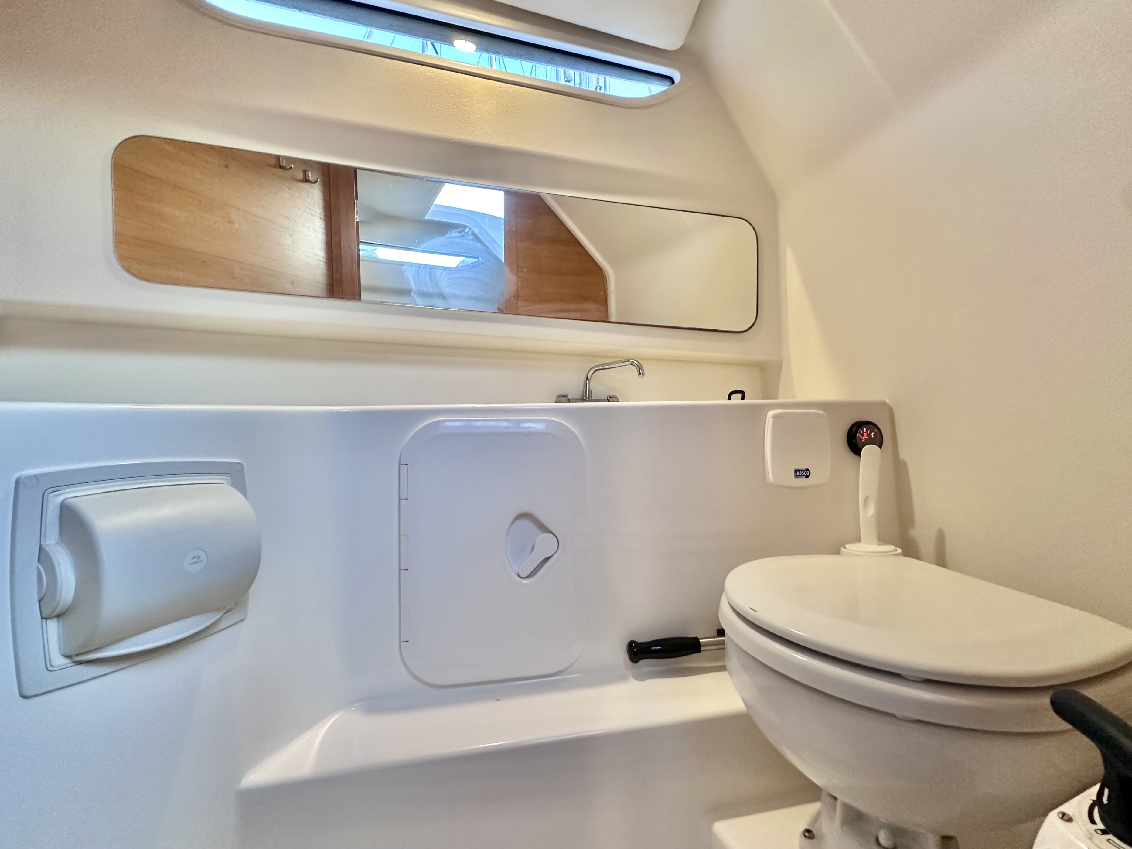 Starboard side day head with manual flush WC and freshwater sink