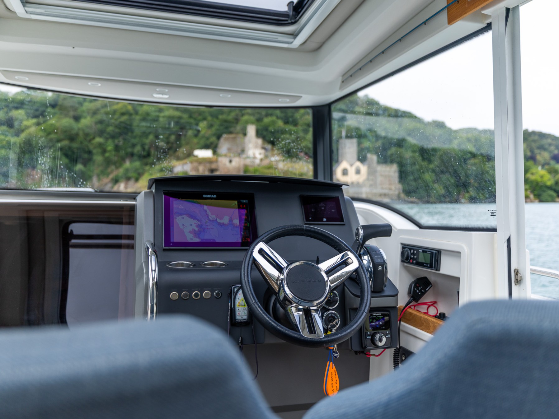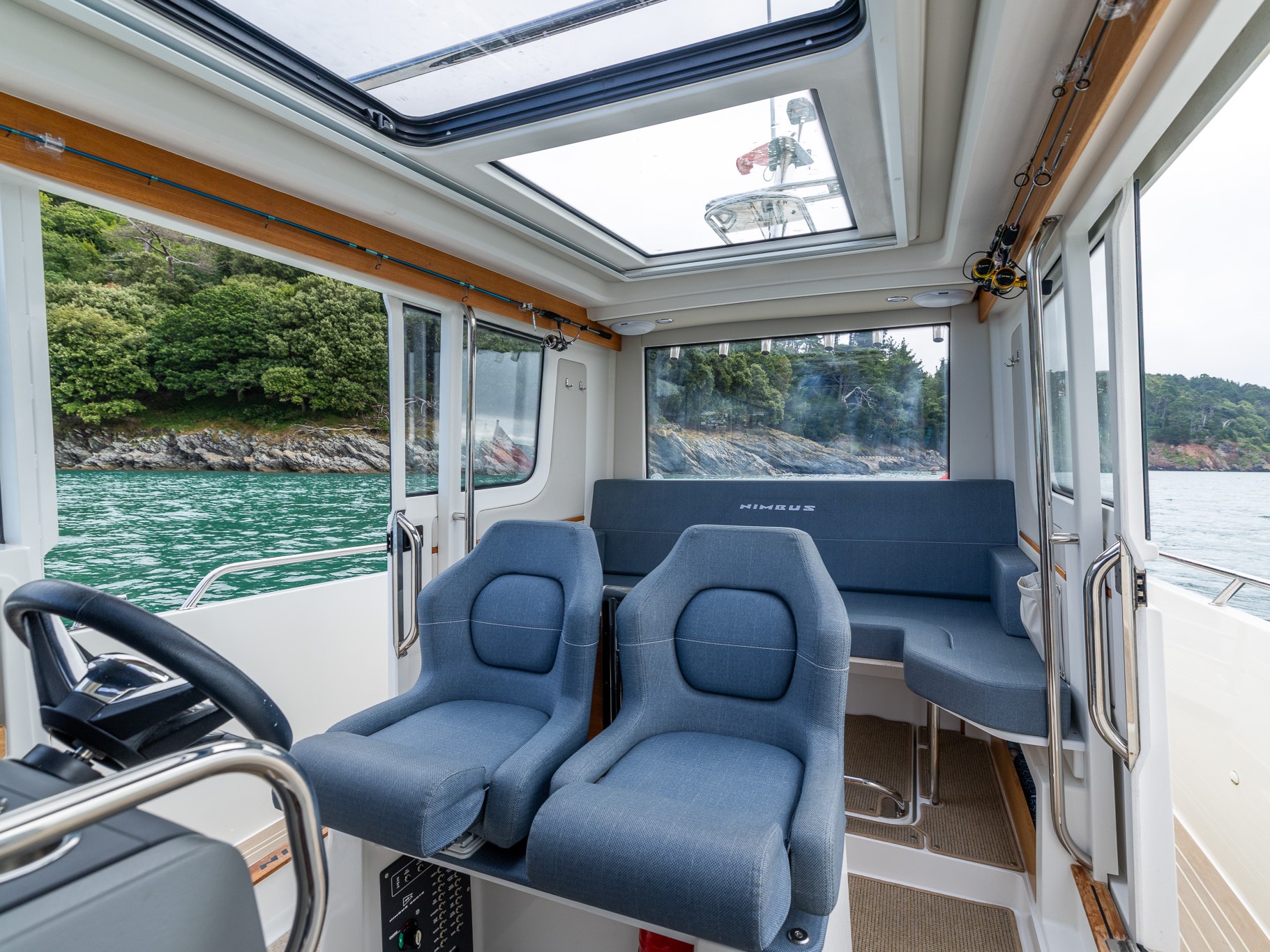 Wheelhouse with sliding doors on port and starboard side