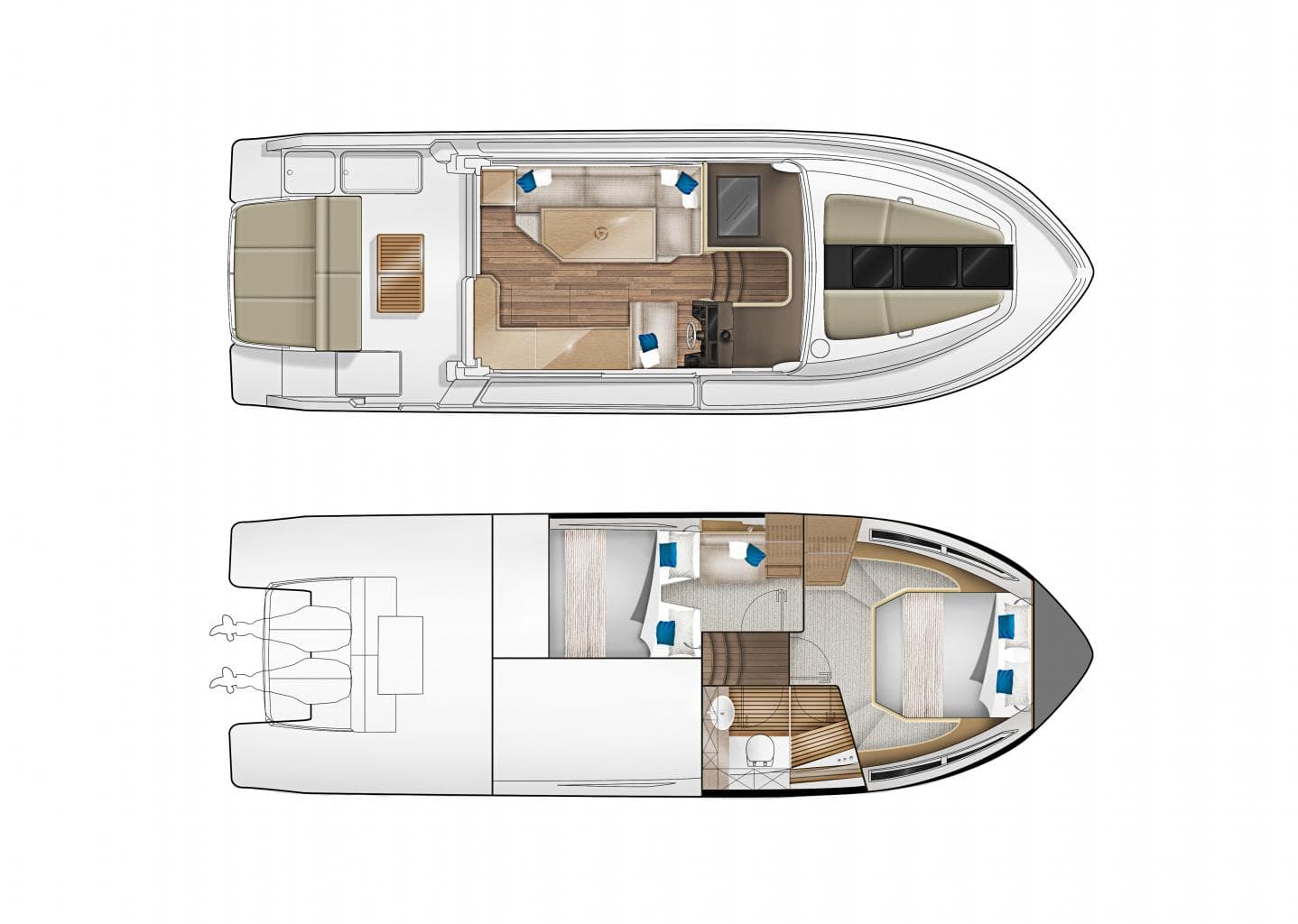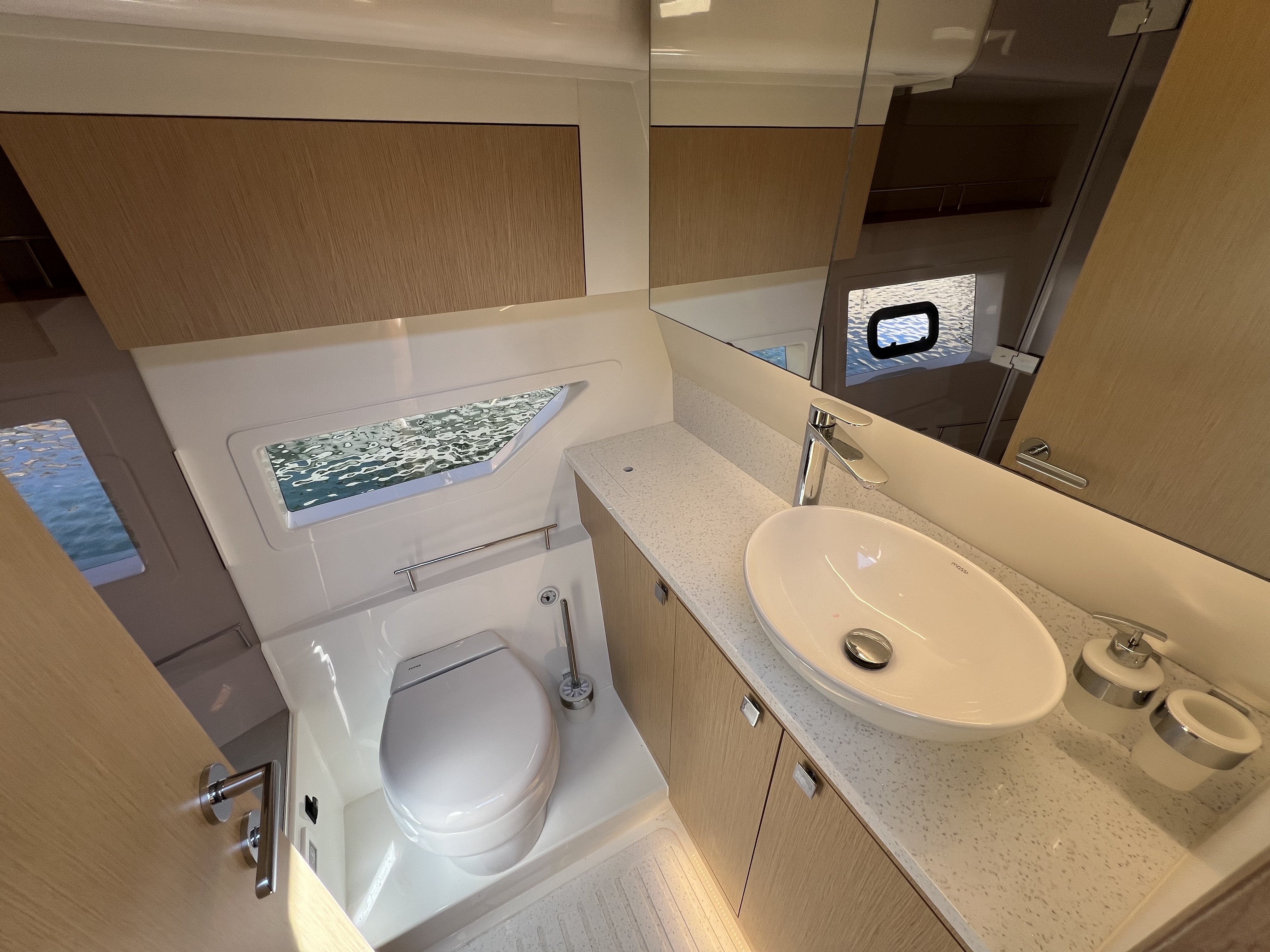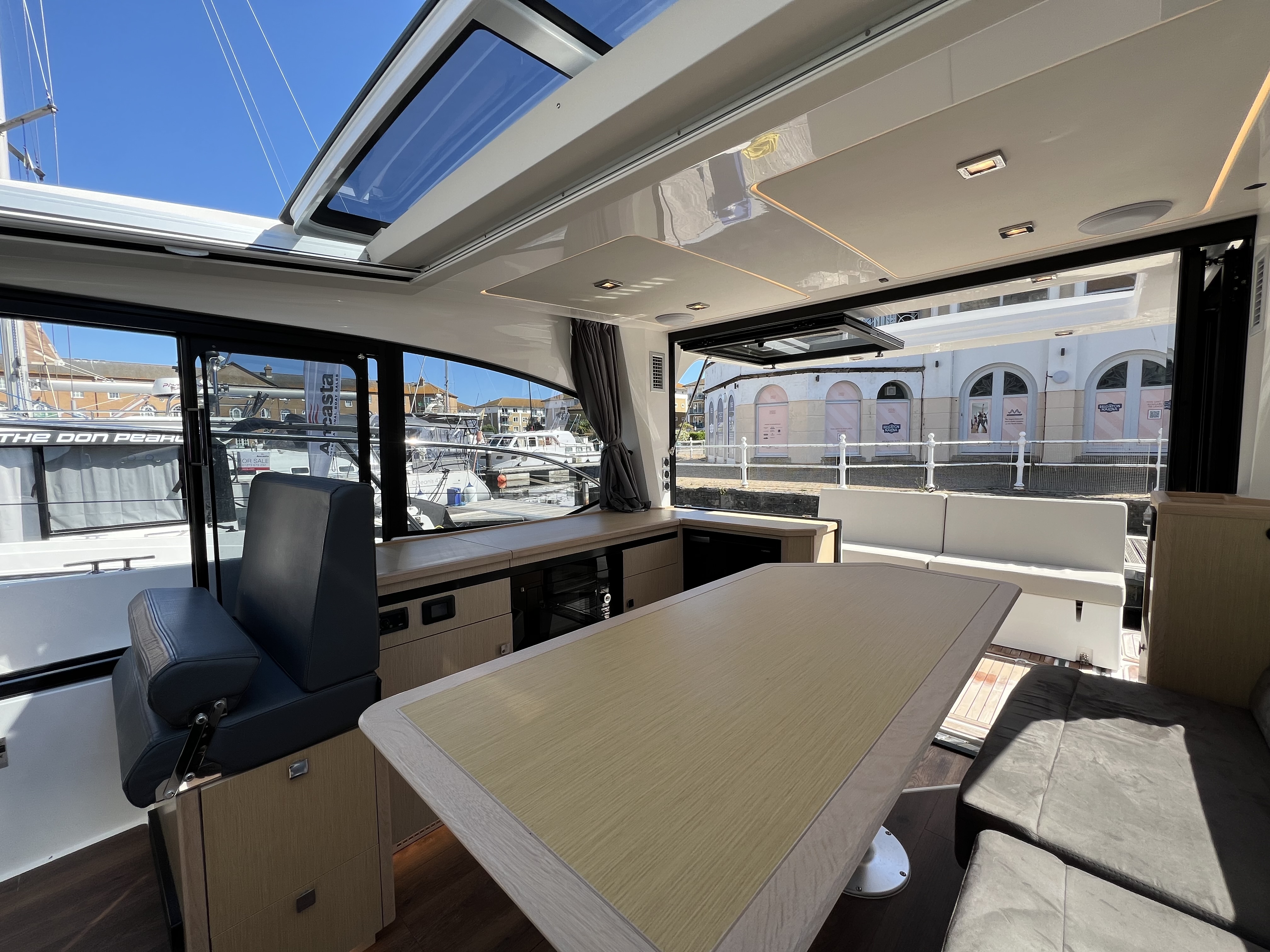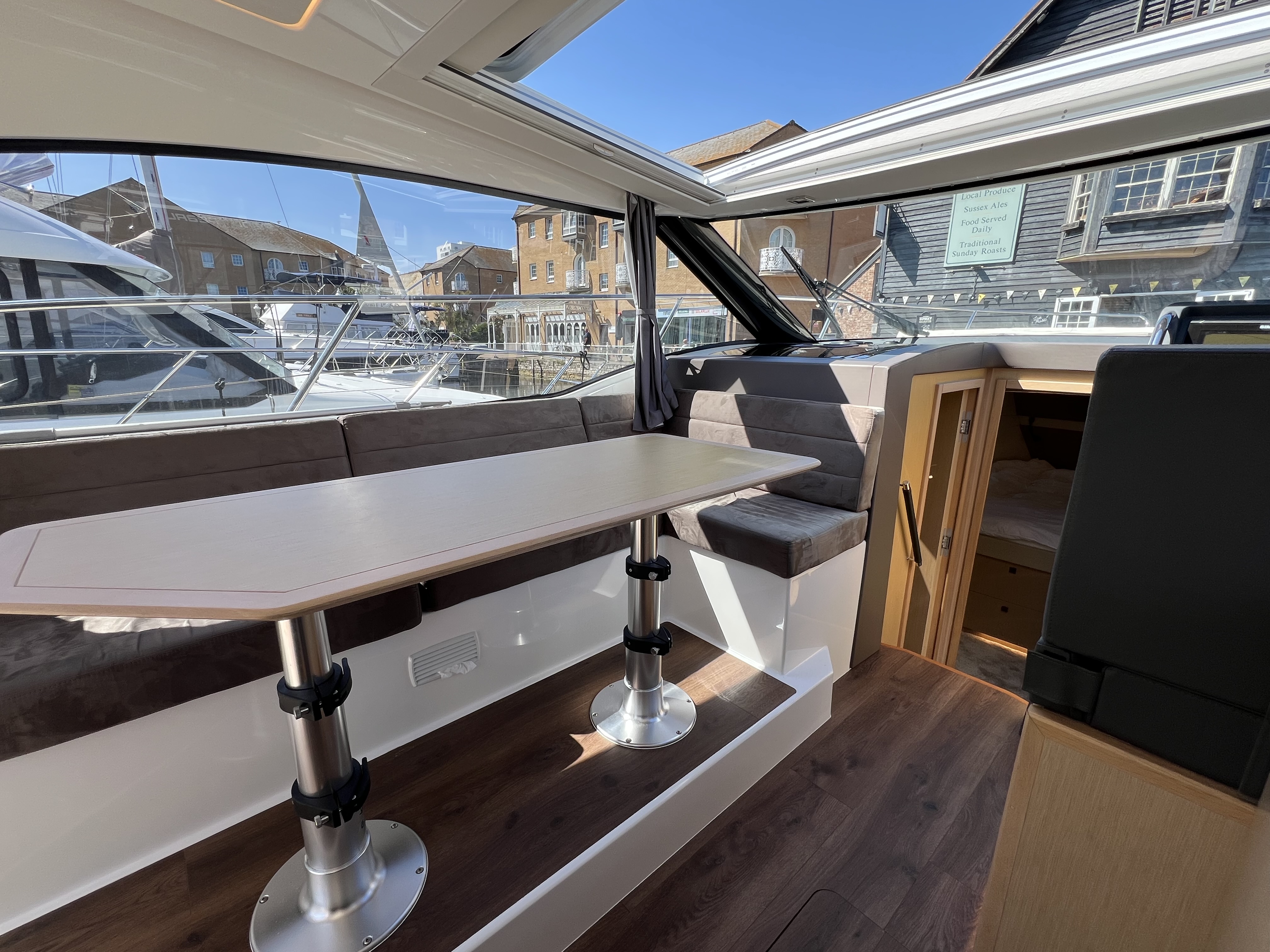 The interior offers an equivalent layout to any classic inboard boat and arguably better in many respects.