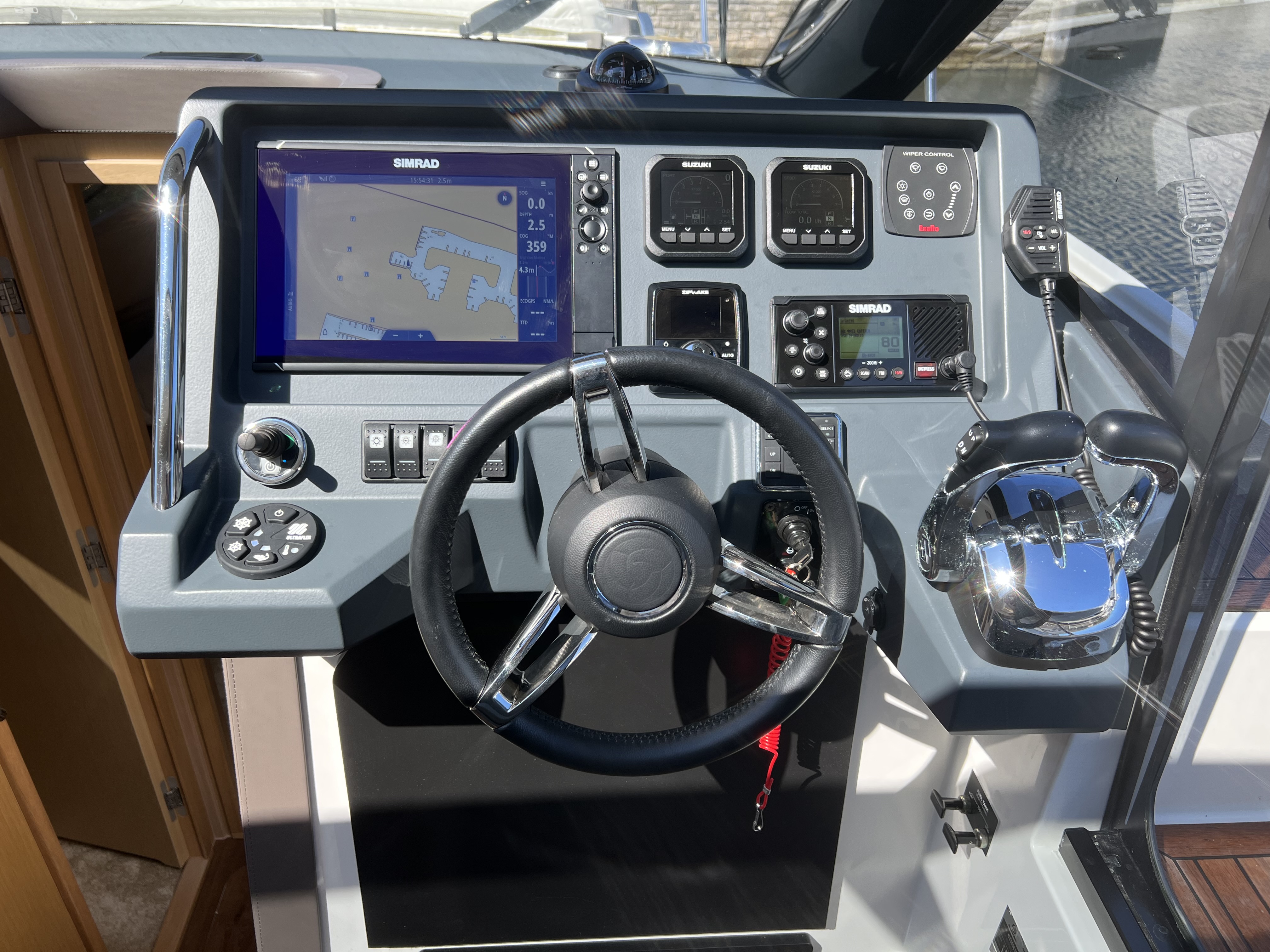 To starboard with a thoughtful, ergonomic layout of engine instrumentation, navigation and controls.