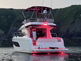 Lumishore colour changing lights in the cockpit, transom, bimini and underwater
