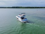 Available now for the 2024 season, this lightly used Prestige 420 features the larger Cummins 425HP engines on shafts with joystick control.