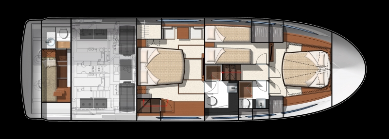 The well equipped galley is found aft with direct access to the large cockpit.