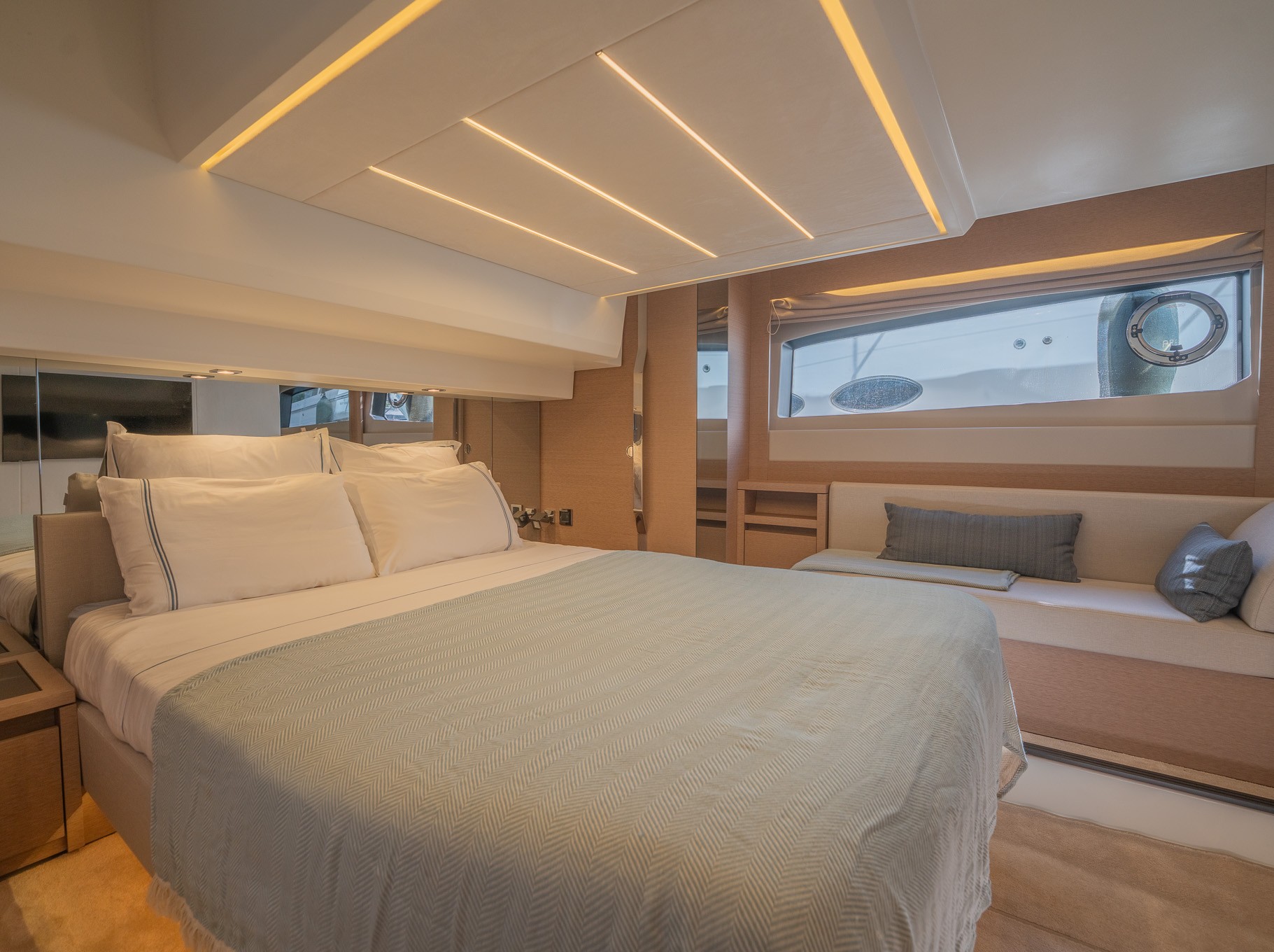 Arguably the most popular model to be built at the Prestige yard, the 520 draws on the success of her predecessor the 500. Offering separate access to a very spacious full beam master cabin plus two guest cabins forward, the 520 also benefits from class leading interior & exterior entertaining spaces .