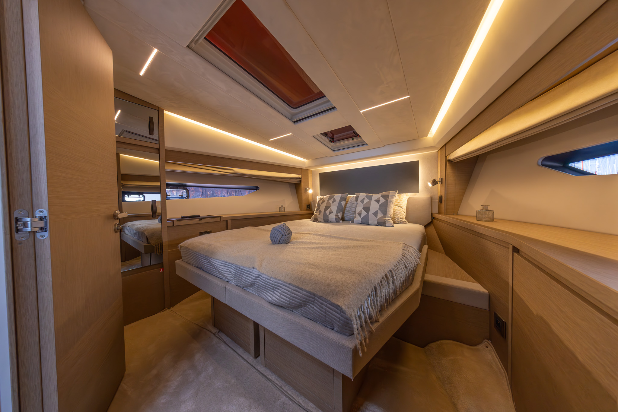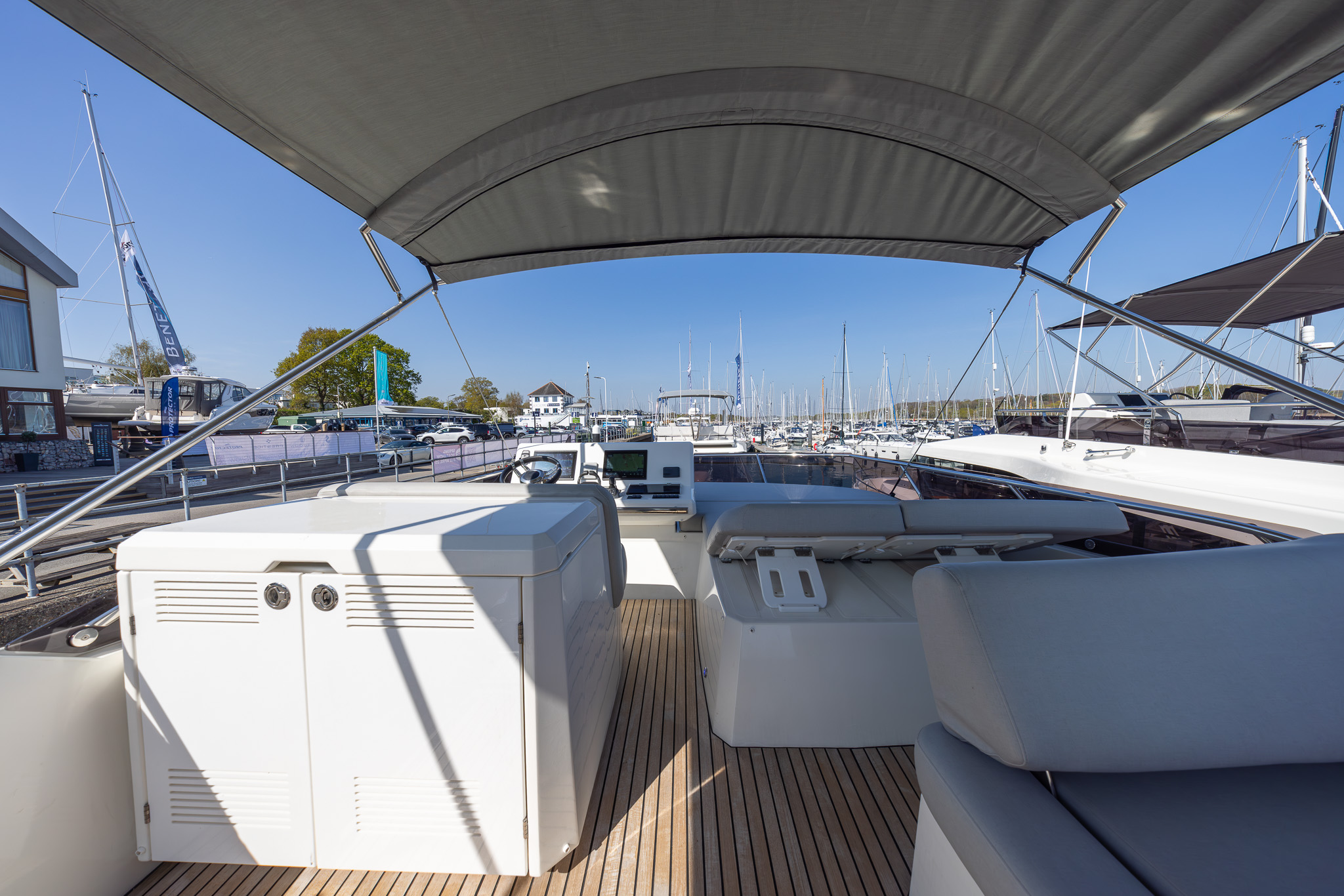 Arguably the most popular model to be built at the Prestige yard, the 520 draws on the success of her predecessor the 500. Offering separate access to a very spacious full beam master cabin plus two guest cabins forward, the 520 also benefits from class leading interior & exterior entertaining spaces .
