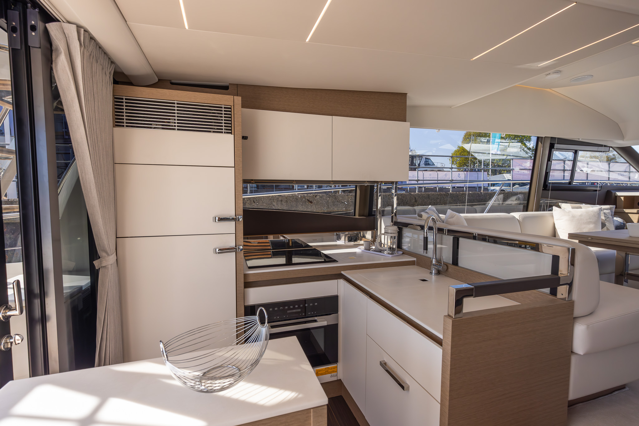 The Prestige 520 offers multiple living areas for relaxing in pure comfort, a fabulous flybridge unrivalled in her class and when pairing this with her Volvo IPS engines, make the Prestige 520 unbeatable. The Prestige 520 offers a lot for its size and the true Prestige DNA can be felt throughout. A palatial saloon, luxurious comfort is plentiful throughout the interior, with large windows creating panoramic views and a bright and airy saloon offering great vistas of the ocean beyond. Furthermore, the facing sofas with modular pivoting cockpit bench seat, create a fantastic space for entertaining onboard.