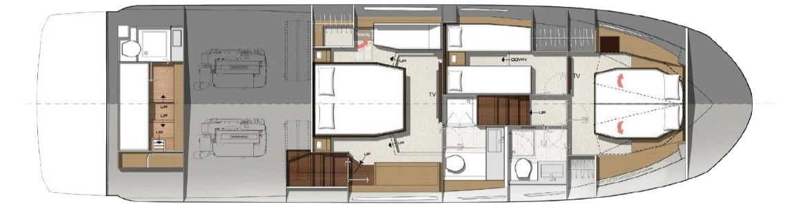 Arguably the most popular model to be built at the Prestige yard, the 520 draws on the success of her predecessor the 500. Offering separate access to a very spacious full beam master cabin plus two guest cabins forward, the 520 also benefits from class leading interior & exterior entertaining spaces.