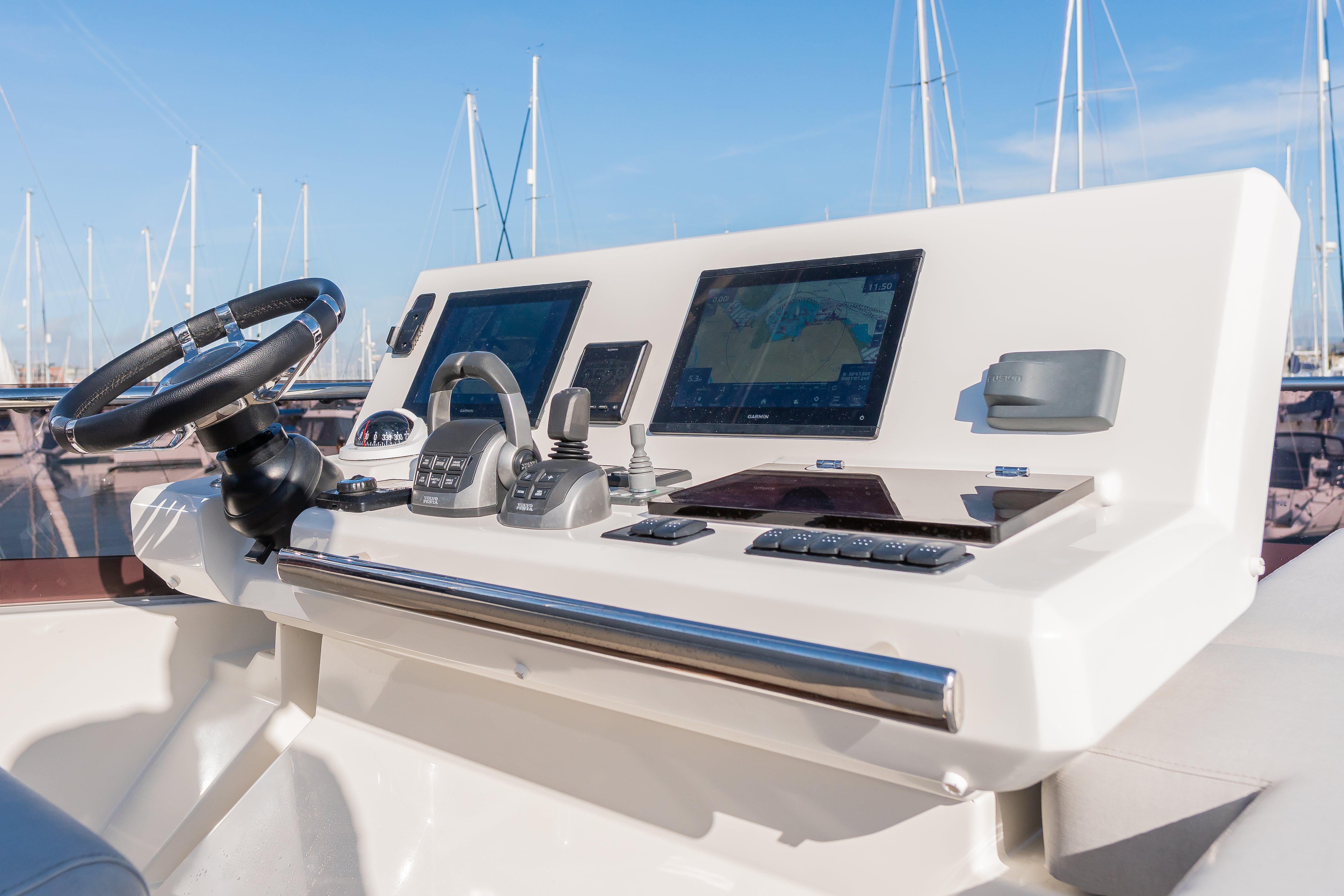 Fitted with the upgraded twin Volvo Penta IPS650 480hp engines on pod drives, she is a joy to handle, both at close quarters and underway..