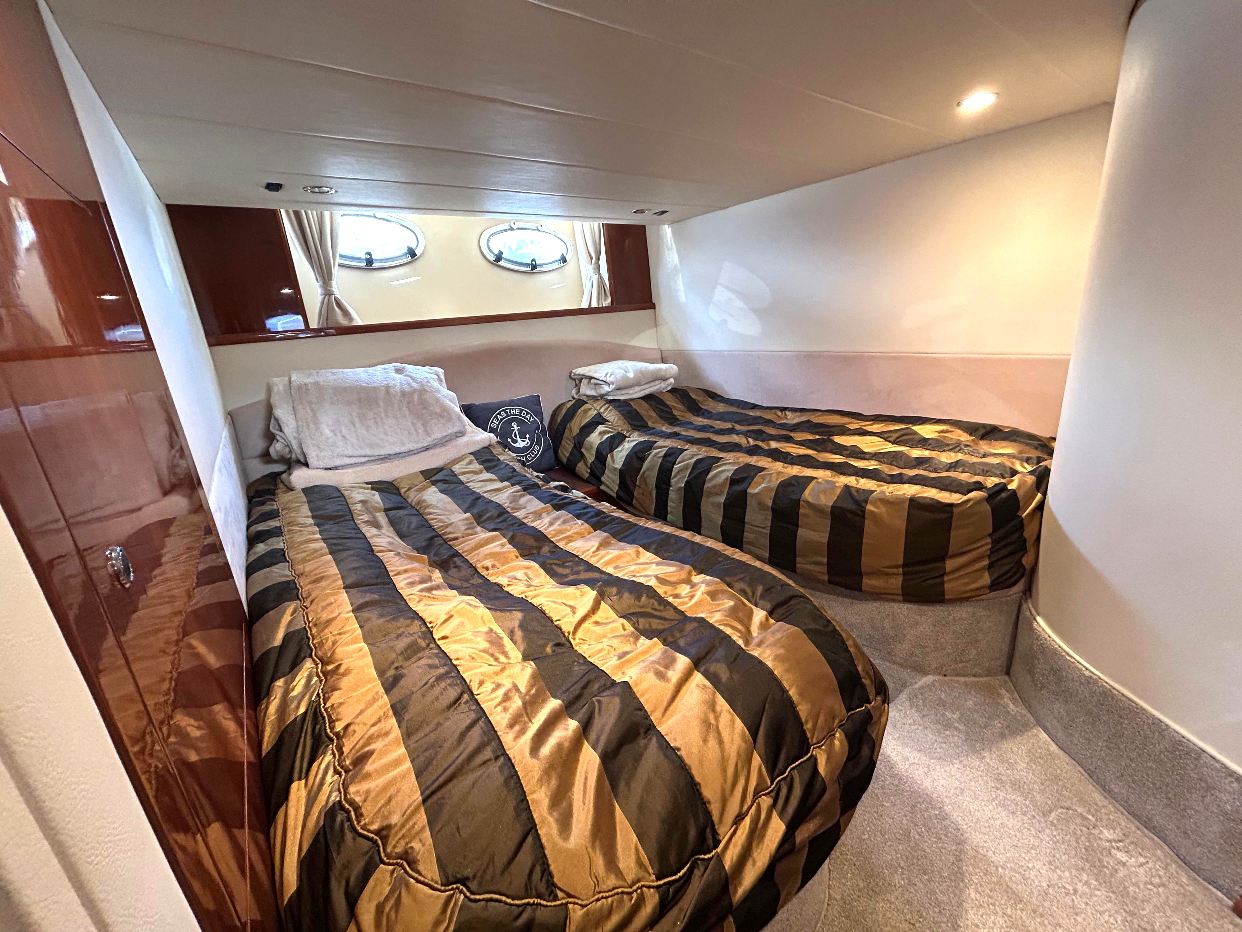 Aft guest cabin comprises of two large single berths with en-suite WC and shower.