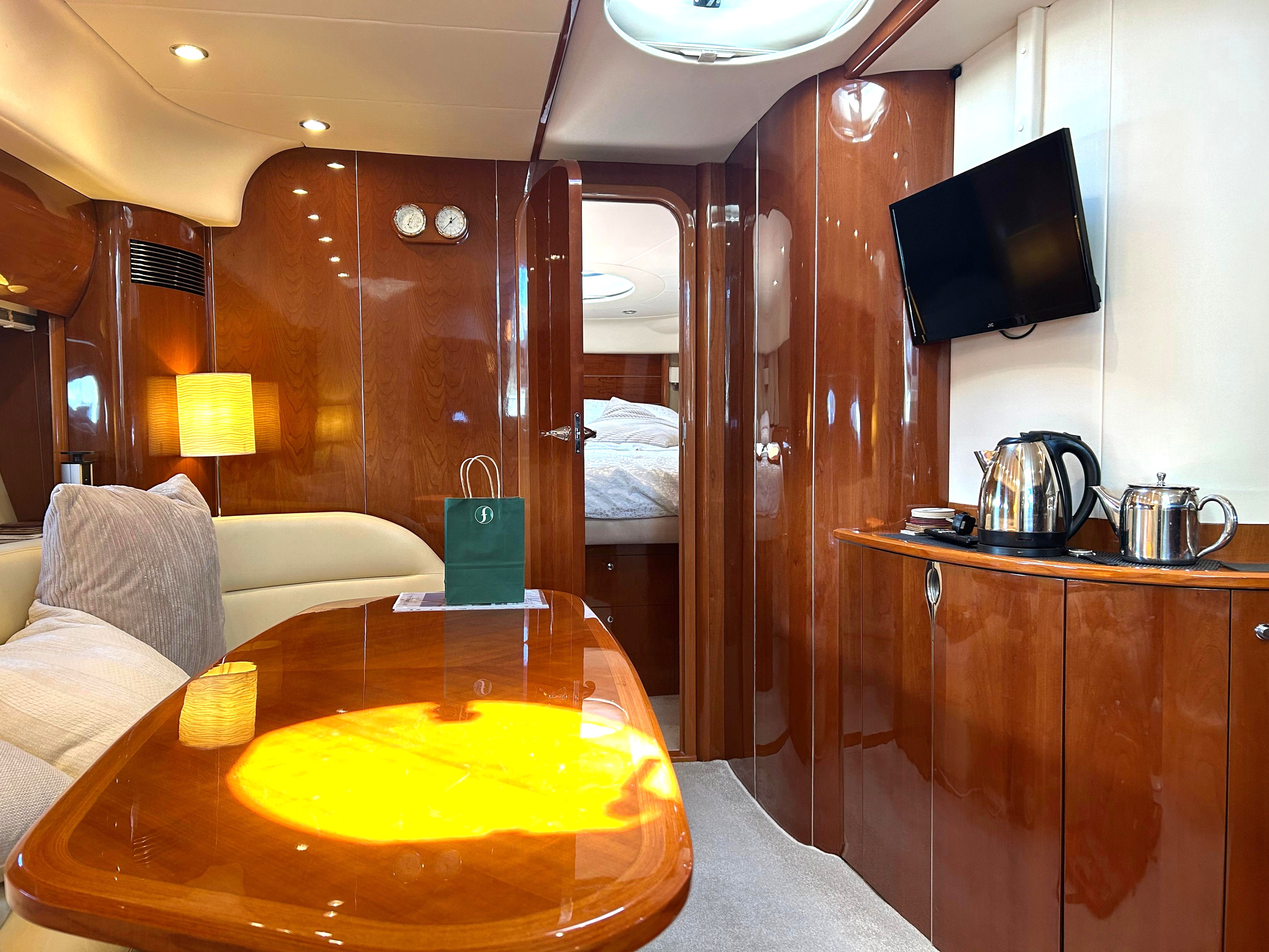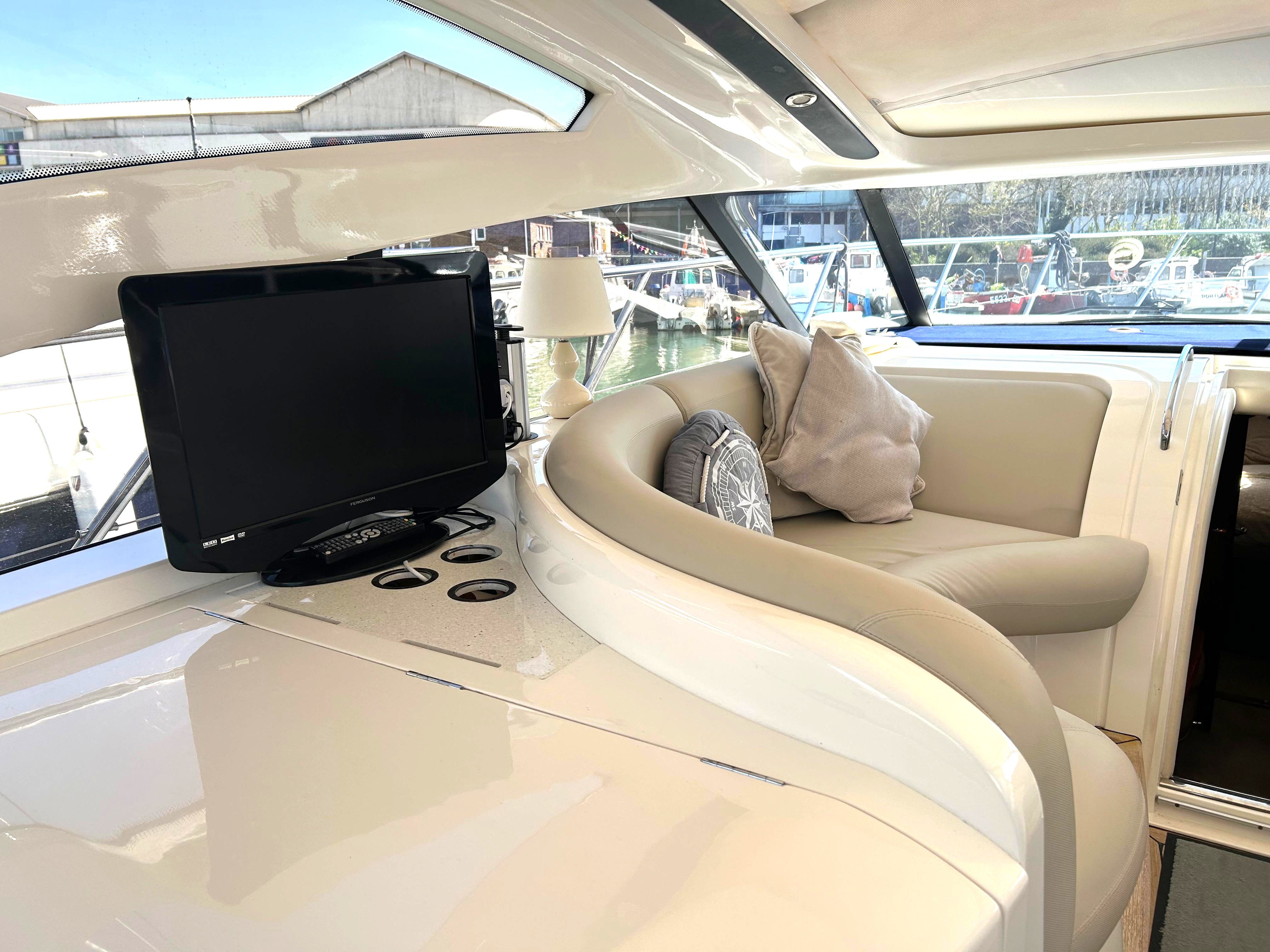 An opportunity to acquire a well-presented example of one of the most favoured and popular sports cruiser models from the Princess stable. Finished in an all-white exterior gelcoat and deep Cherry Gloss wood interior (beautiful condition!) giving her a sense of luxury and comfort both inside and out.