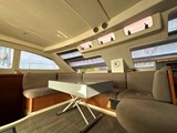 The galley to starboard is very well equipped and practical and comes with an FORCE 10 three-burner stainless stell stove with grill, double fridge below the electrical panel, microwave oven ESSENTIEL B, twin stainless steel sinks with mixer tape and plenty of work surfaces.