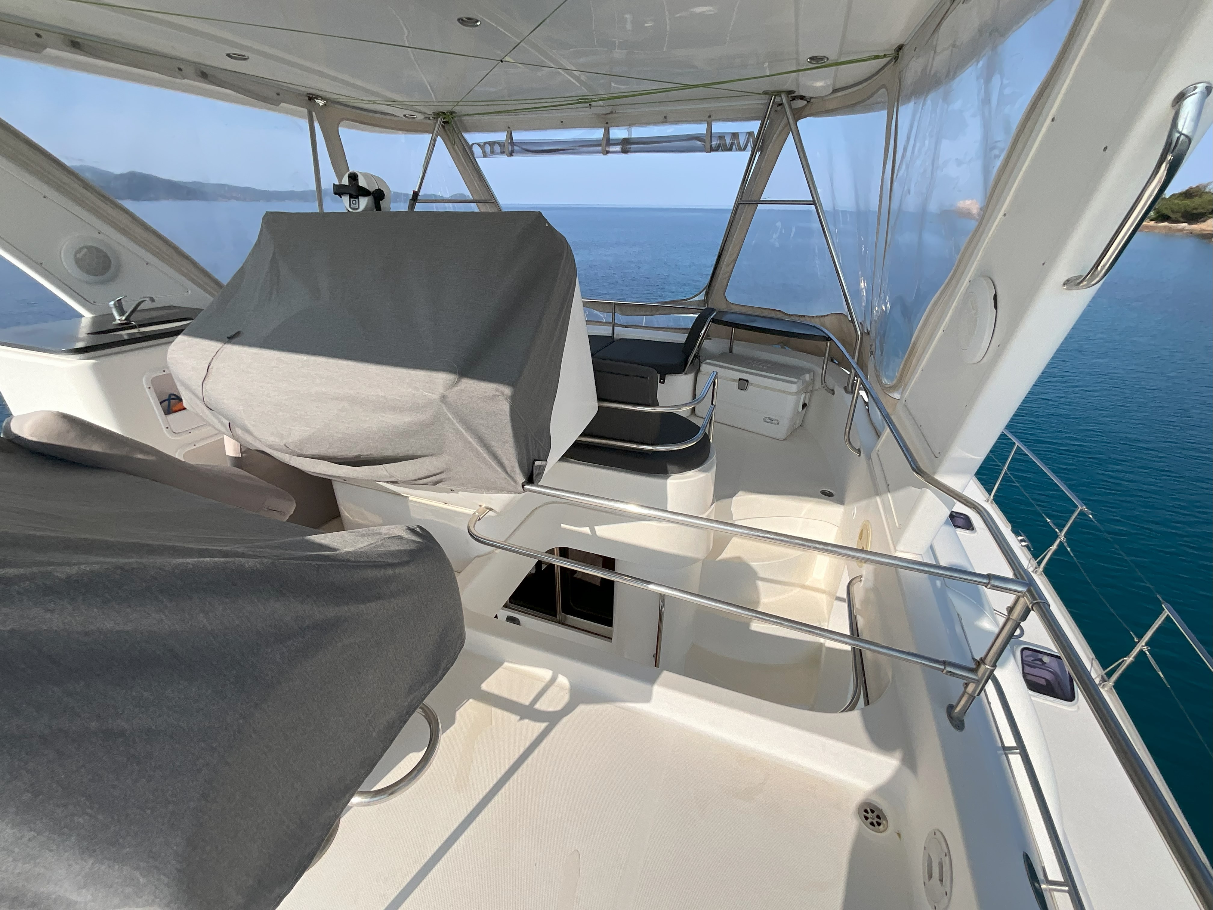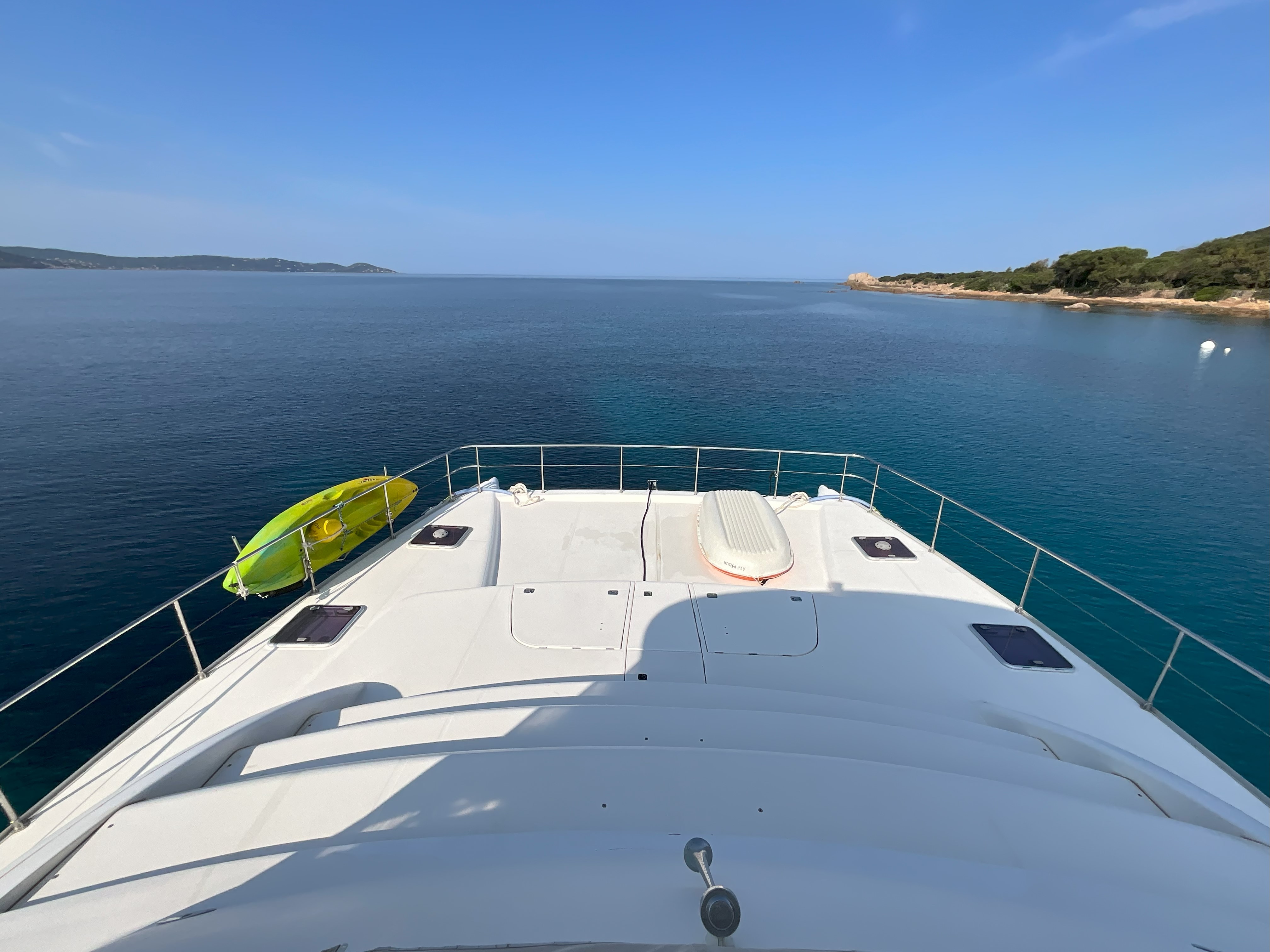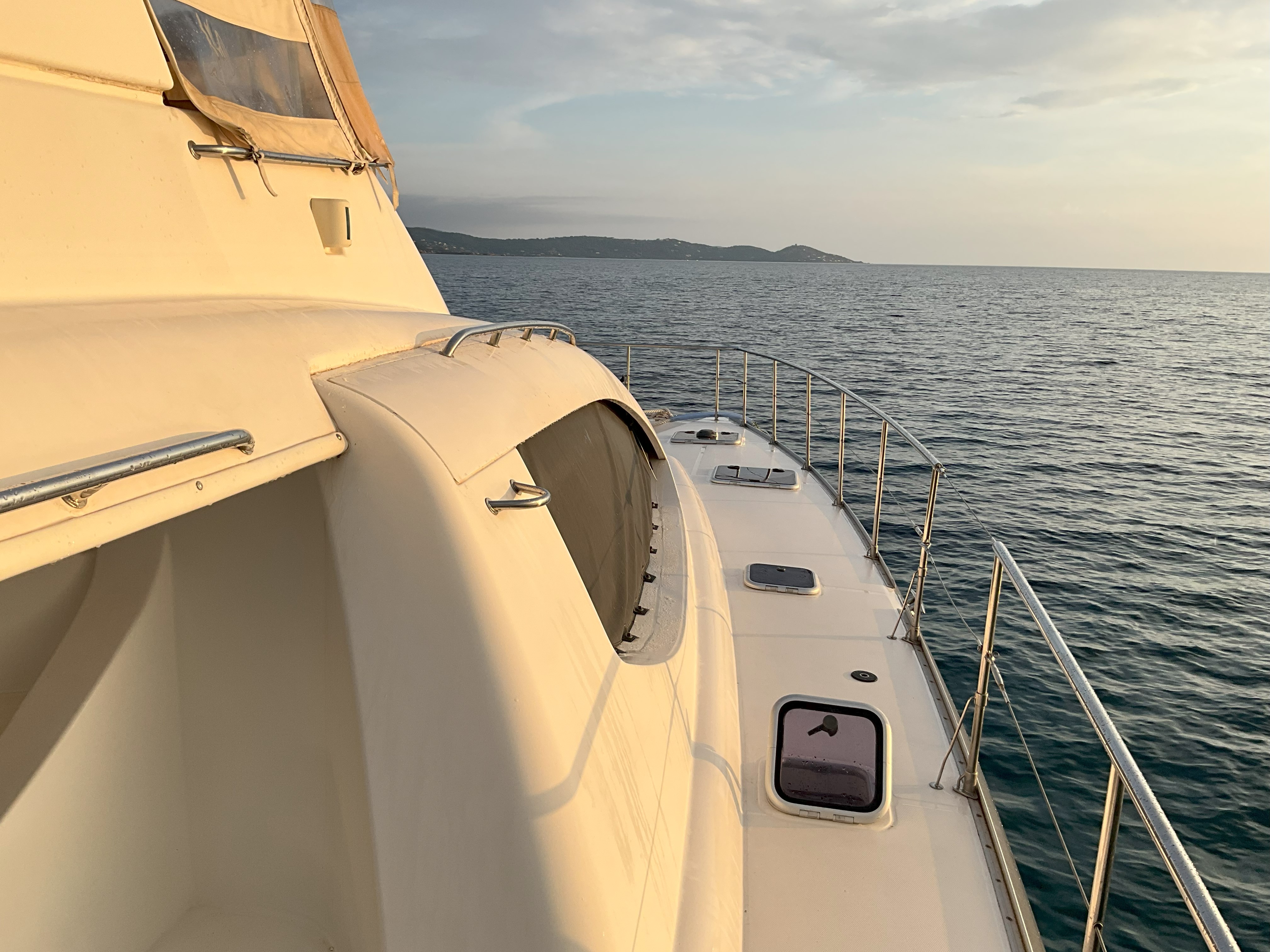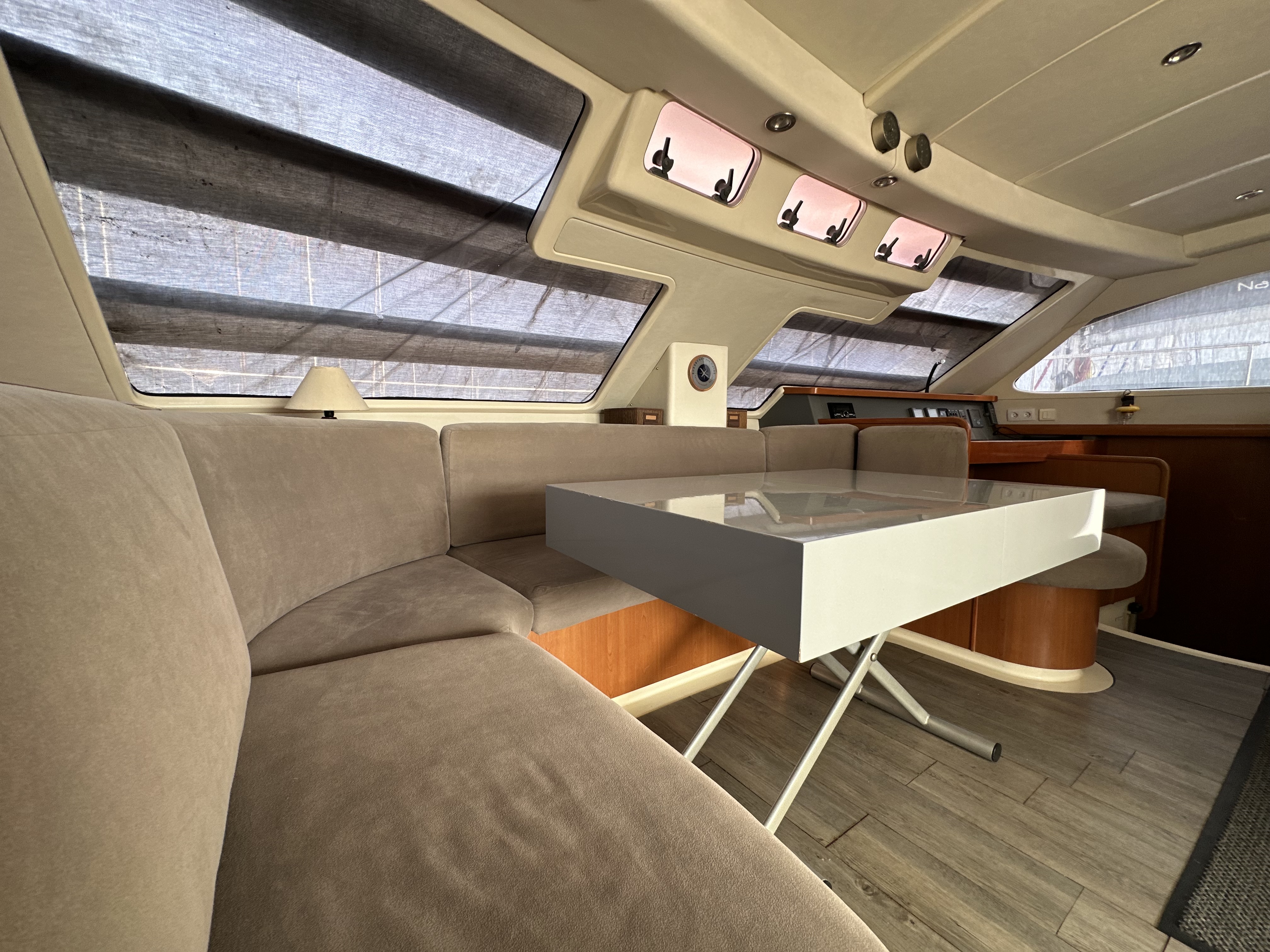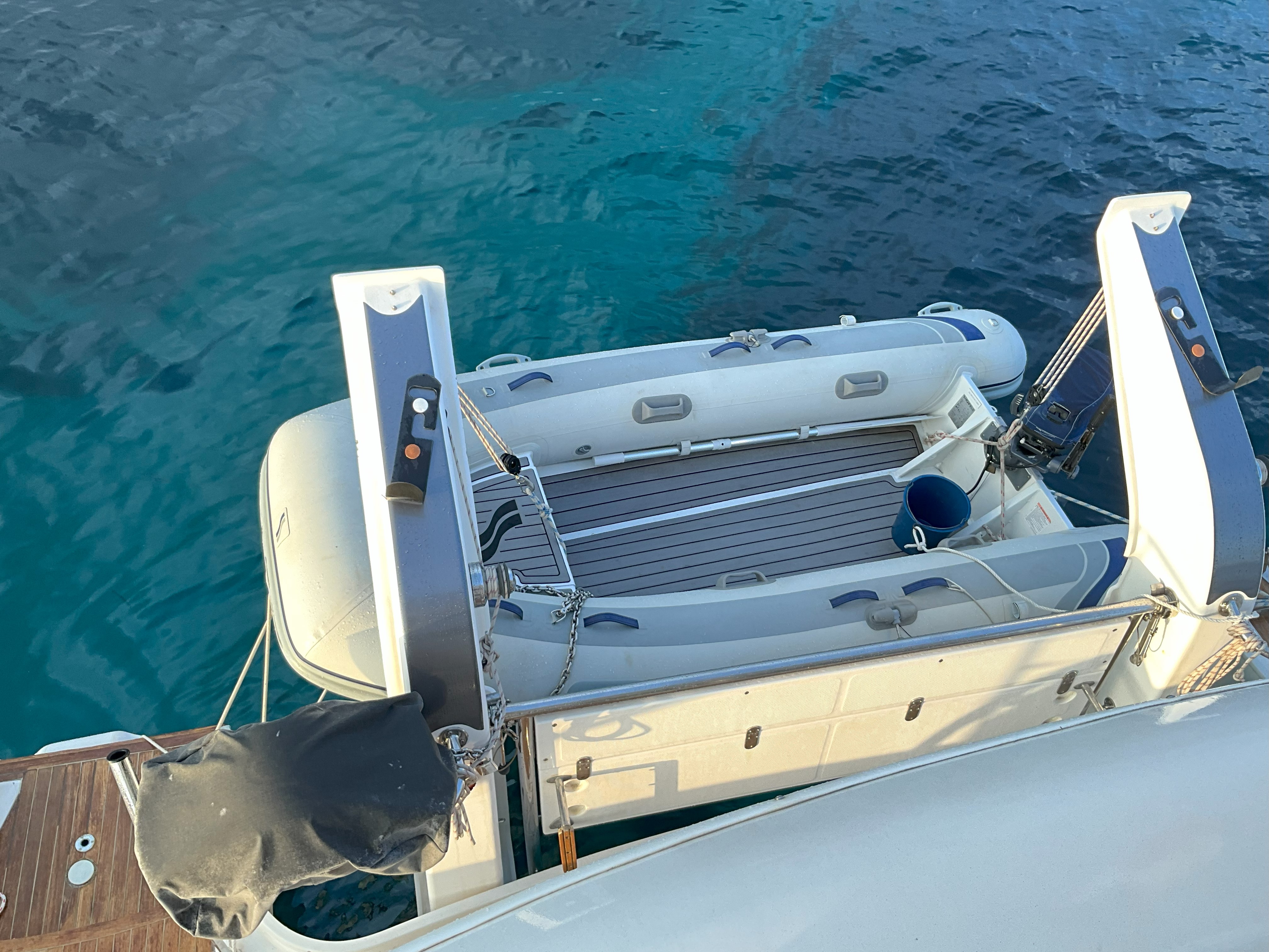 Equipments : reversible air conditioning, watermaker 60L/H, mase genset 9 KW(2018), 4 solar panels (1000W) on top of the flybridge, washer/dryer Brandt 8kg, freezer with 5 drawers, Highfield 3.4m dinghy with hard floor and yamaha 15hp enduro outboard engine.